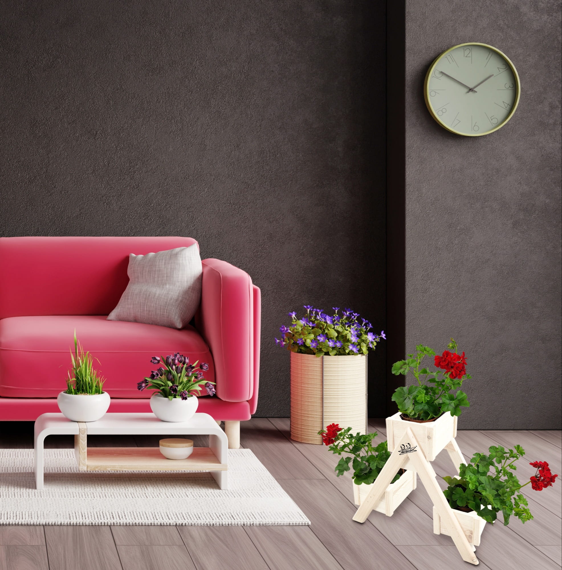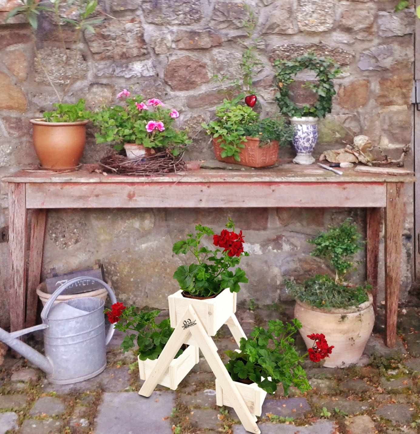 Kwietnik jest idealną bazą do kompozycji kwiatowych nasadzeń. W trzech skrzynkach pokrytych od wewnątrz folią można z powodzeniem stworzyć miniogródek ustawiając stojak wewnątrz lub na zewnątrz na tarasach, balkonach, w altankach.