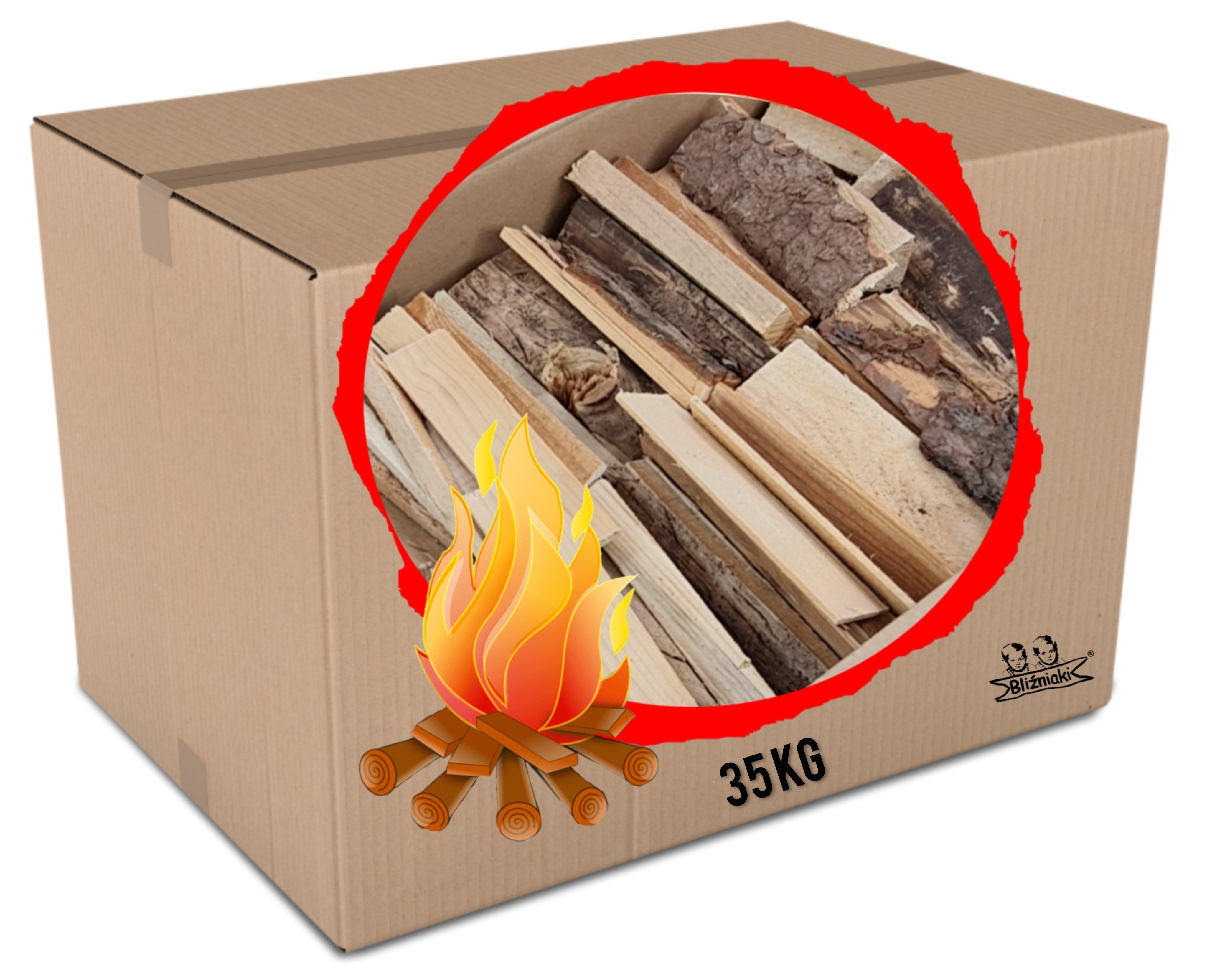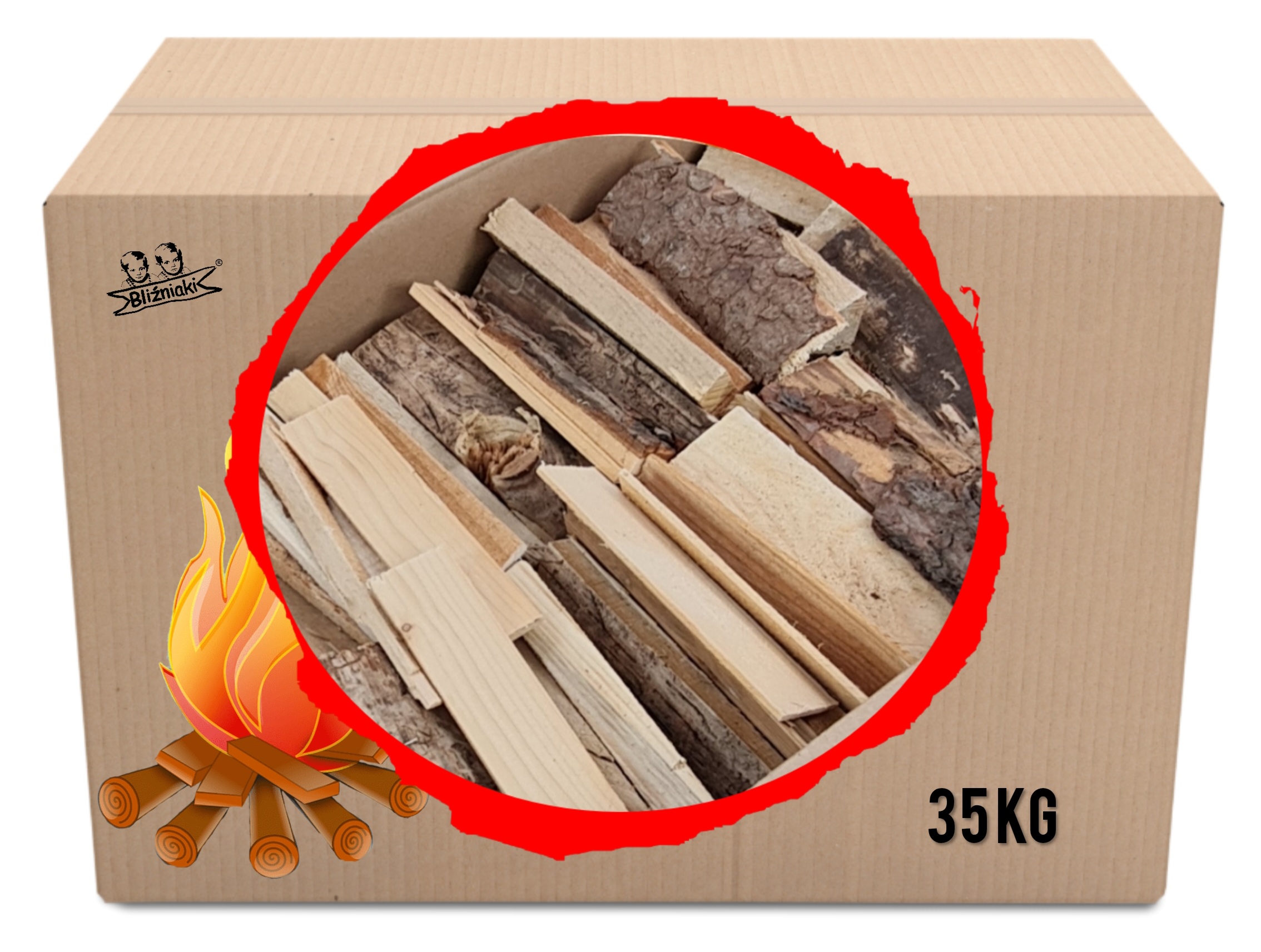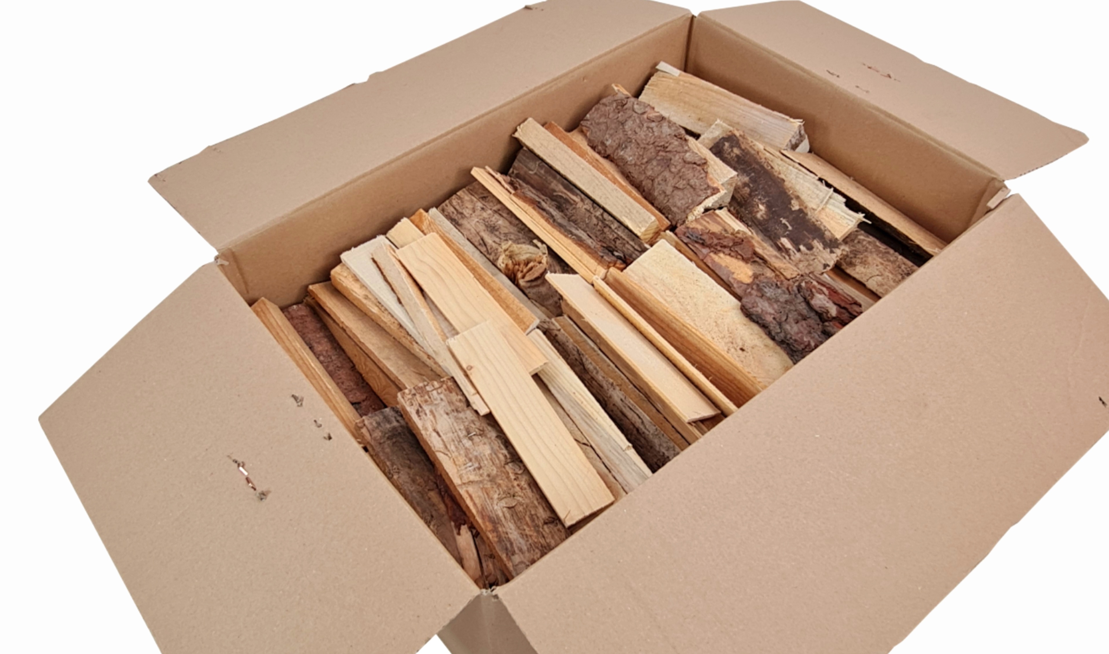 Karton wypełniony kawałkami drewna sosnowego ROZPAŁKA PODPAŁKA