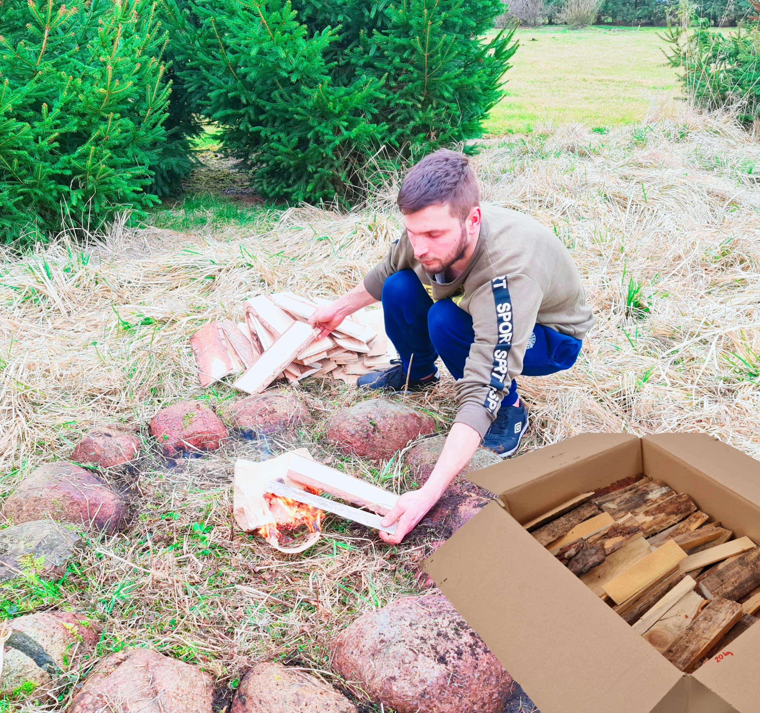Przedmiotem aukcji jest rozpałka drewna w kartonowym pudle