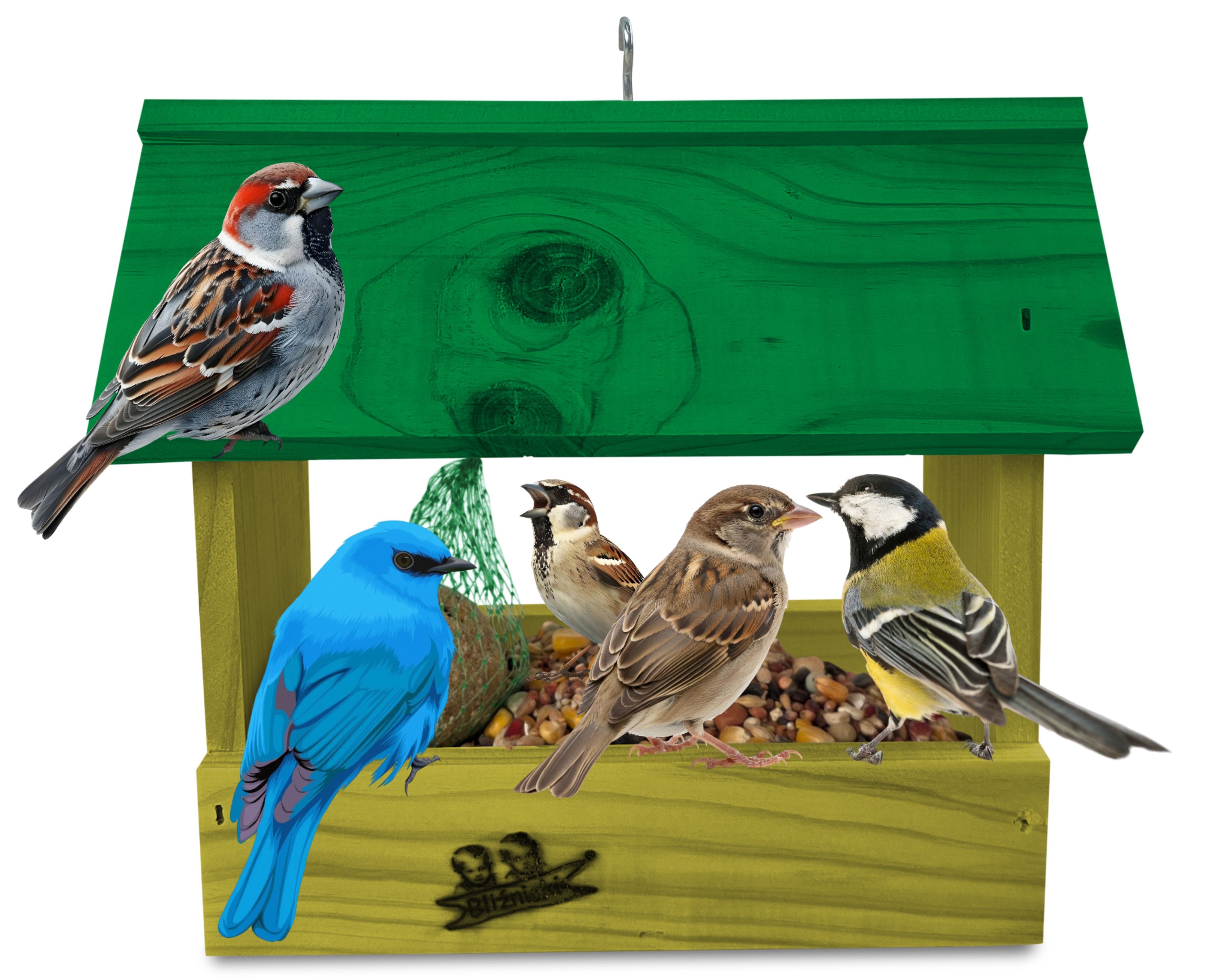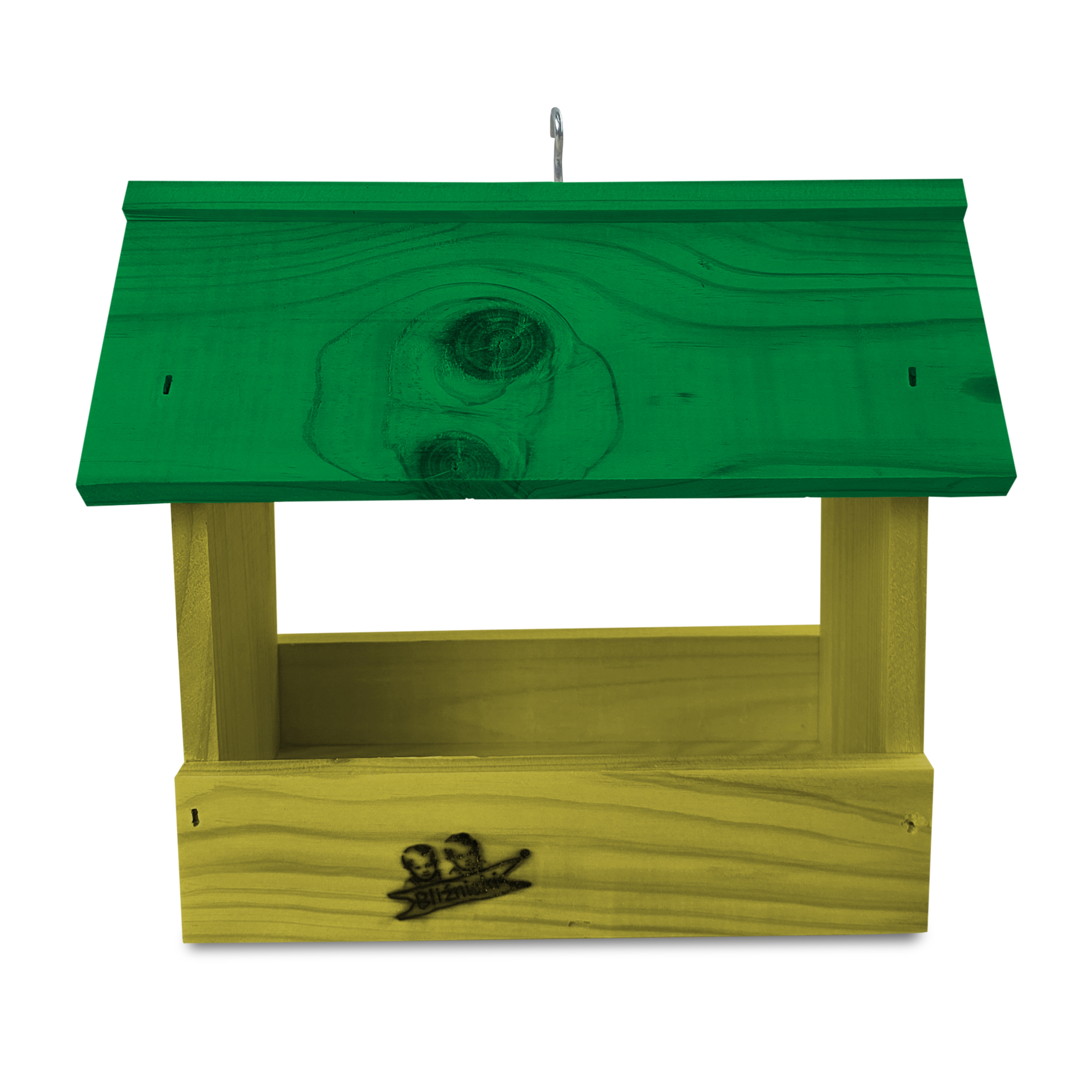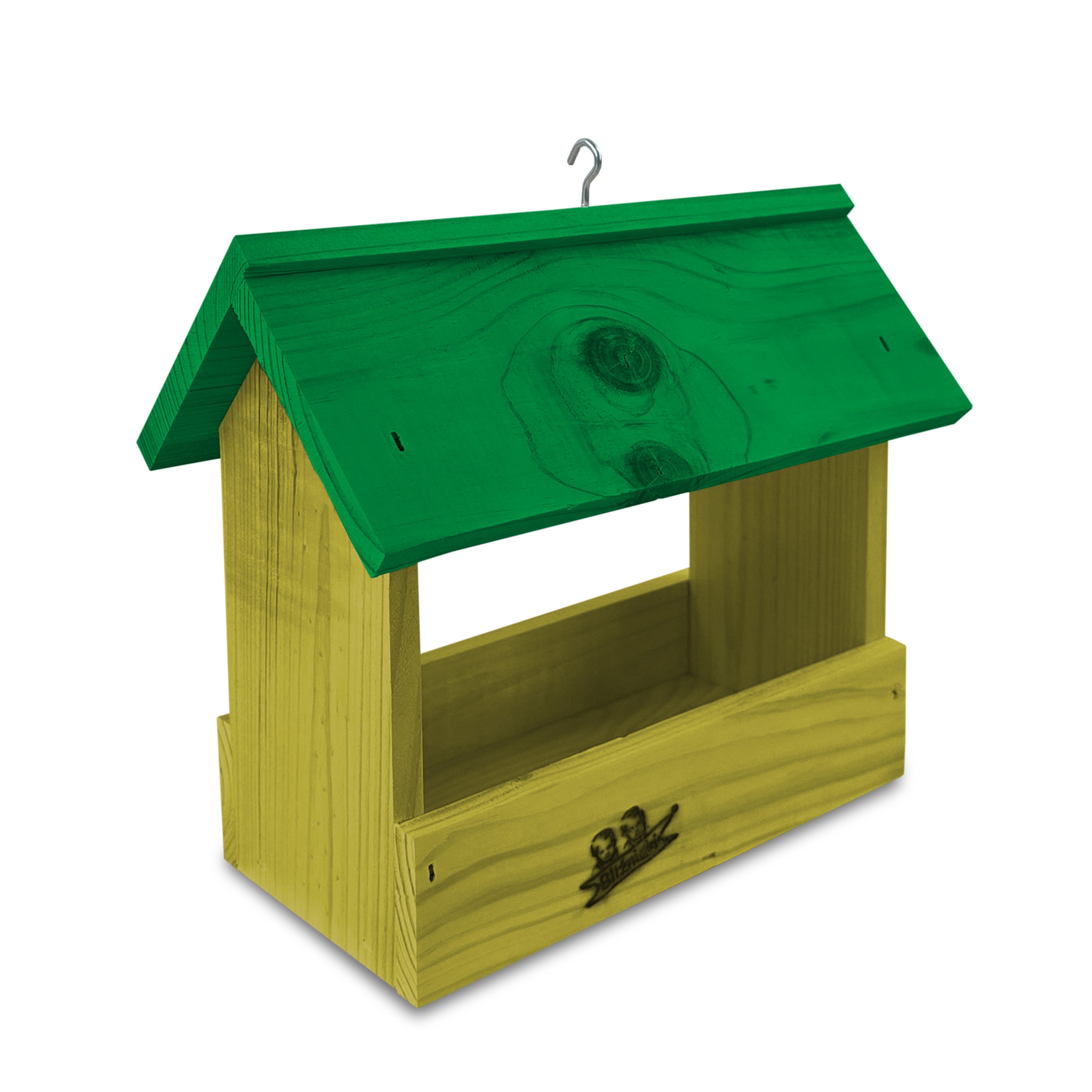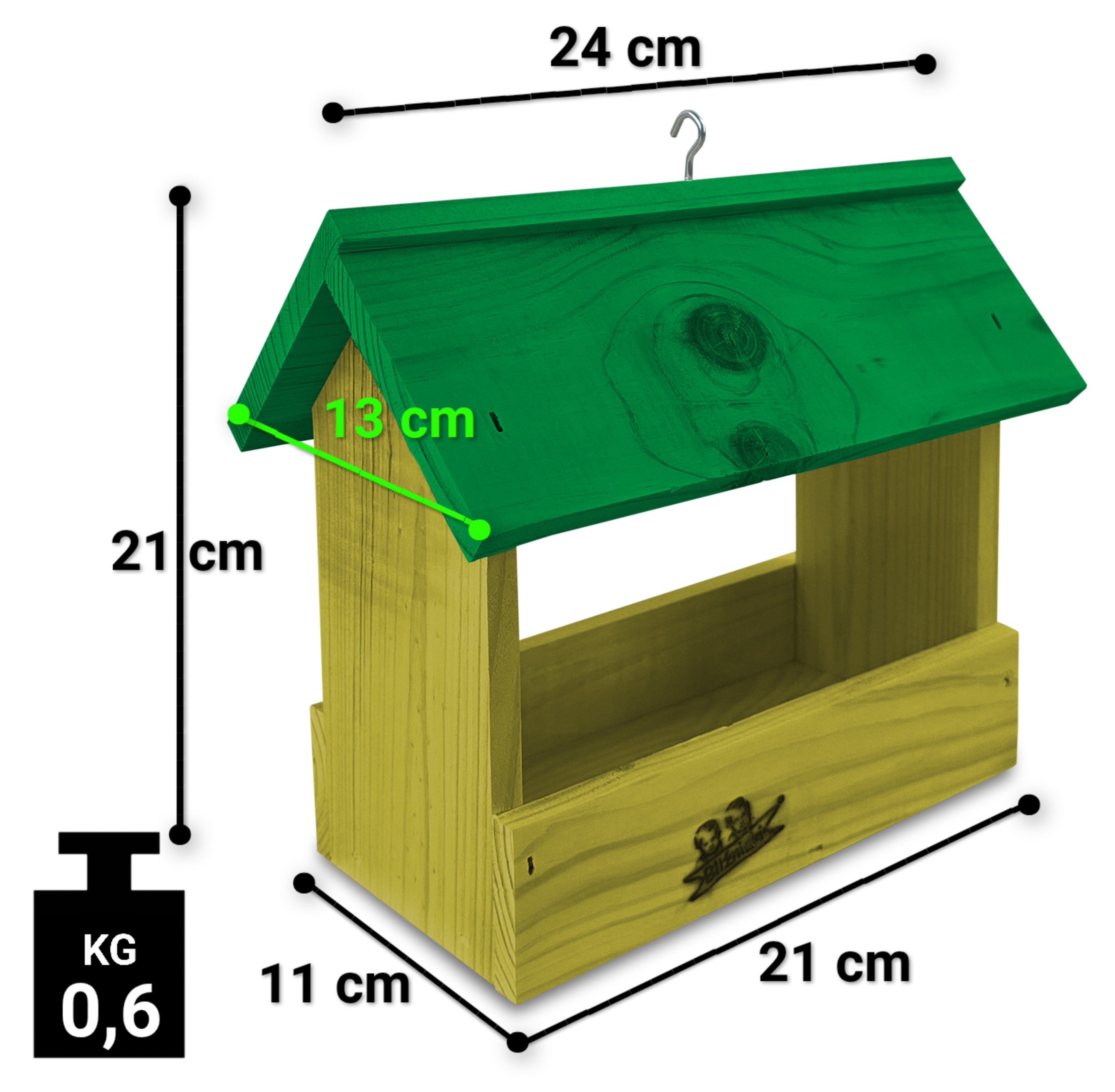 - Karmnik wykonany jest w całości z drewna iglastego, KOLOR OLIWKOWY Z ZIELONYM DACHEM