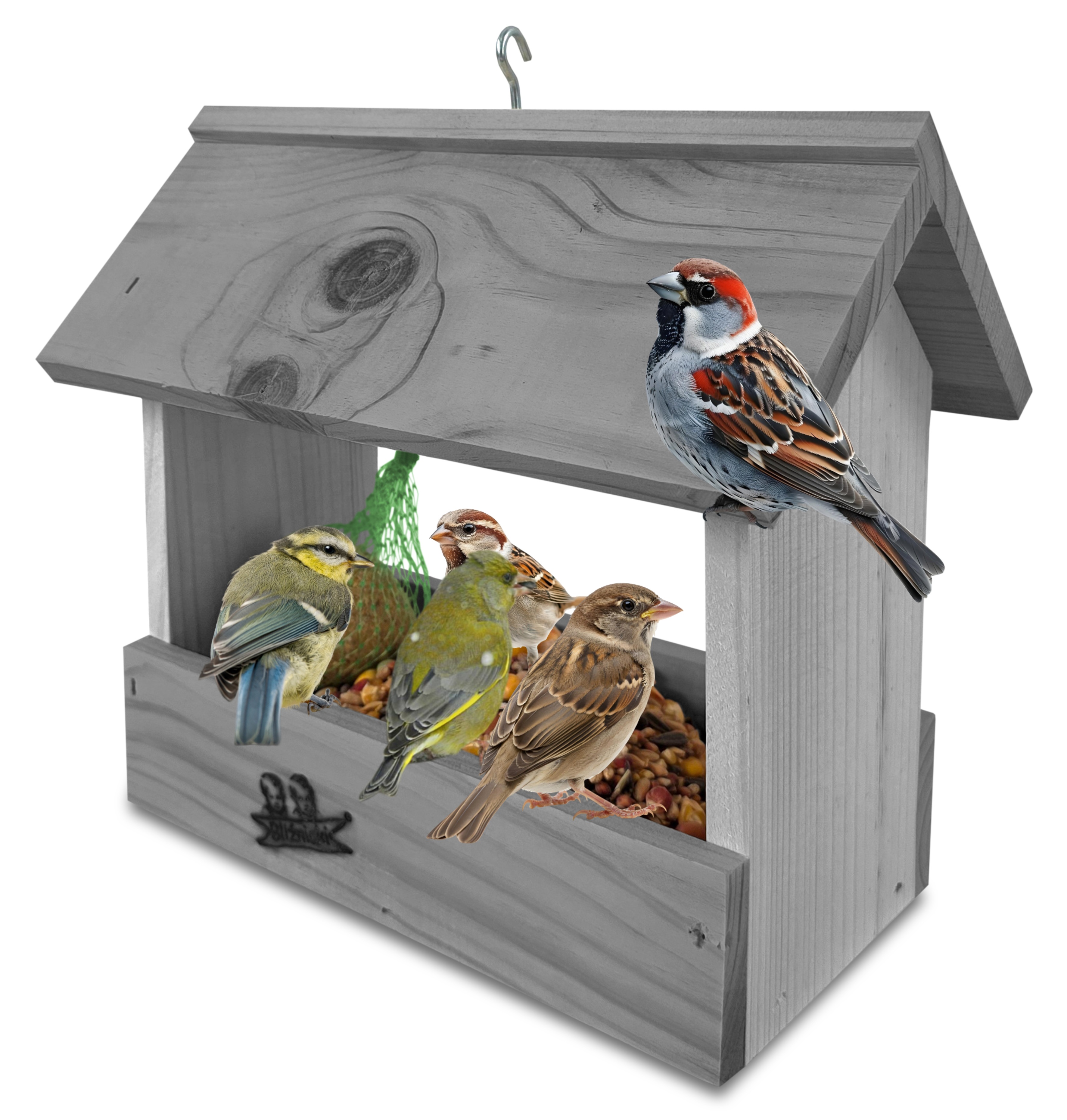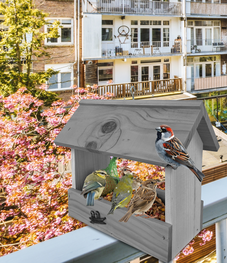 Przedmiotem sprzedaży jest ozdobny drewniany karmnik dla ptaków budka domek na balkon K204a SNP SN w dwóch odcieniach szarości - jasnej i ciemnej
