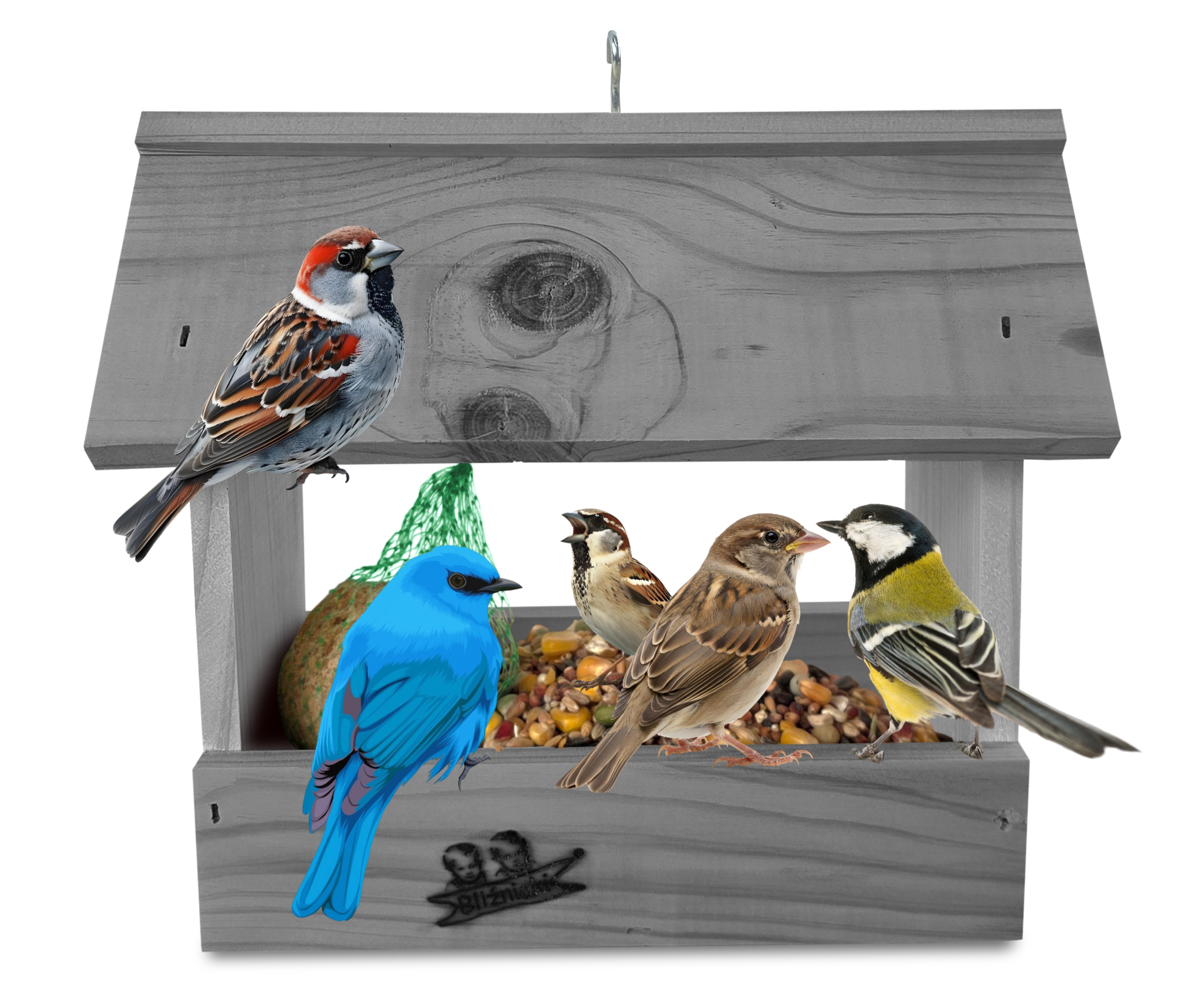 - Karmnik wykonany jest w całości z drewna iglastego, KOLOR JASNY SZARY / CIEMNY SZARY