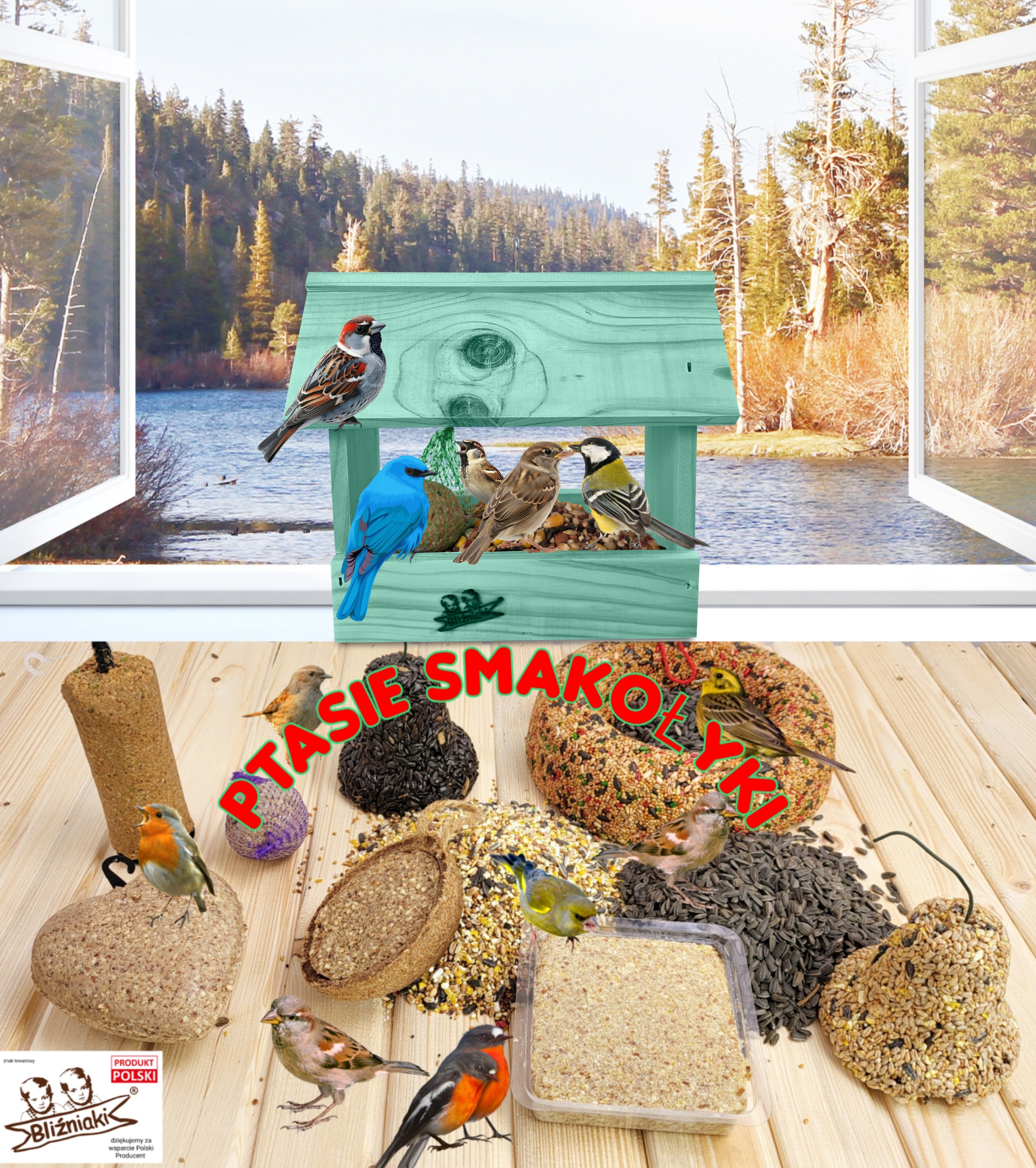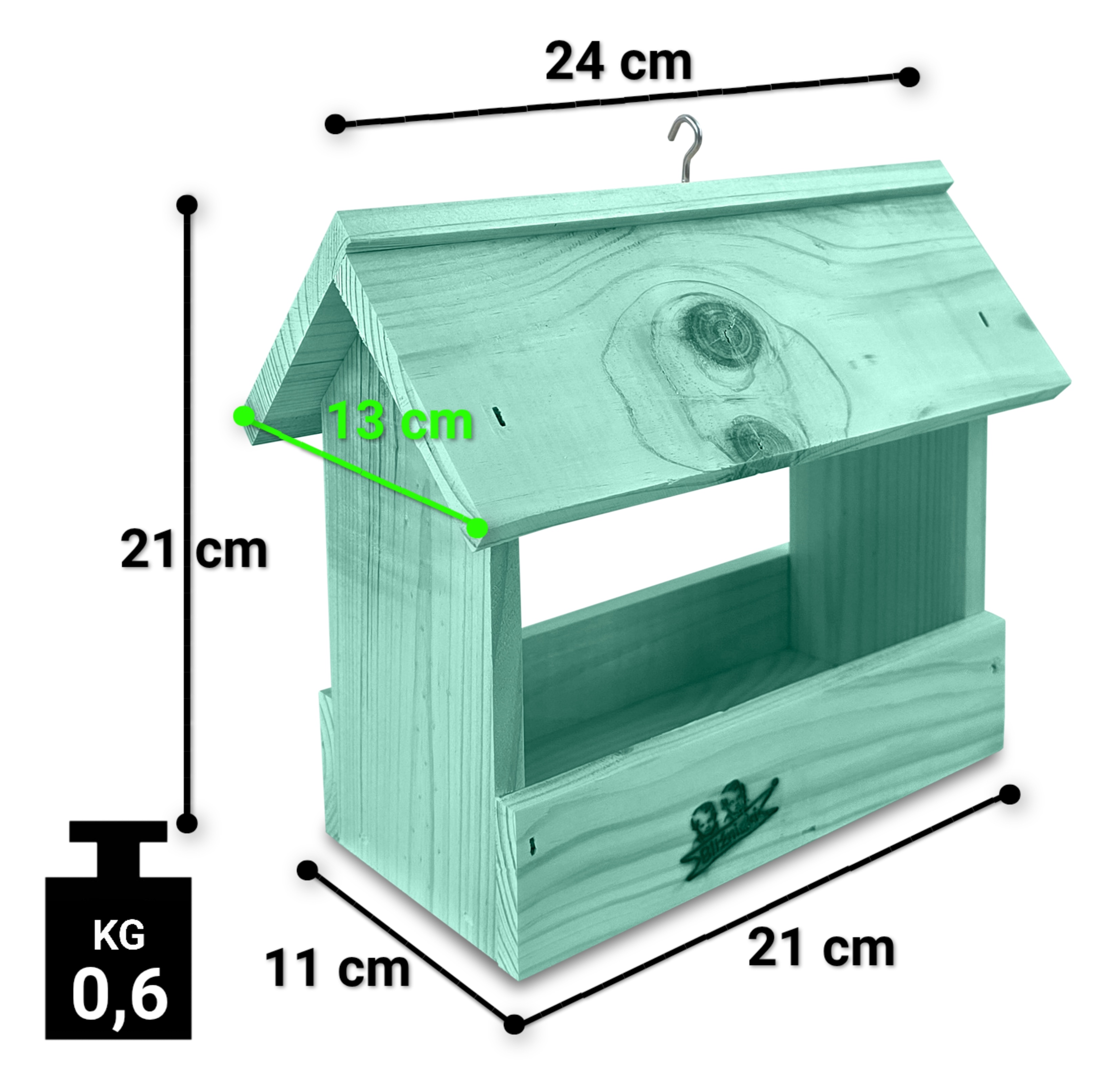 - Karmnik wykonany jest w całości z drewna iglastego, KOLOR JASNA MORSKA ZIELEŃ
