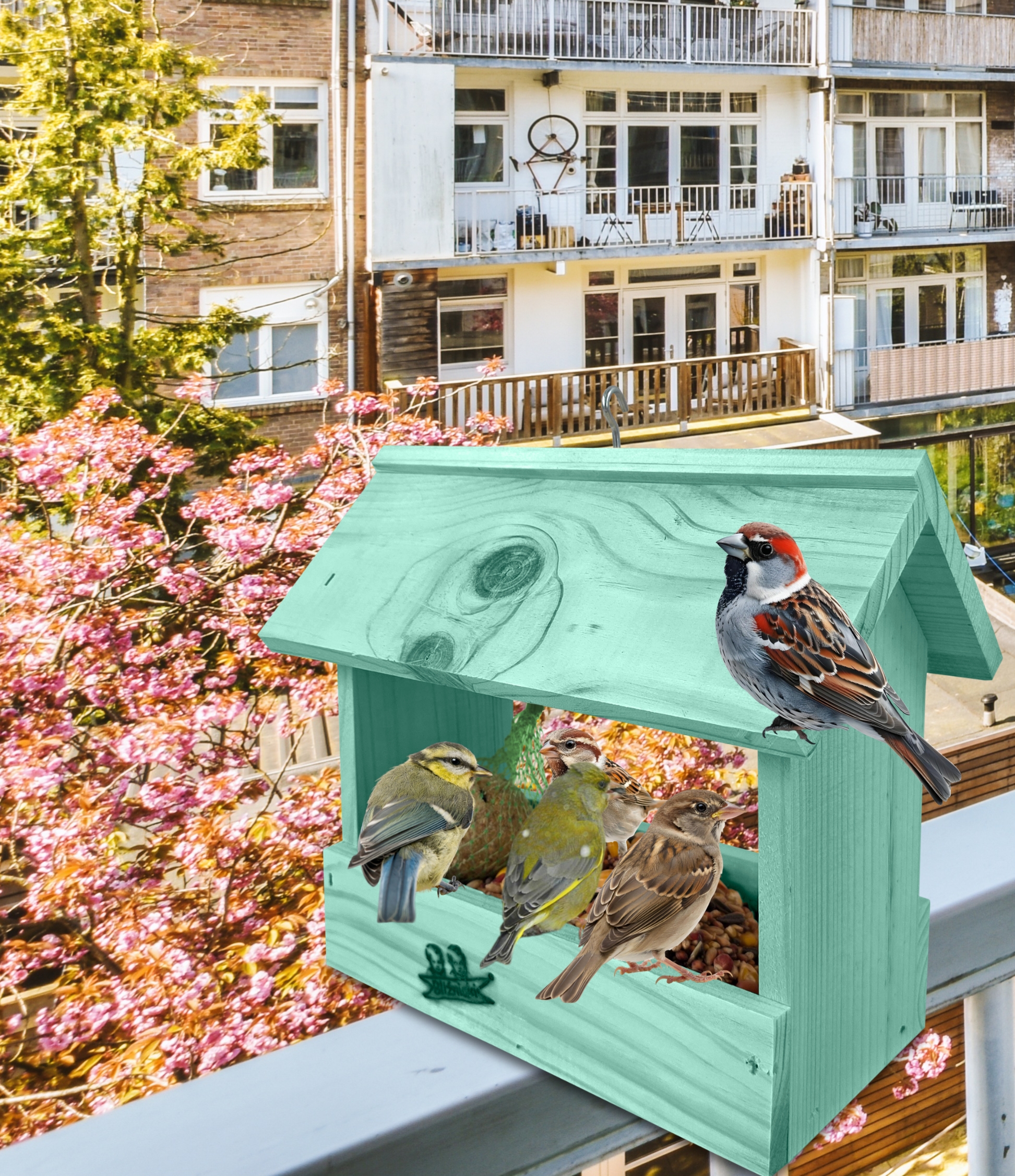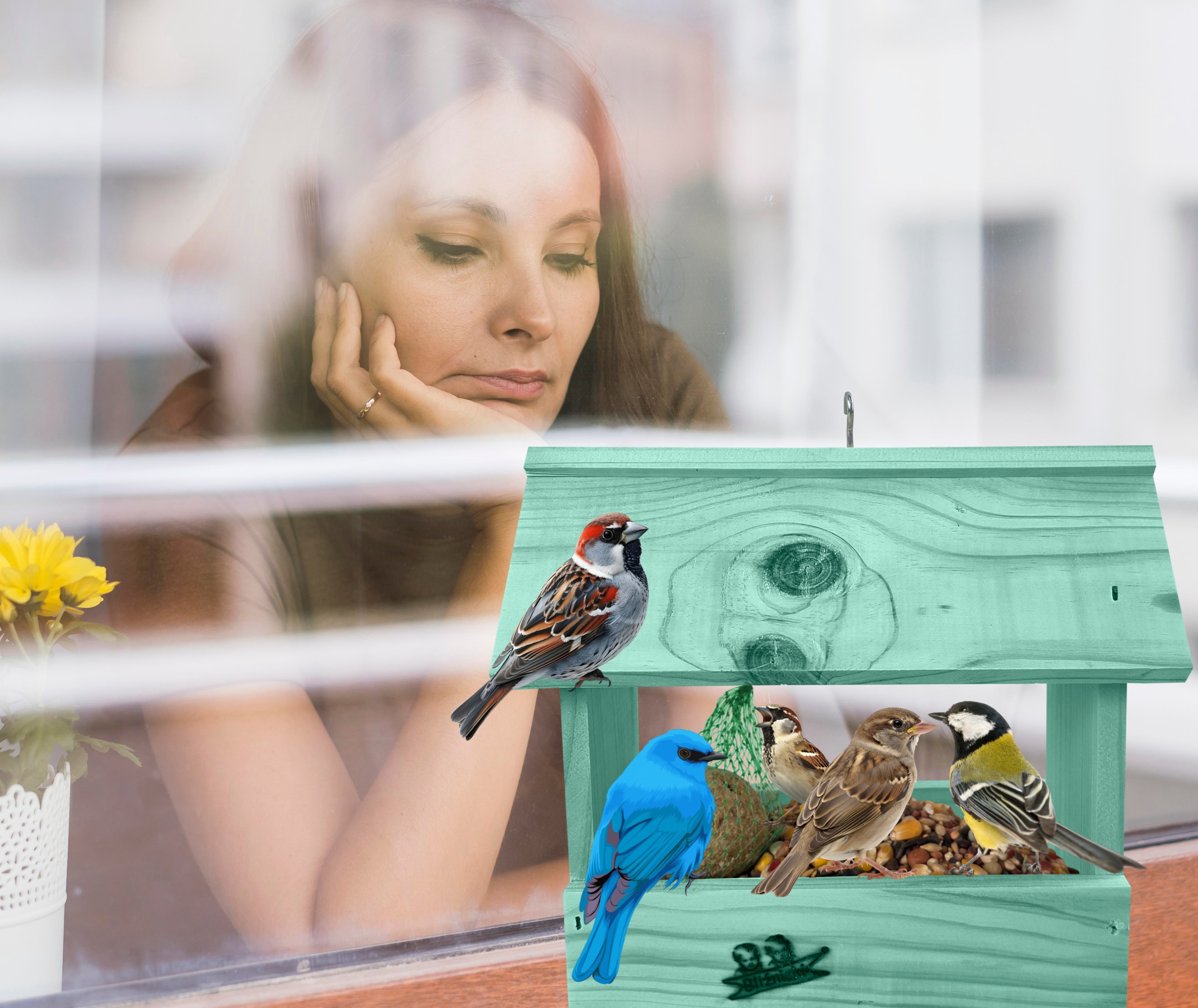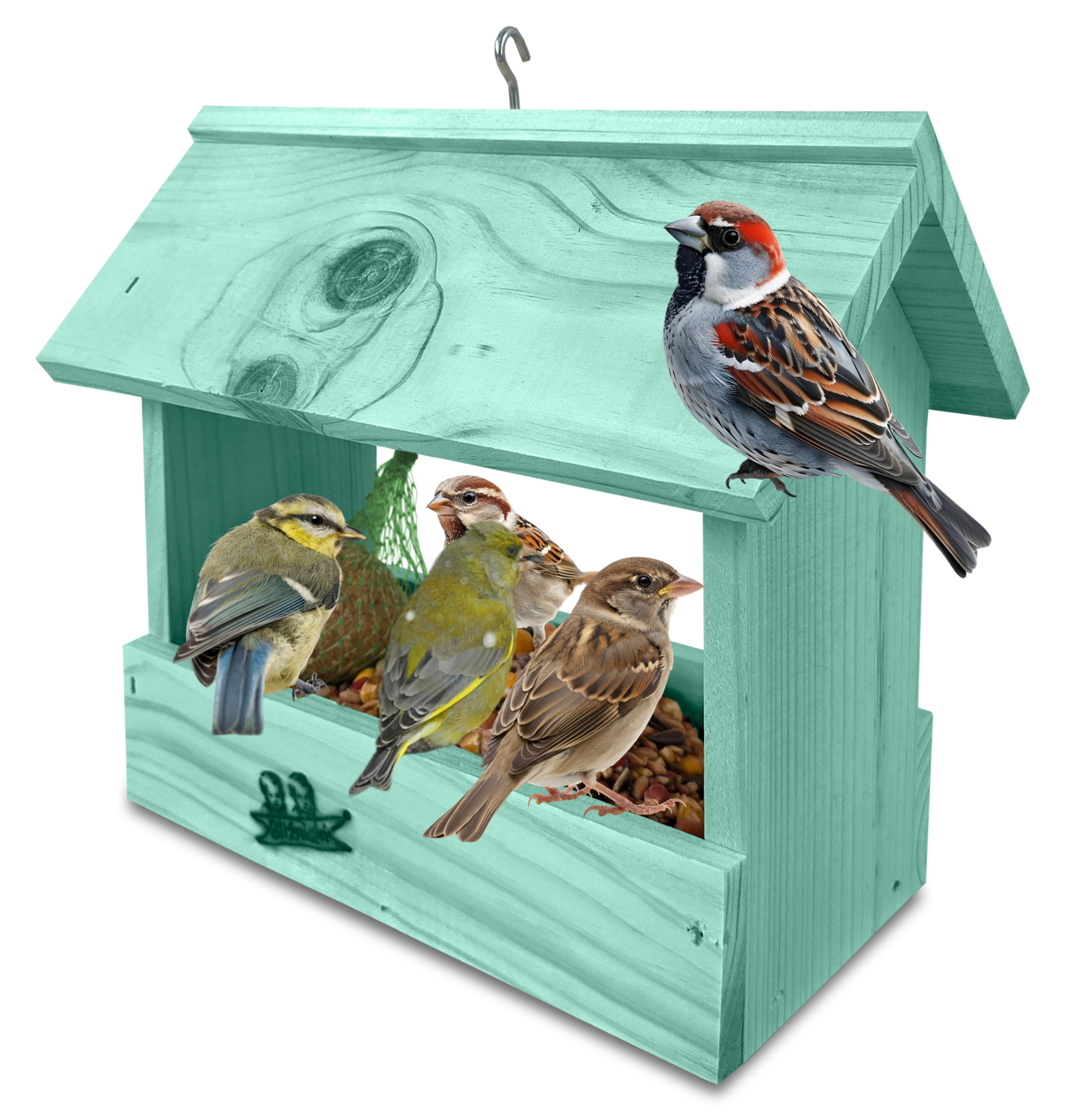 Przedmiotem sprzedaży jest ozdobny drewniany karmnik dla ptaków budka domek na balkon K204 MRP kolor jasna morska zieleń