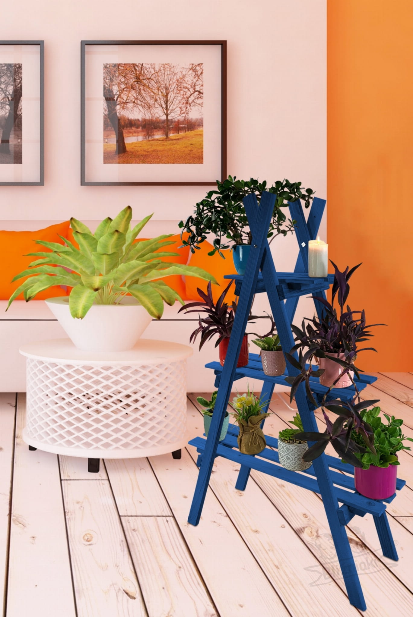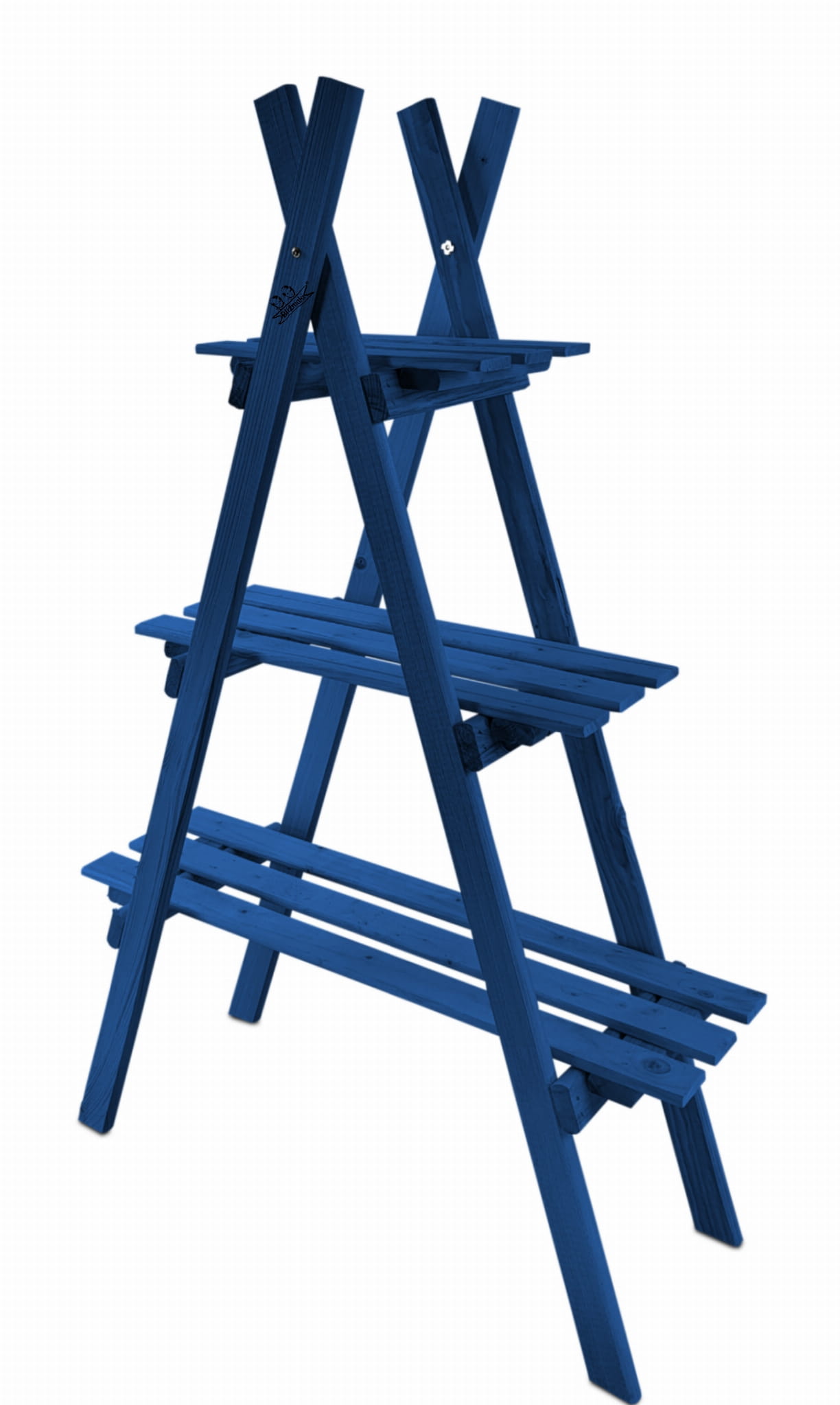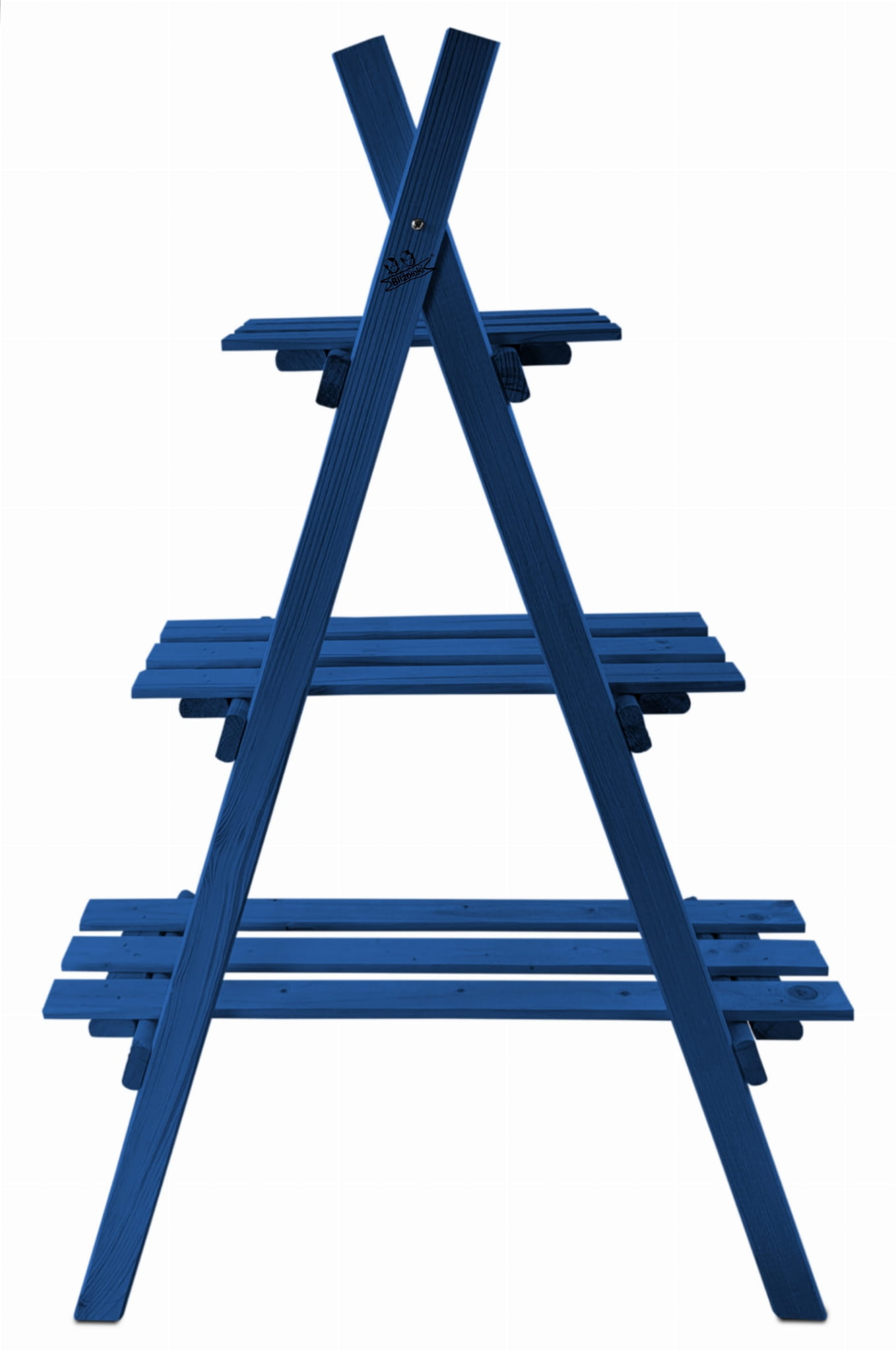 Regał został wykonany z solidnego drewna sosnowego, w kolorze NIEBIESKIM. To bardzo praktyczny i stylowy element wyposażenia nowoczesnego domu pozwalający zadbać o należny porządek w pomieszczeniach jak i na zewnątrz. Nasz stojak może również pełnić rolę ozdobnego kwietnika do ustawienia na nim doniczek z Twoimi ulubionymi kwiatami na tarasie lub balkonie.