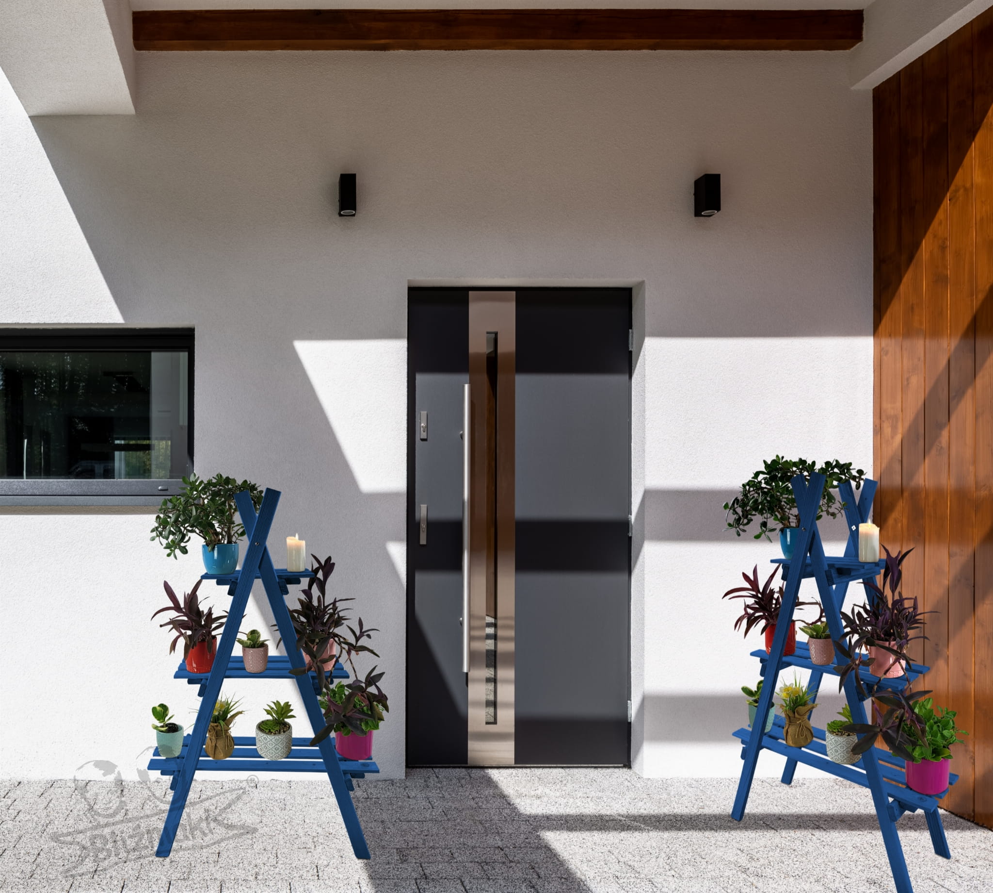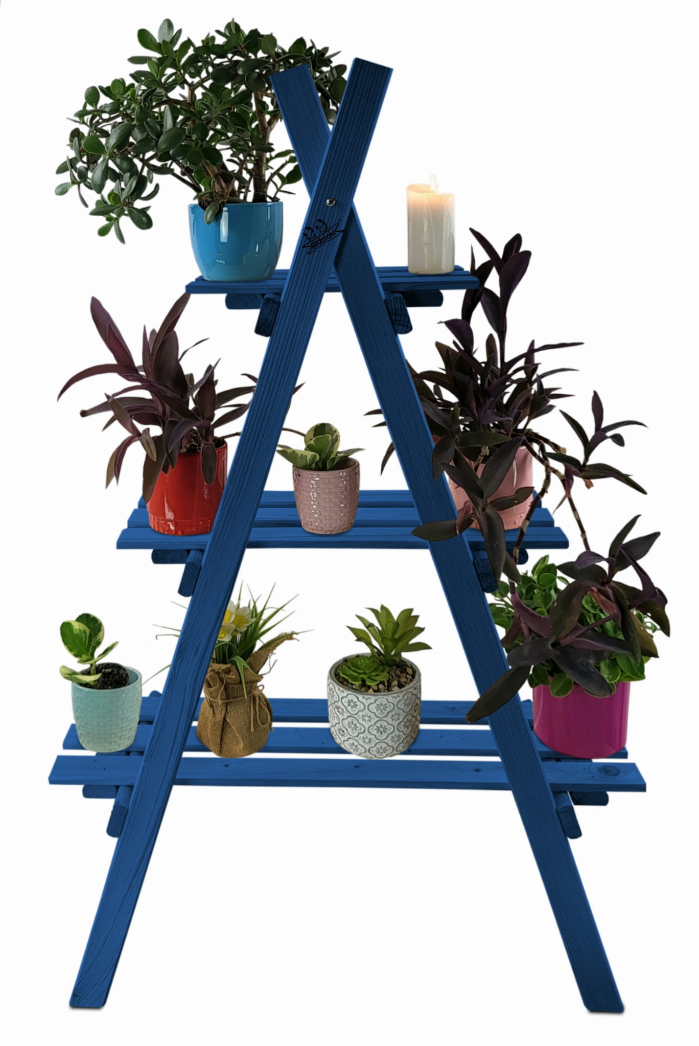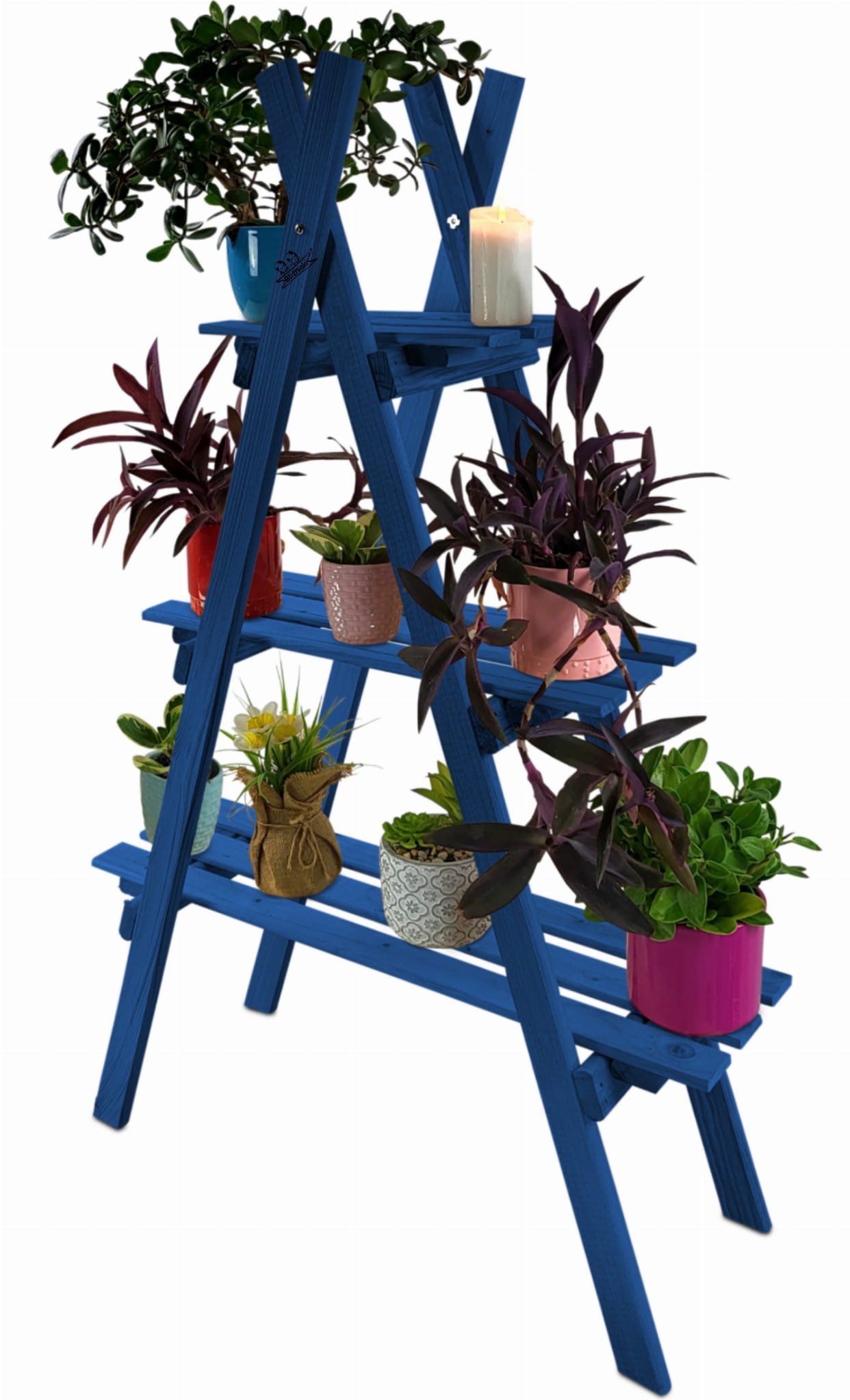 Regał został wykonany z solidnego drewna sosnowego, w kolorze NIEBIESKIM. To bardzo praktyczny i stylowy element wyposażenia nowoczesnego domu pozwalający zadbać o należny porządek w pomieszczeniach jak i na zewnątrz. Nasz stojak może również pełnić rolę ozdobnego kwietnika do ustawienia na nim doniczek z Twoimi ulubionymi kwiatami na tarasie lub balkonie.