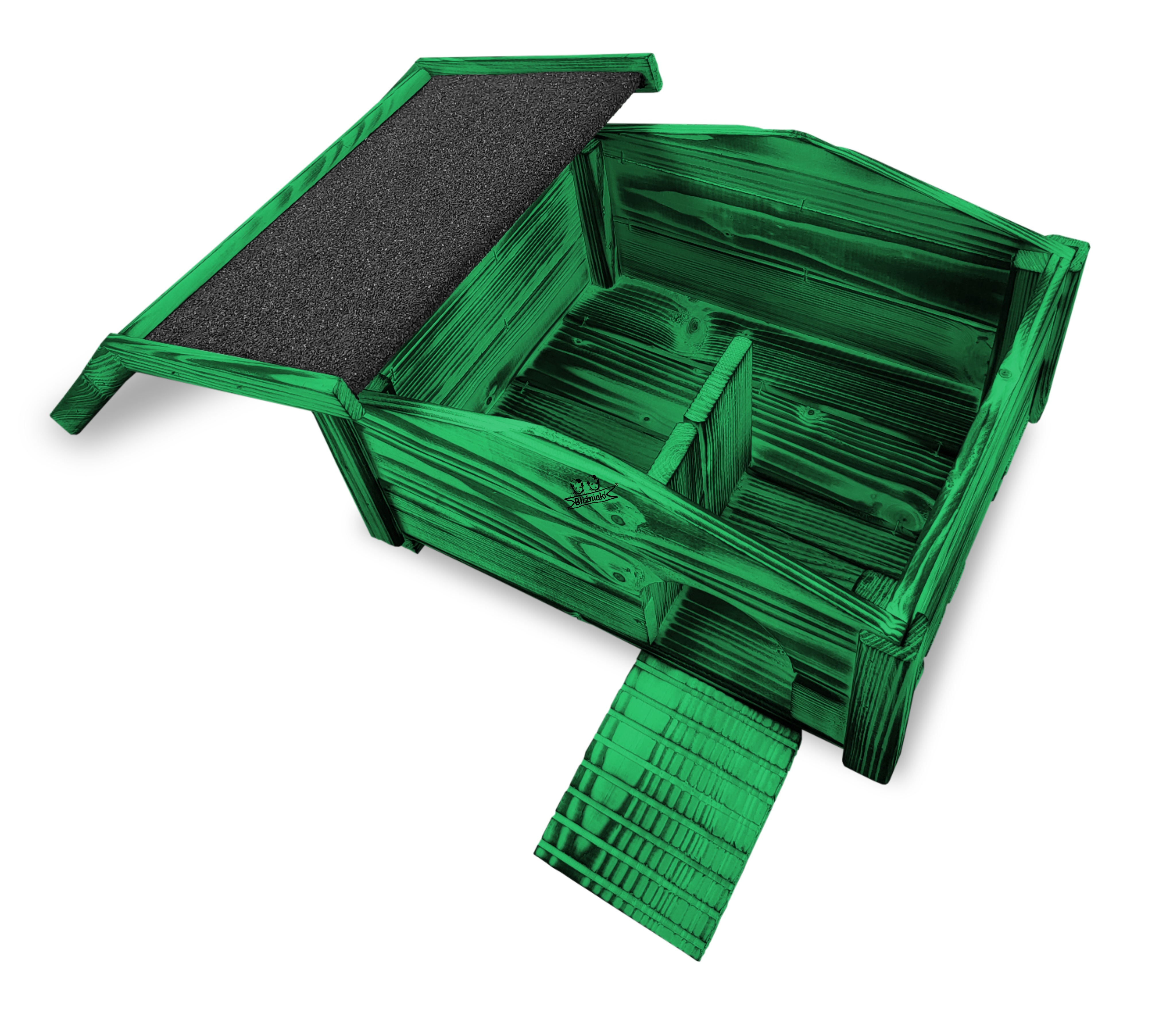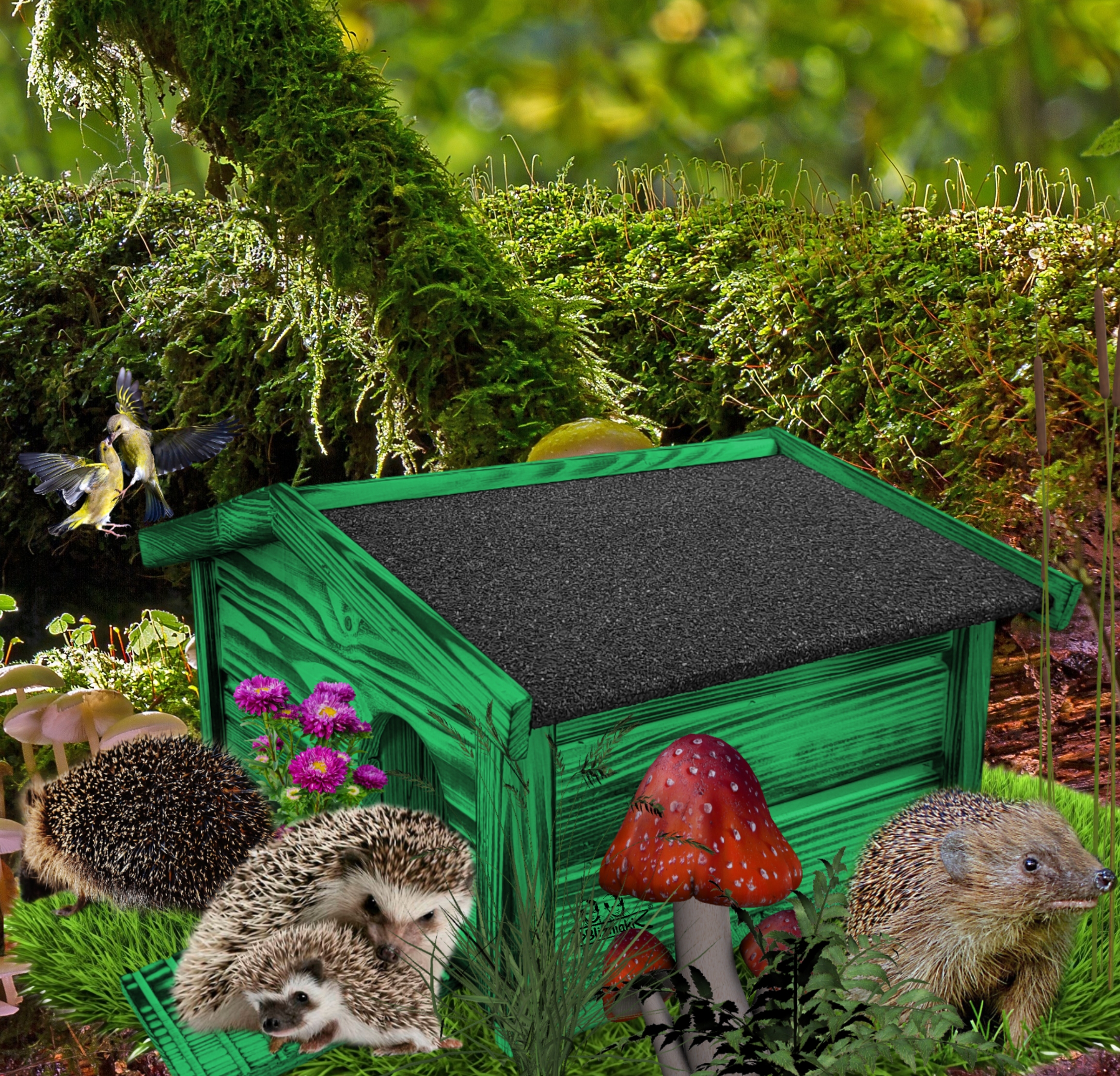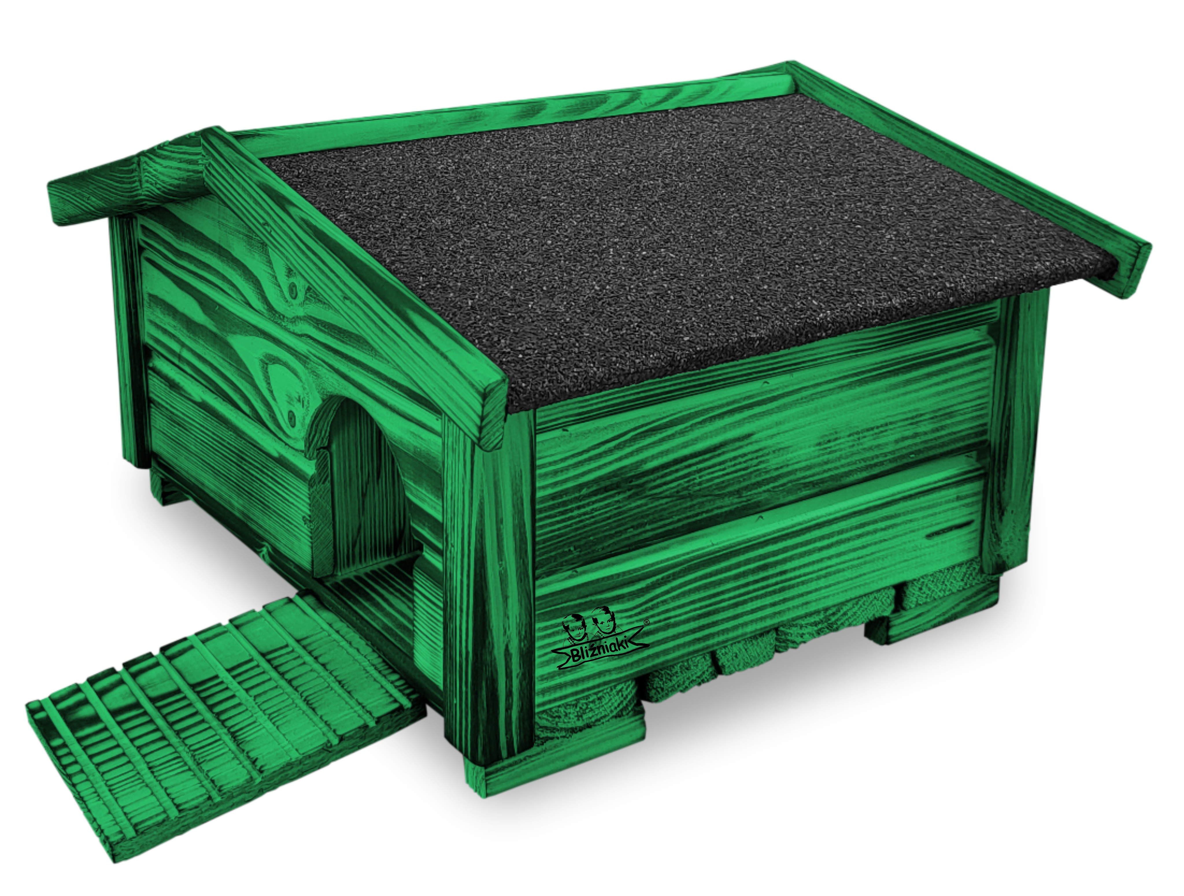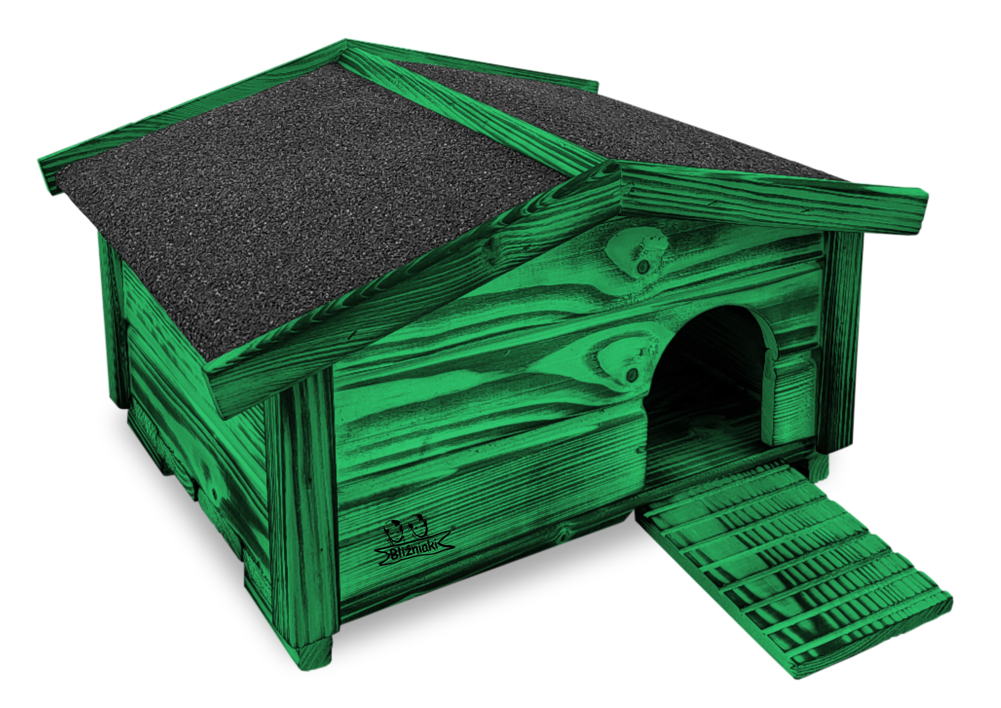 Na tej aukcji oferujemy domek dla jeża HDJ10 OPAL K WYKONANY Z DREWNA OPALANEGO OGNIEM, BARWIONY NA KOLOR ZIELONY.