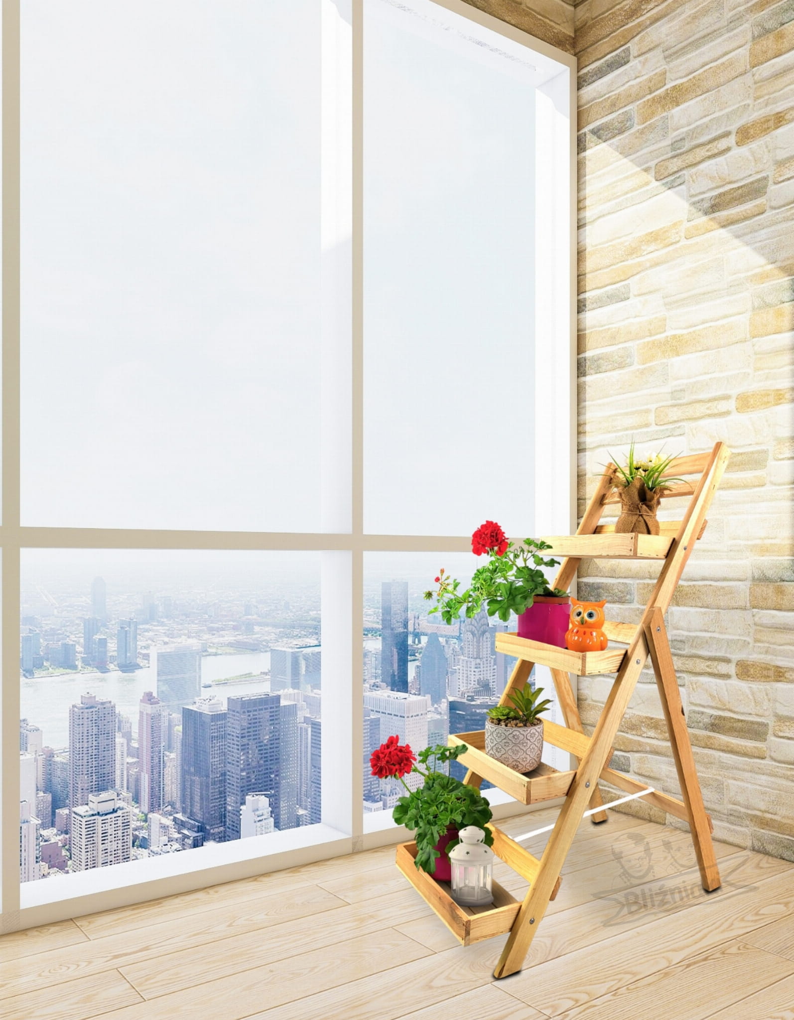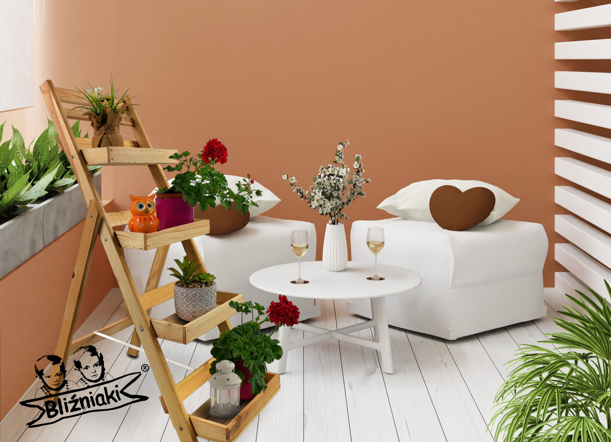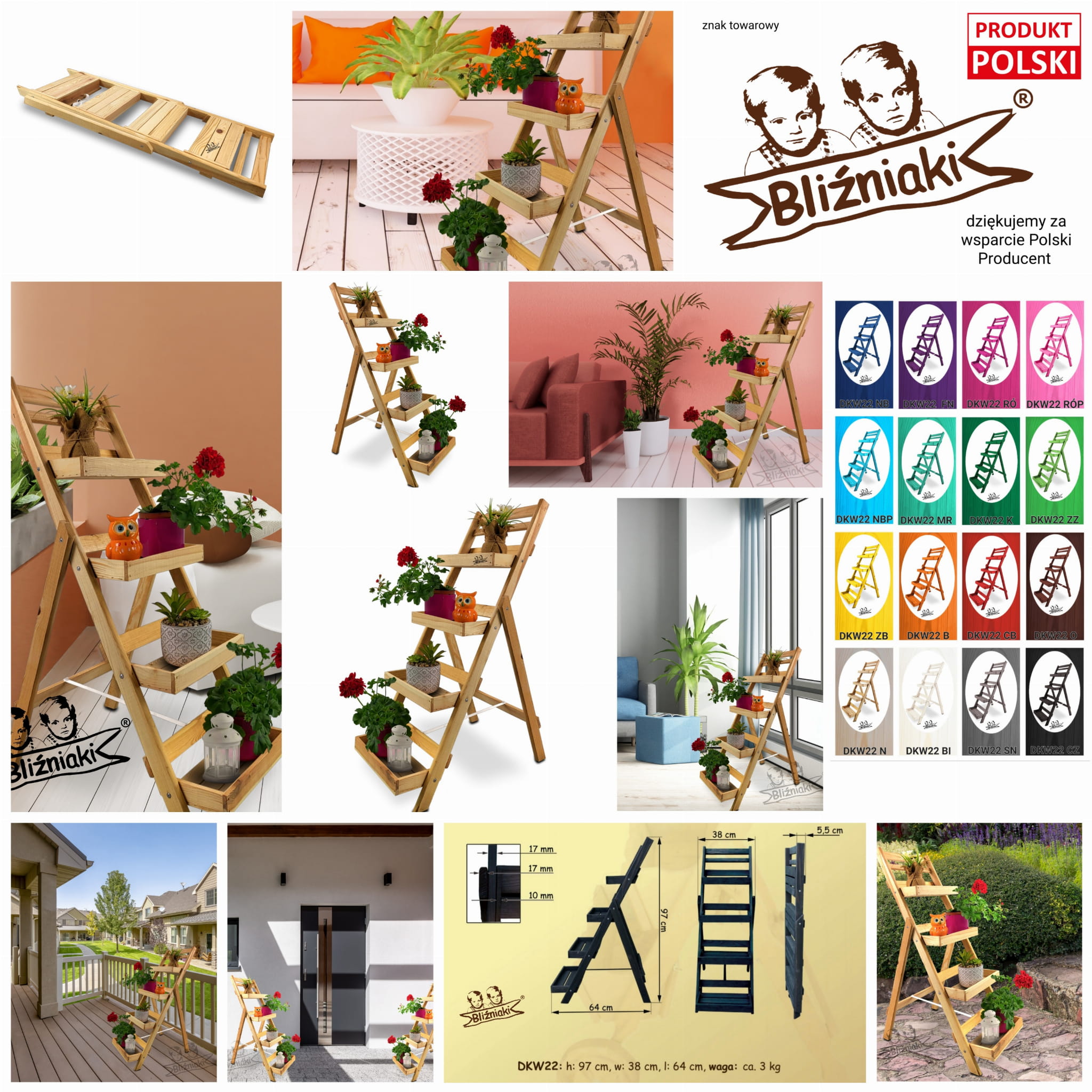 - Drabinka znajduje szerokie zastosowanie m.in: na tarasach, balkonach, we wnętrzach domów, czy jako wyposażenie sklepików oraz kwiaciarni