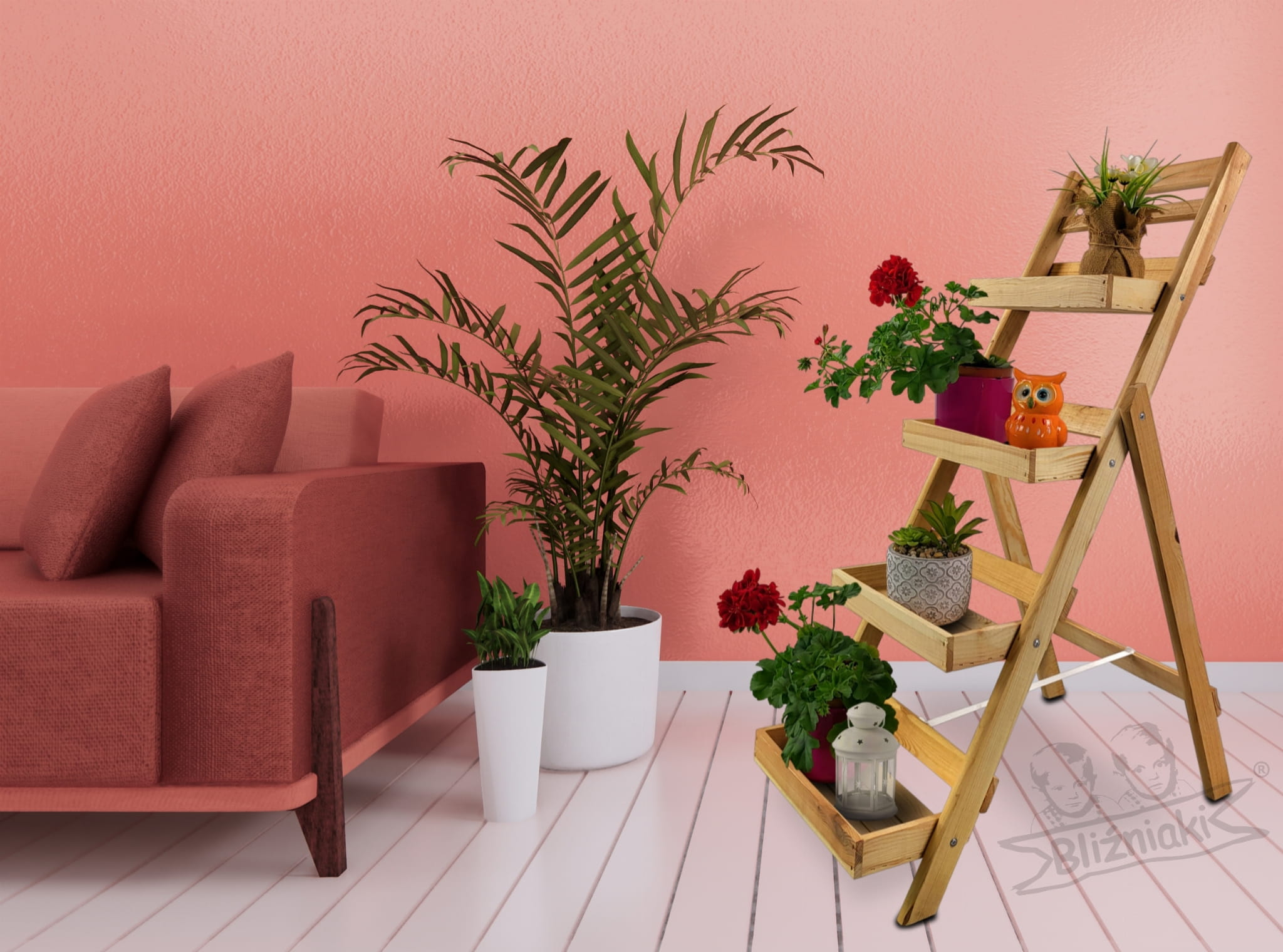 STOJAK KWETNIK REGAŁ DREWNIANY SOSNOWY NATURALNY CZTEROPOZIOMOWY SKŁADANY DO DOMU I OGRODU DKW22 N