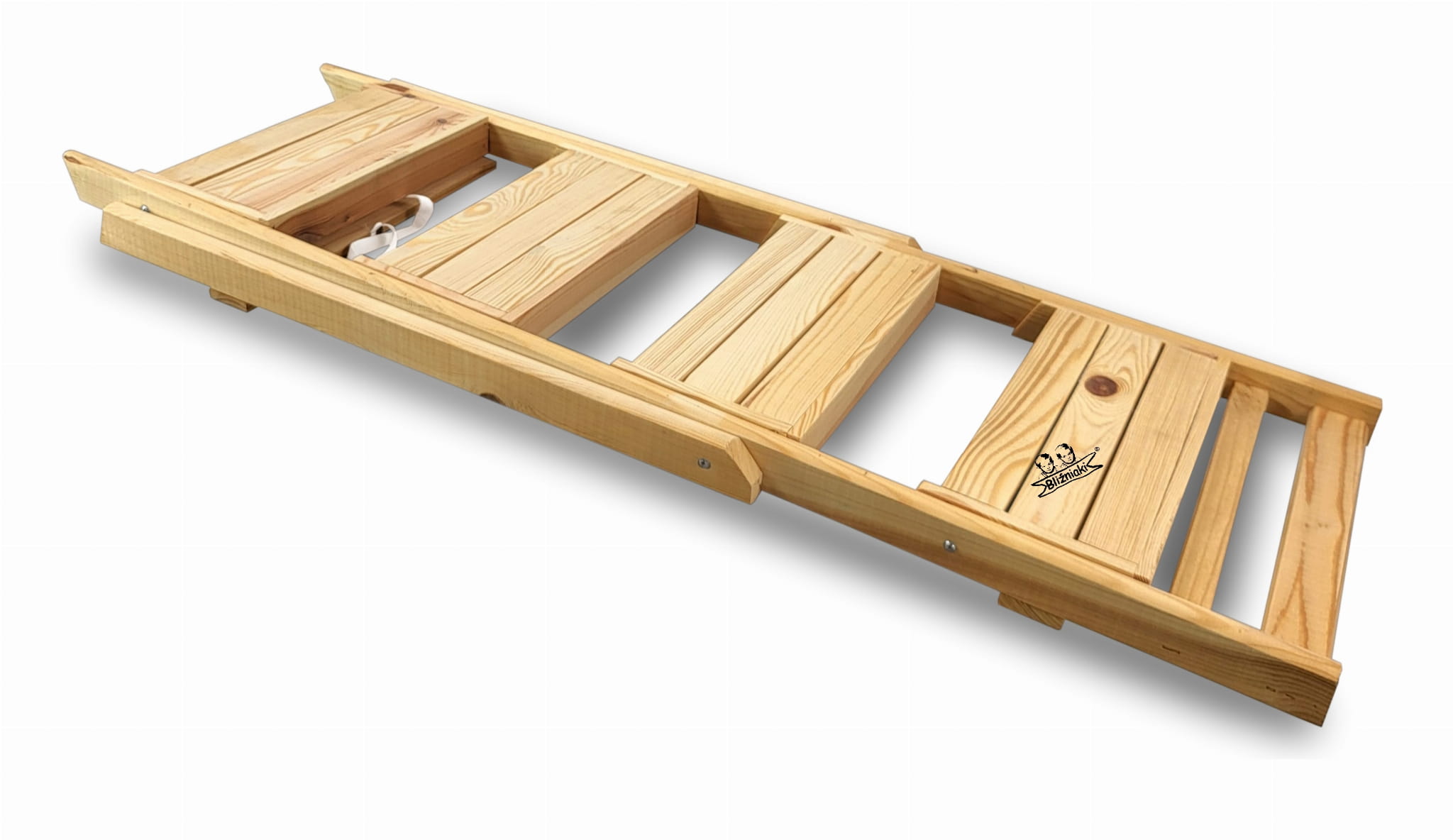 Poddane impregnacji drewno sprawia, że drabinka DKW22 jest odporna na szkodliwe działanie wody oraz wilgoci, promieni UV, a także grzybów i pleśni, może być więc przechowywana przez cały rok na zewnątrz, na tarasie, w ogrodzie, czy na balkonach. .