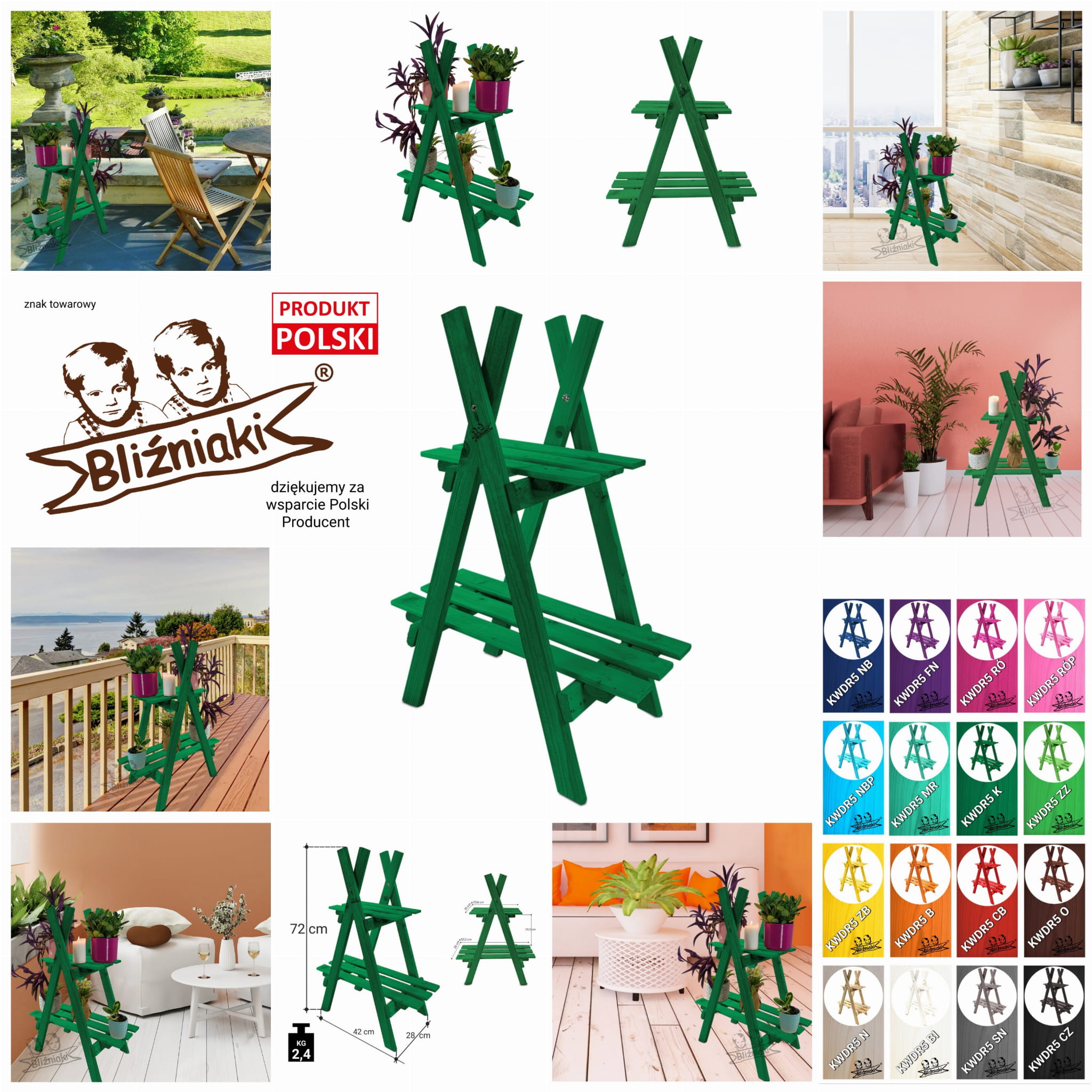STOJAK REGAŁ DREWNIANY NA KWIATY W DONICZKACH IMPREGNOWANY ZIELONY KWDR5 K