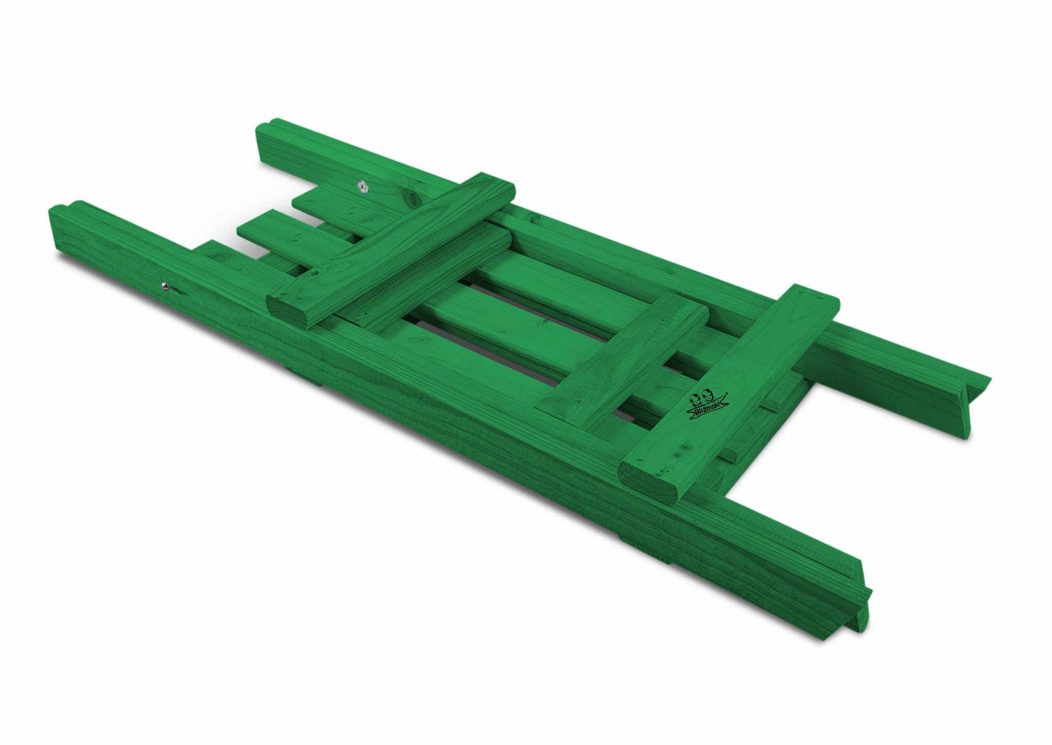 Wykonany z drewna litego, dzięki temu jest odporny na warunki atmosferyczne i zachowuje estetyczny wygląd na dłużej. Produkt w jednolitym kolorze ZIELONYM.