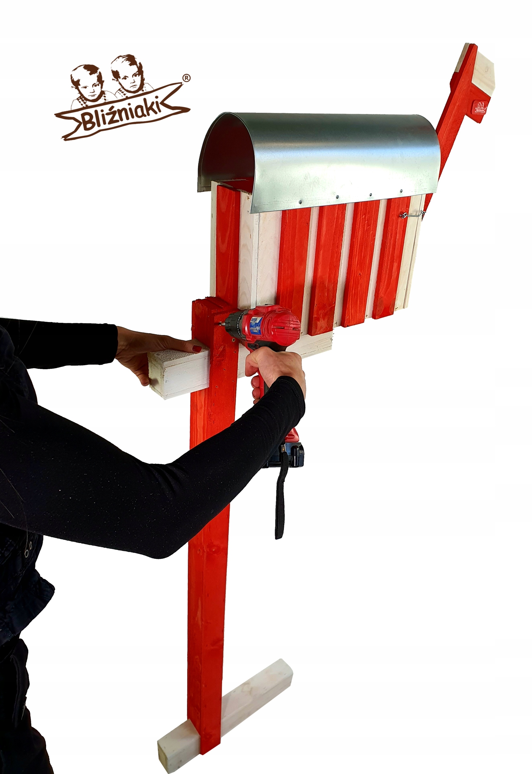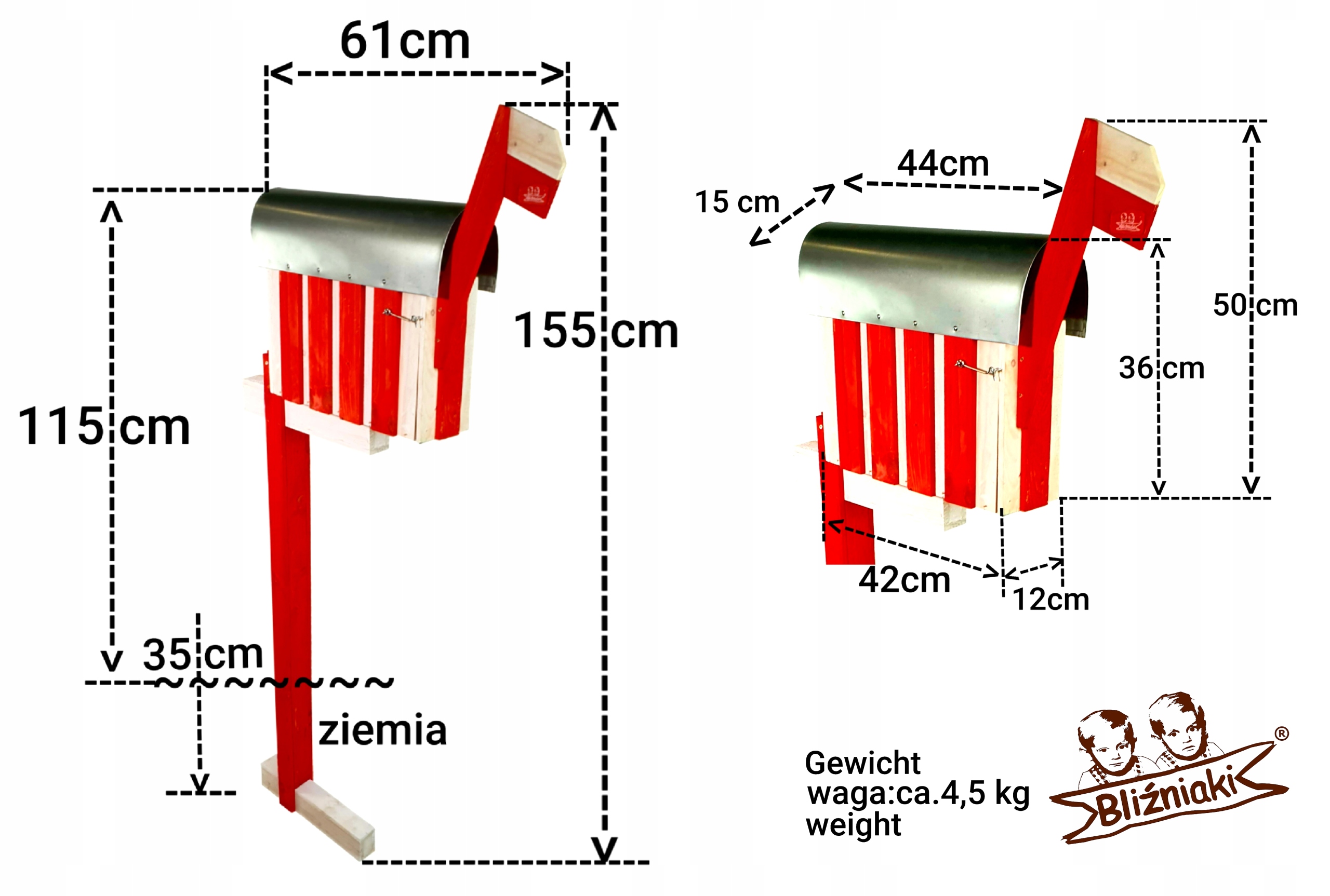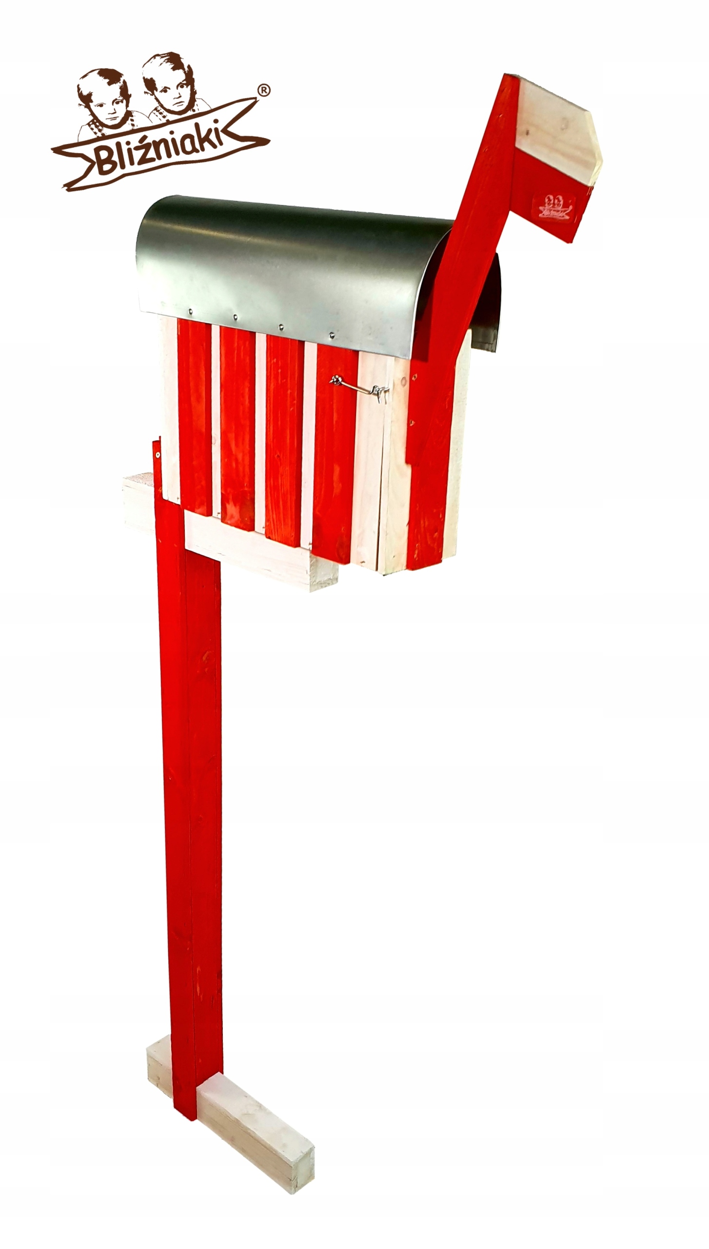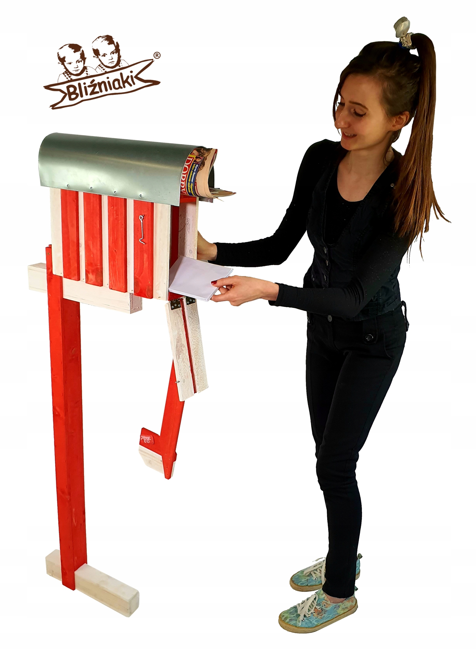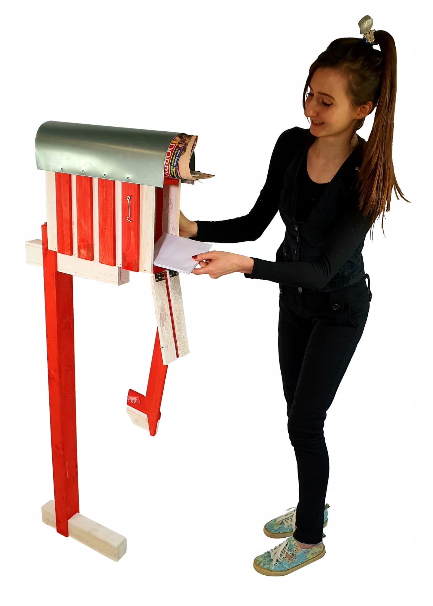 - Zestaw zawiera drewnianą skrzynkę pocztową z blaszanym gazetnikiem, solidny stojak o długości 115 cm, wskaźnik z flagą oraz śruby i akcesoria montażowe
