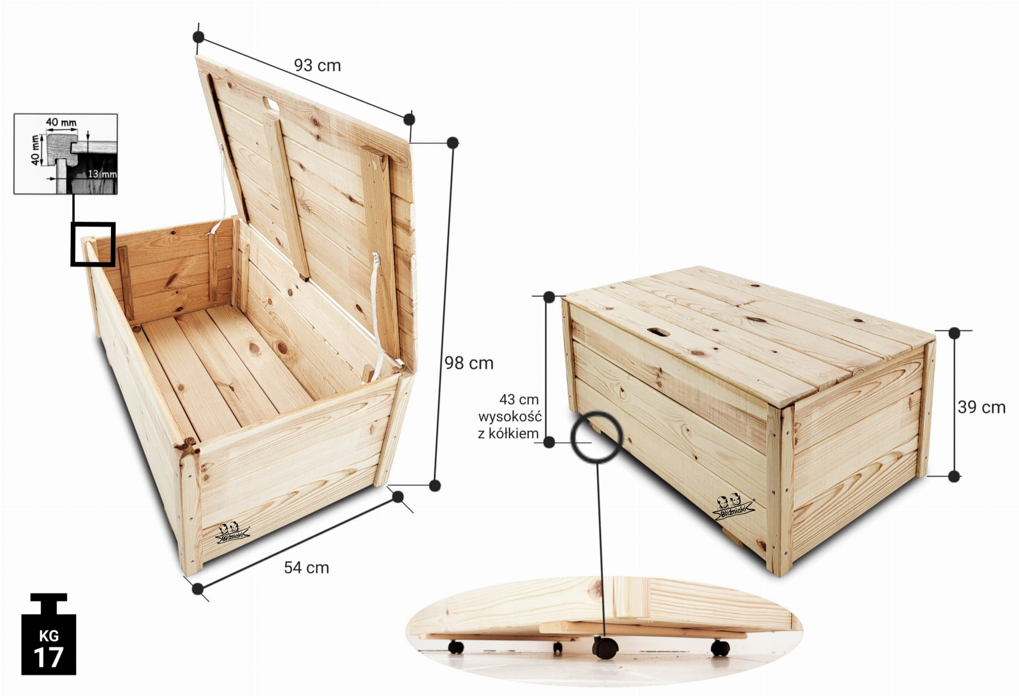 Pojemnik na zabawki idealnie komponuje się, z pozostałymi produktami drewnianymi z naszych ofert, które dają możliwość dowolnego komponowania zestawu tak, by dopasować go do wielkości pomieszczenia oraz potrzeb i wieku małego mieszkańca.