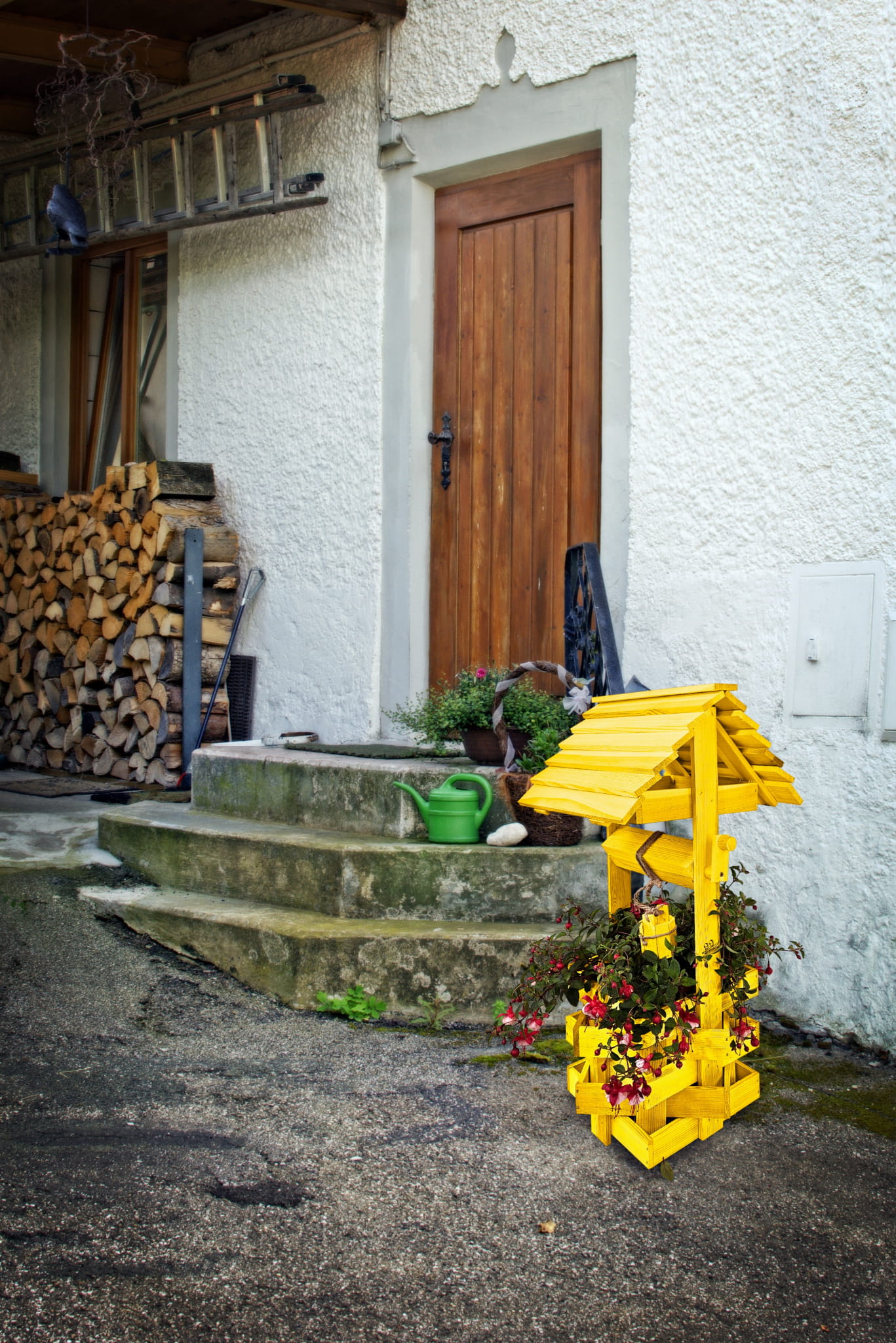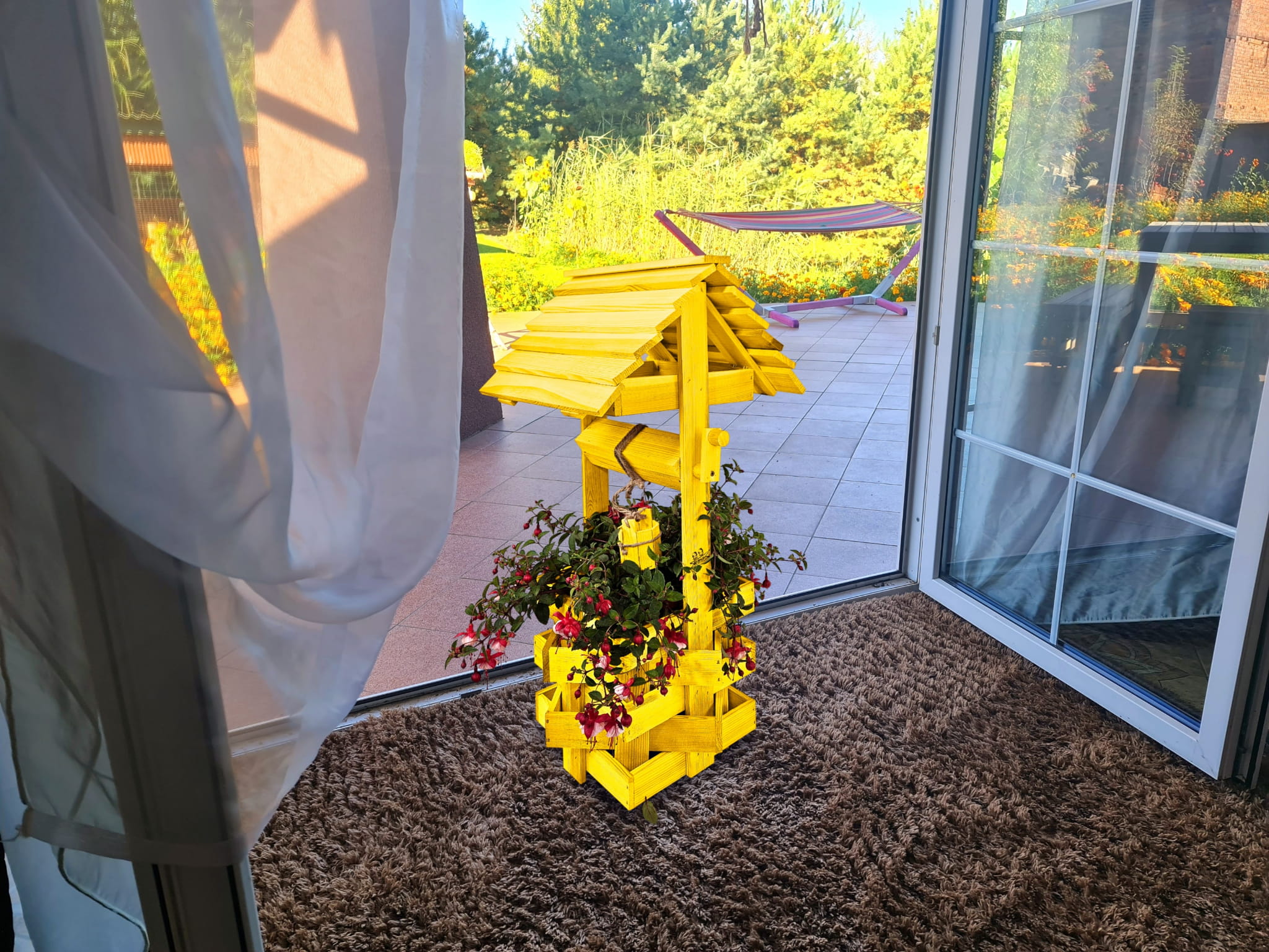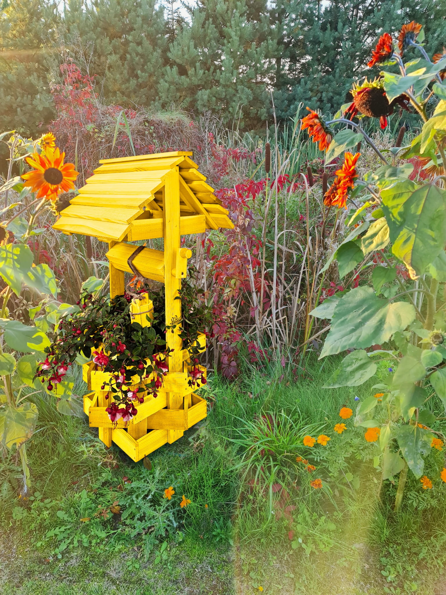 - Studnia została wzbogacona o drewnianą donicę, w której można dodatkowo storzyć miniogródek