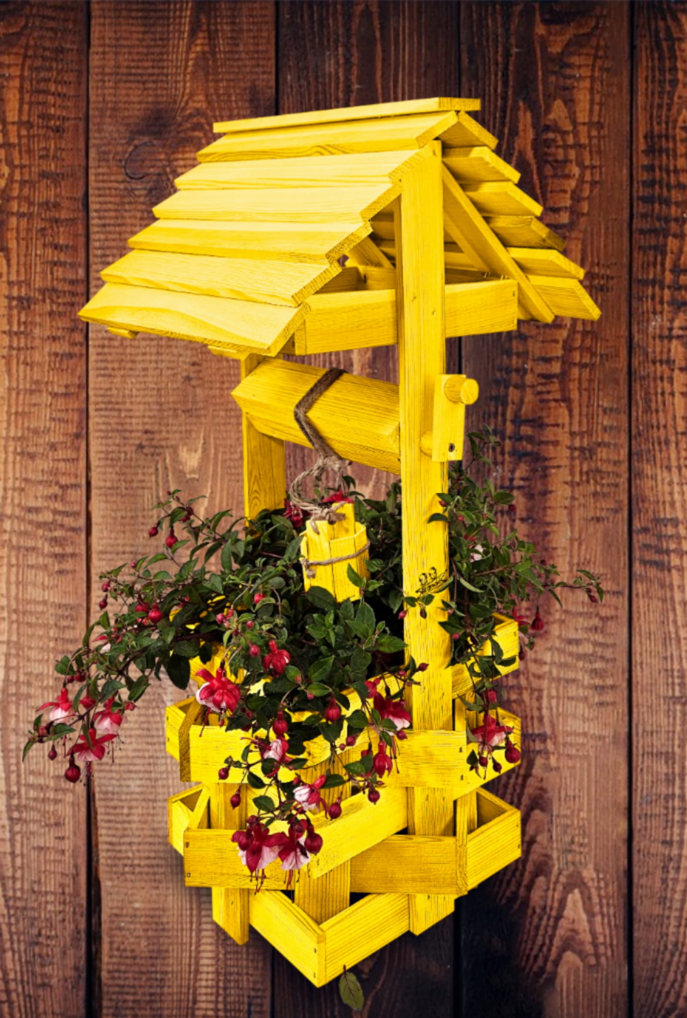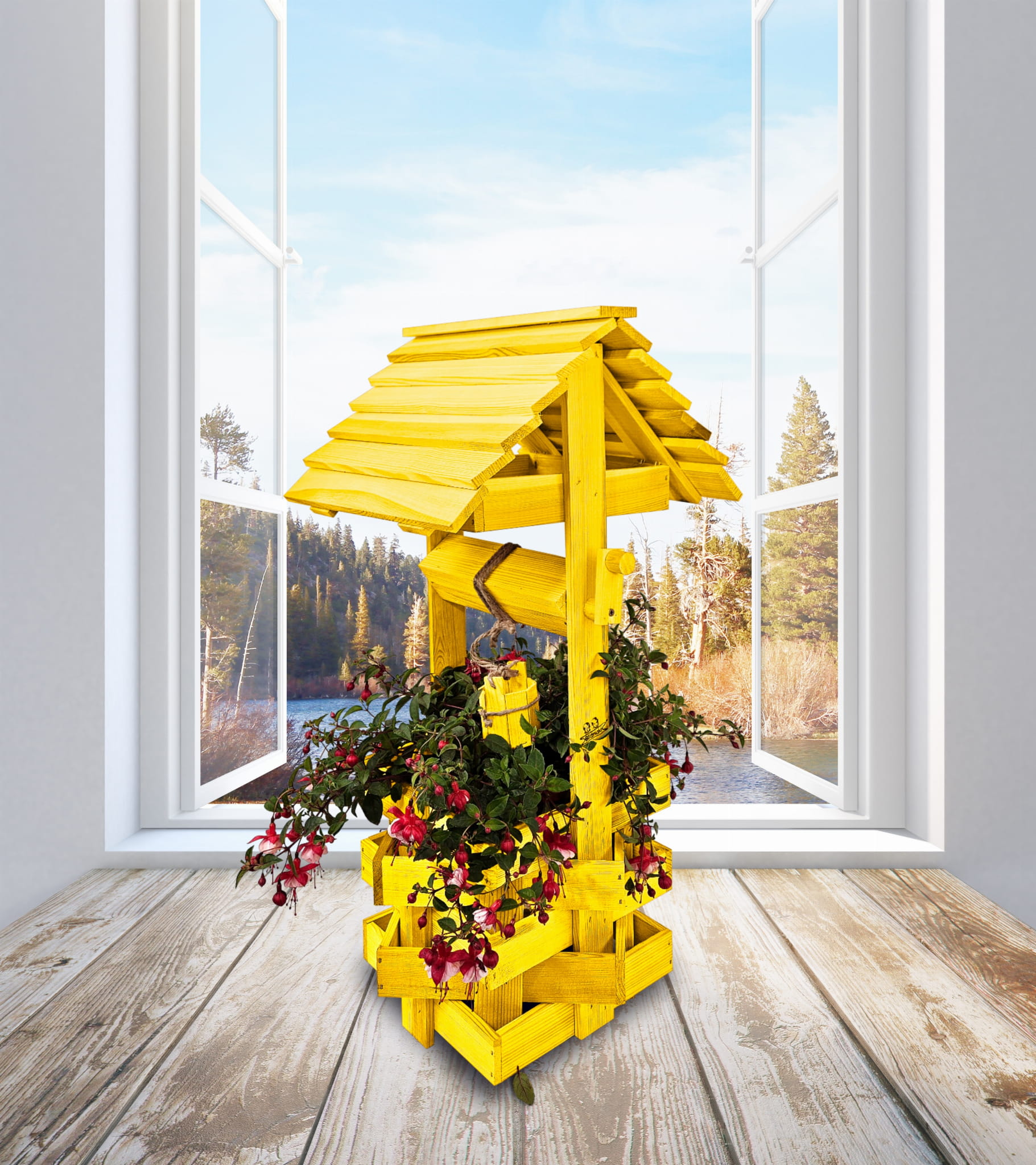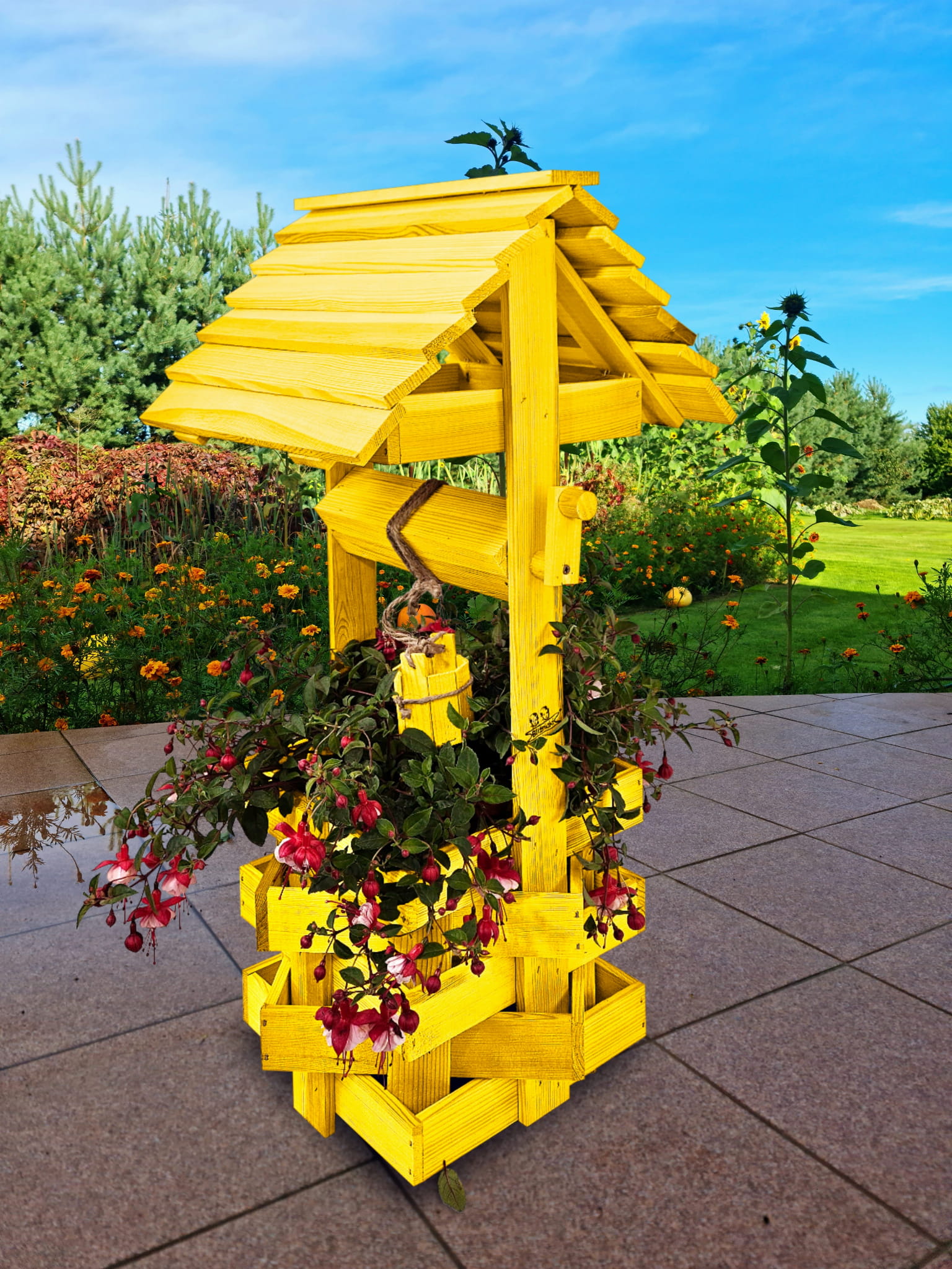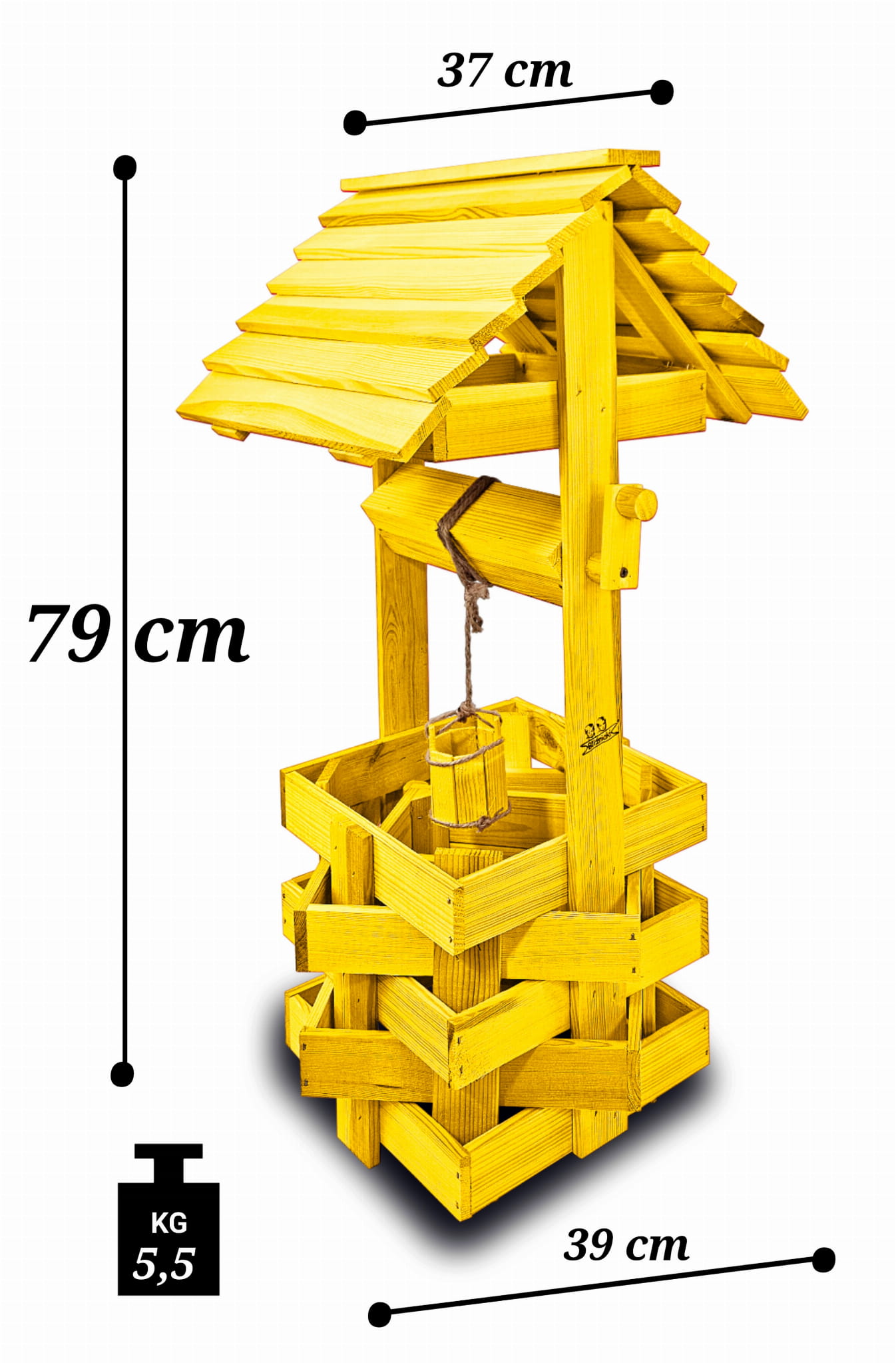 Studnia Drewniana 80 cm Ozdobna ogrodowa Kolor ŻÓŁTY Donica na kwiaty do Domu i Ogrodu Studnie Balkonowe Tarasowe Studzienka na peralgonie Kwietnik doniczki Prezent Studzienki ozdobne SC1 ZB