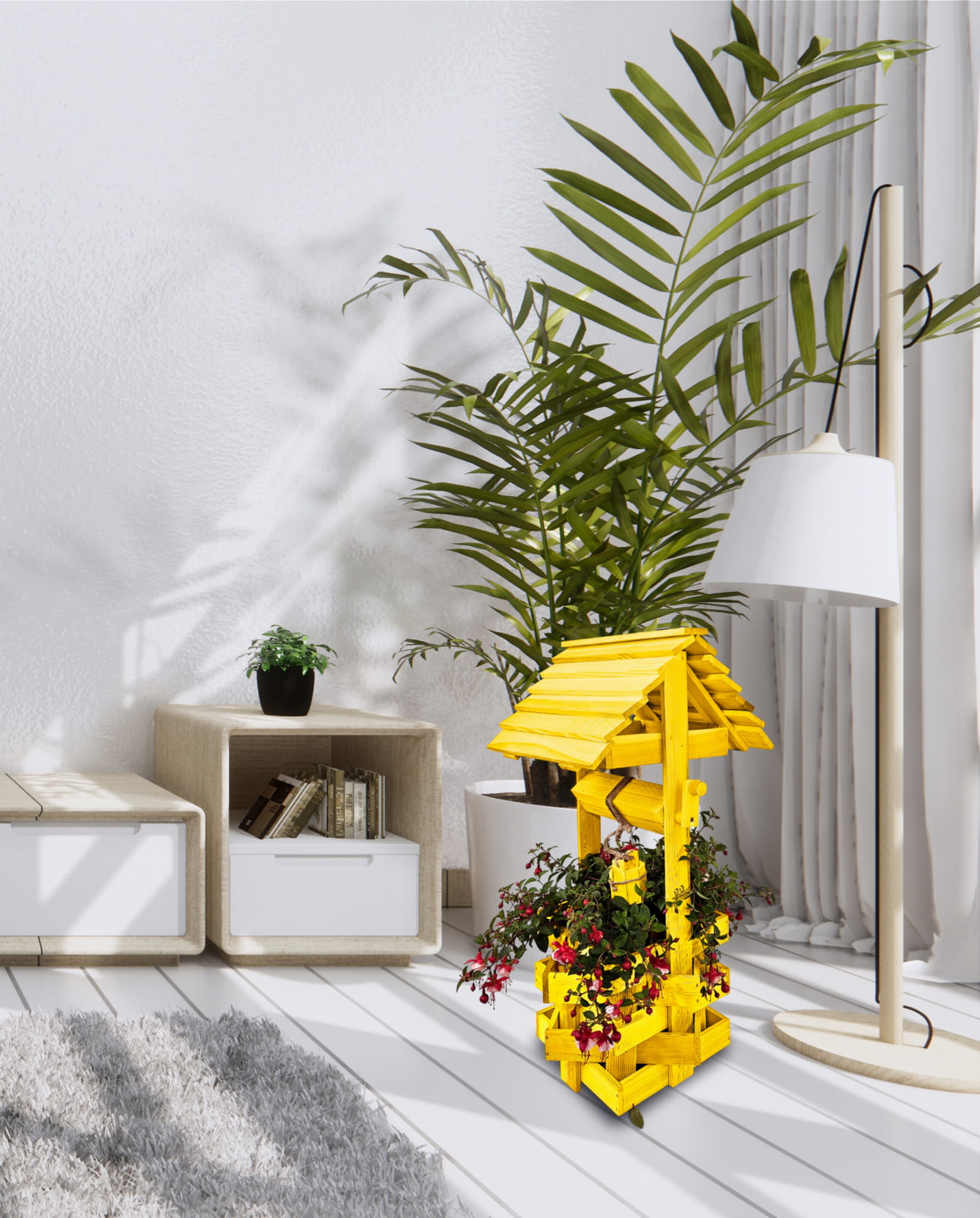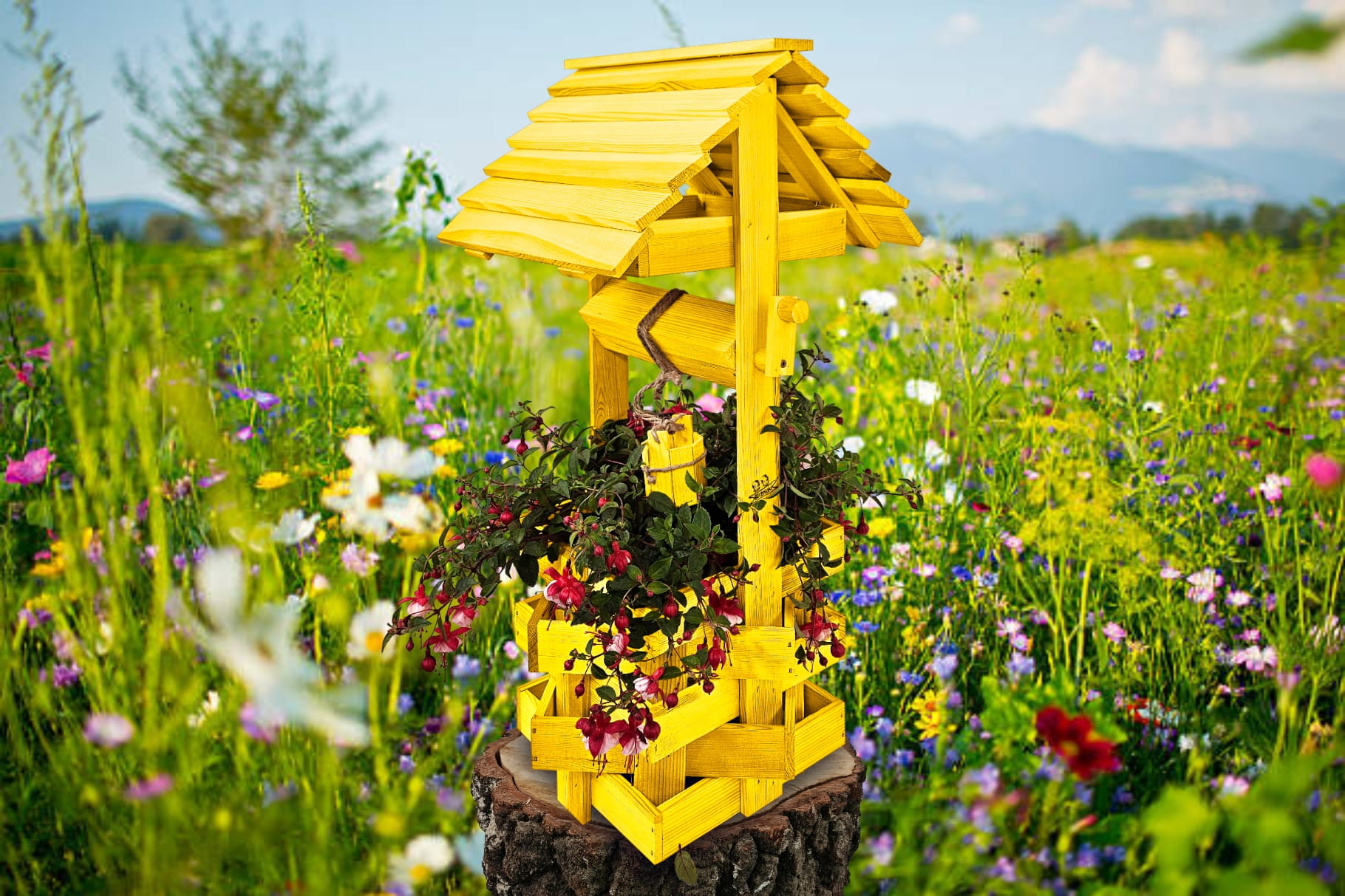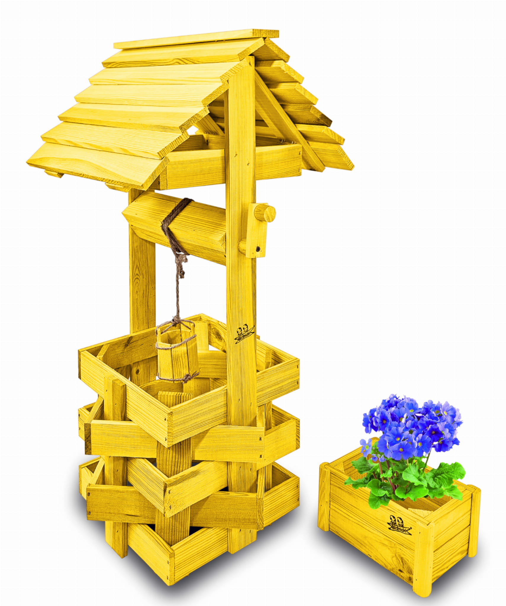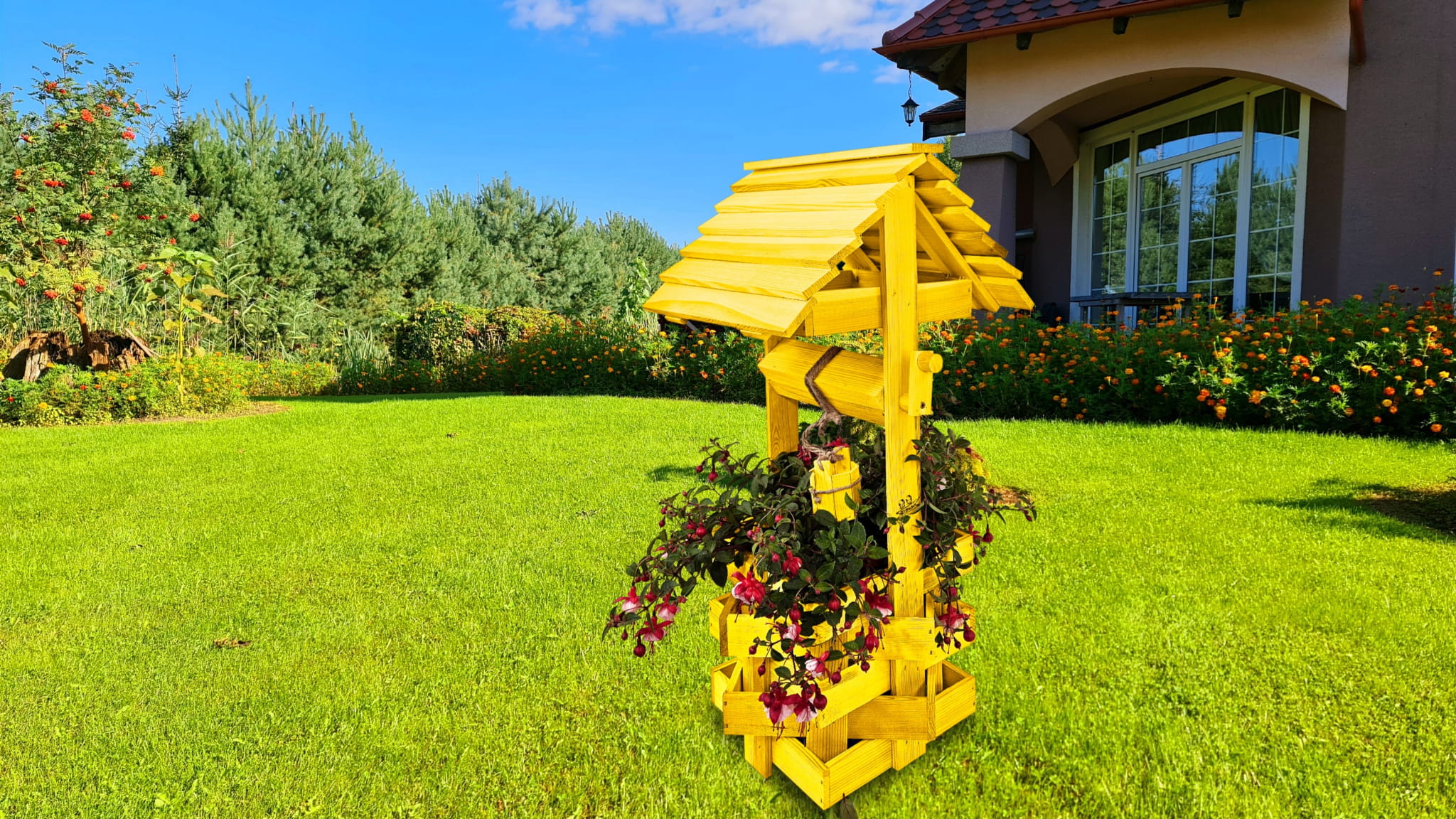 Studnia Drewniana 80 cm Ozdobna ogrodowa Kolor ŻÓŁTY Donica na kwiaty do Domu i Ogrodu Studnie Balkonowe Tarasowe Studzienka na peralgonie Kwietnik doniczki Prezent Studzienki ozdobne SC1 ZB