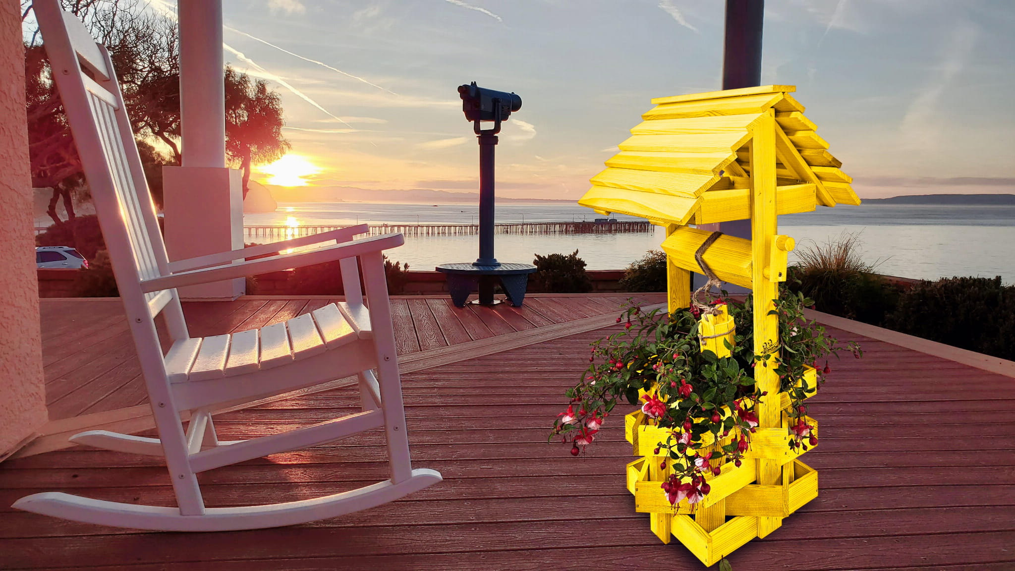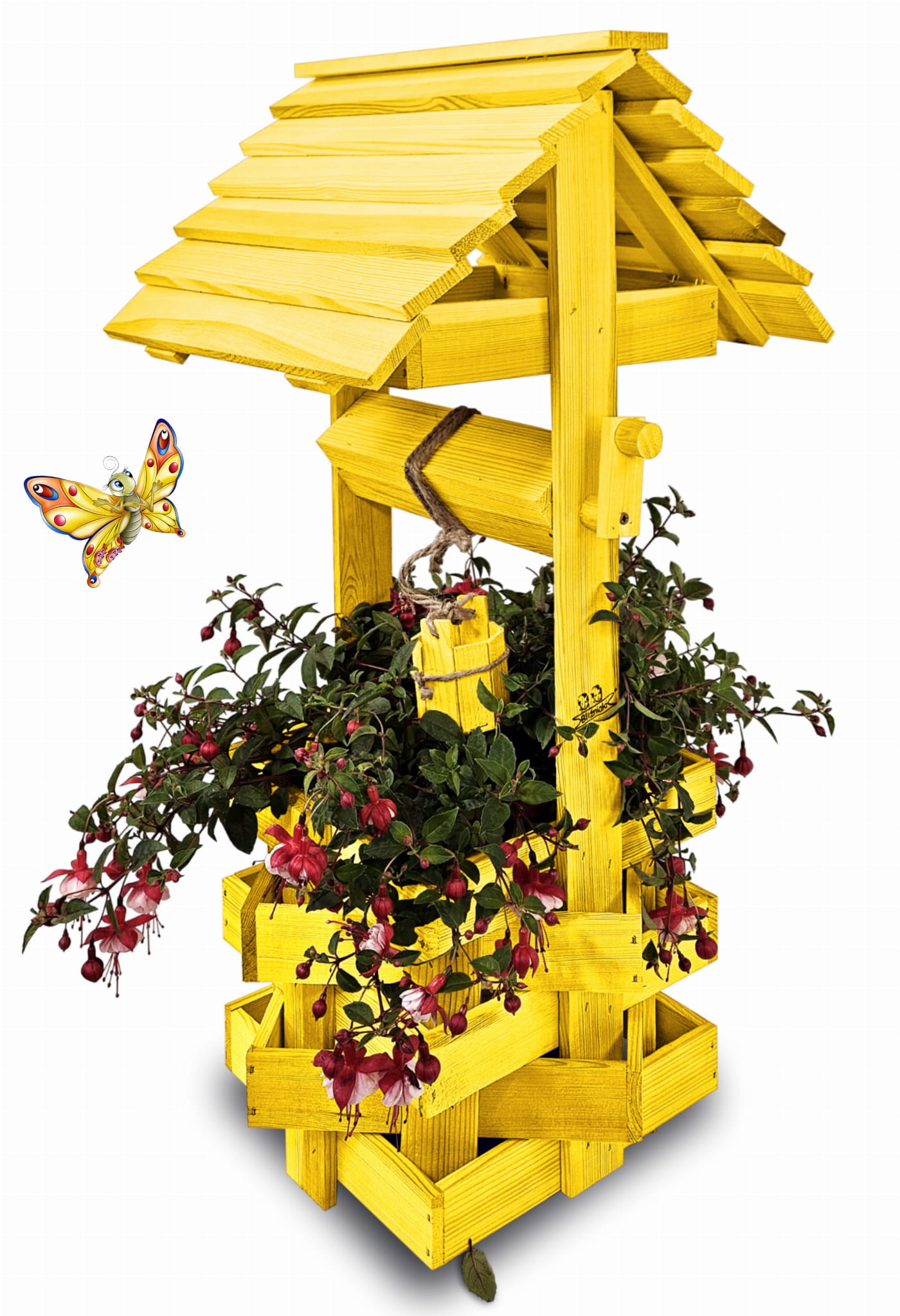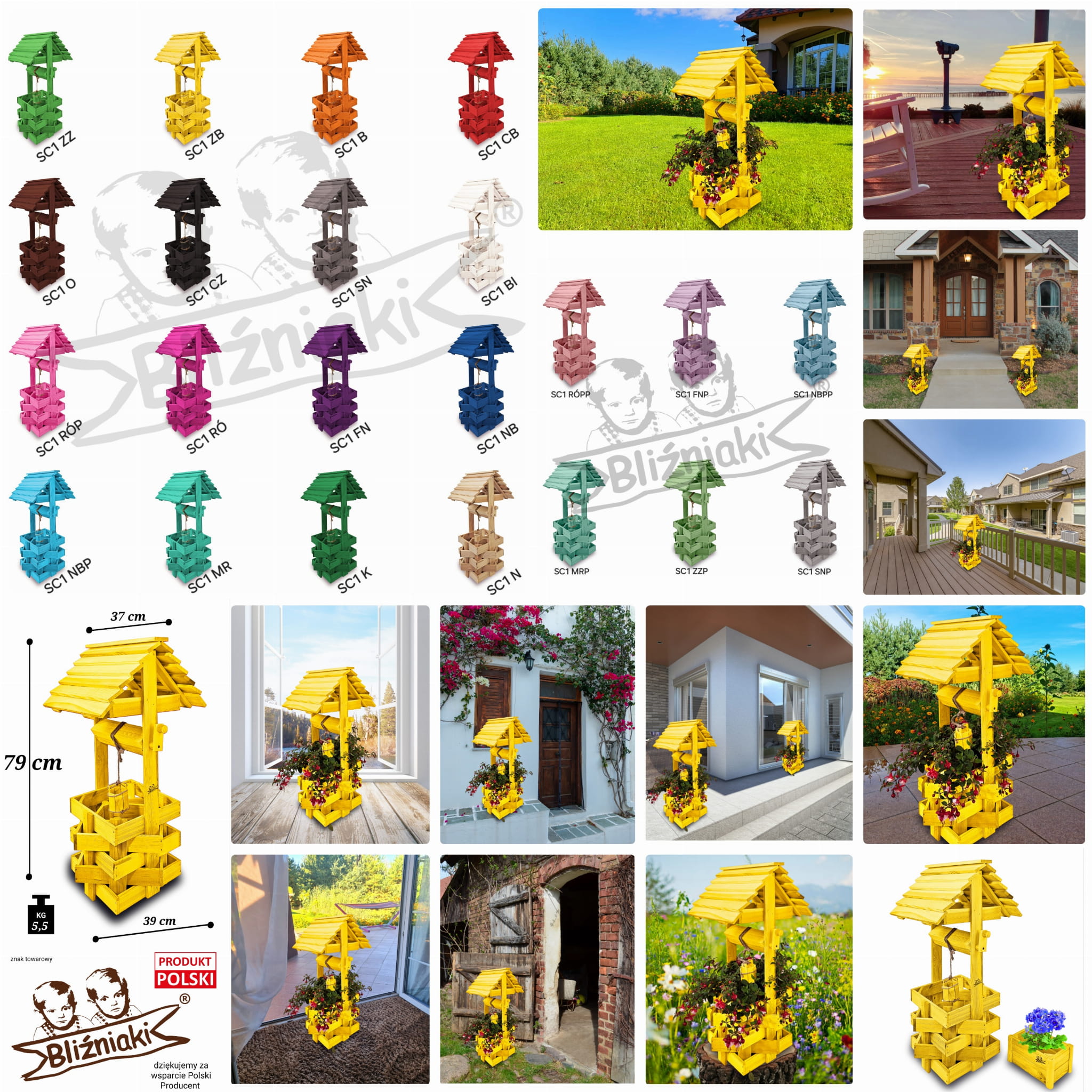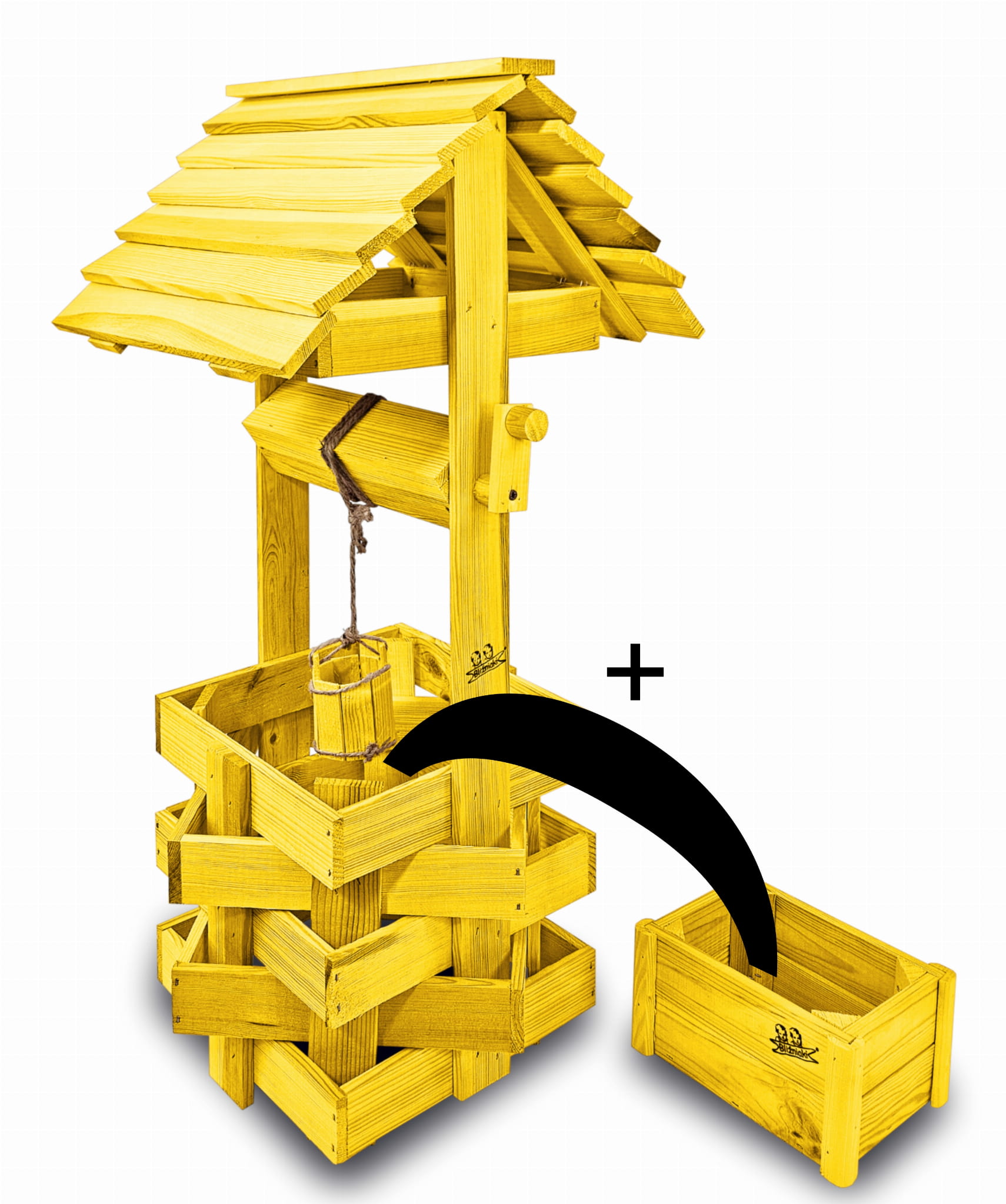 Studnia Drewniana 80 cm Ozdobna ogrodowa Kolor ŻÓŁTY Donica na kwiaty do Domu i Ogrodu Studnie Balkonowe Tarasowe Studzienka na peralgonie Kwietnik doniczki Prezent Studzienki ozdobne SC1 ZB