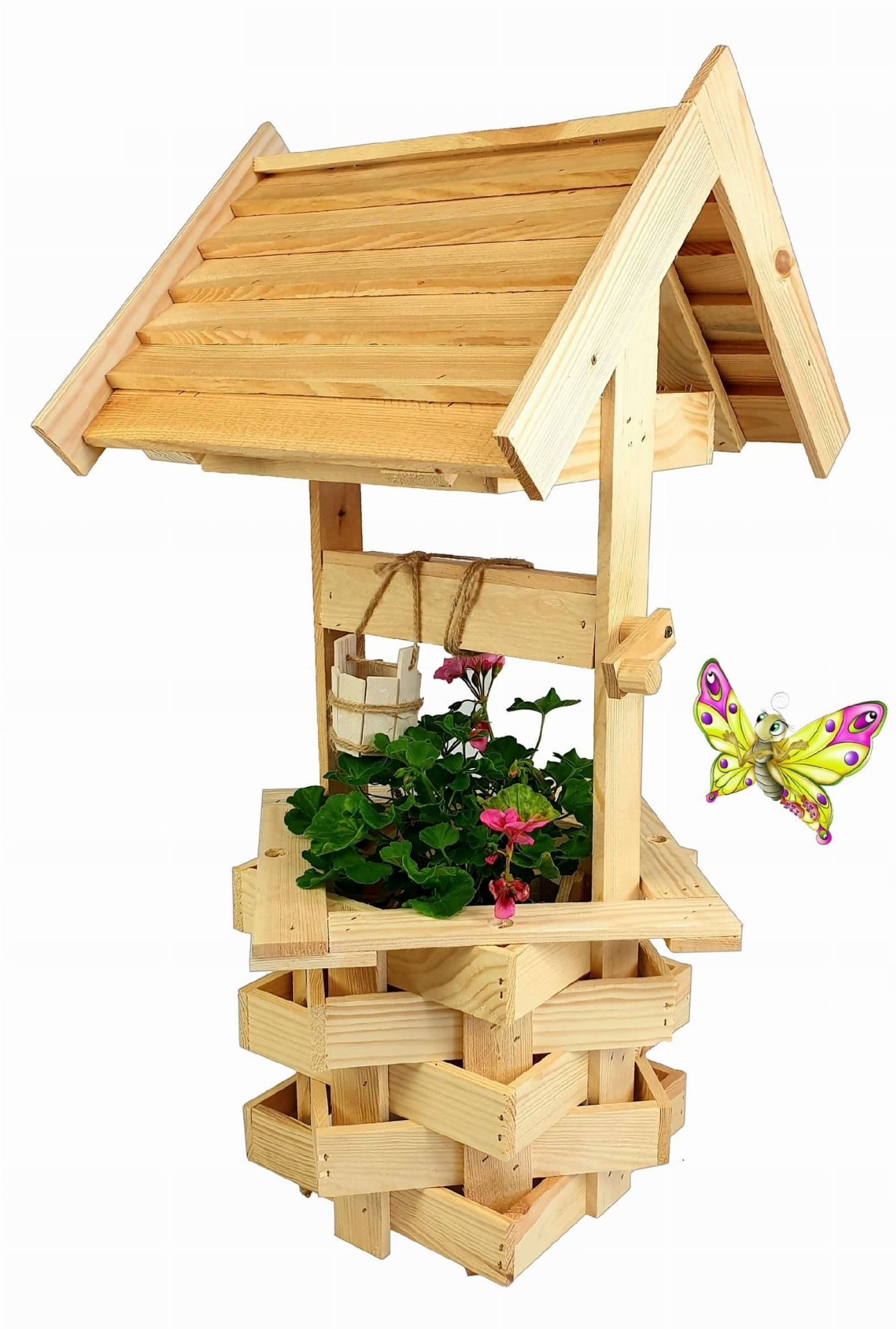 Studnia Ogrodowa Drewniana Ozdobny Kwietnik Stojak ze Skrzynką na Rośliny w Zestawie (SC4 N)