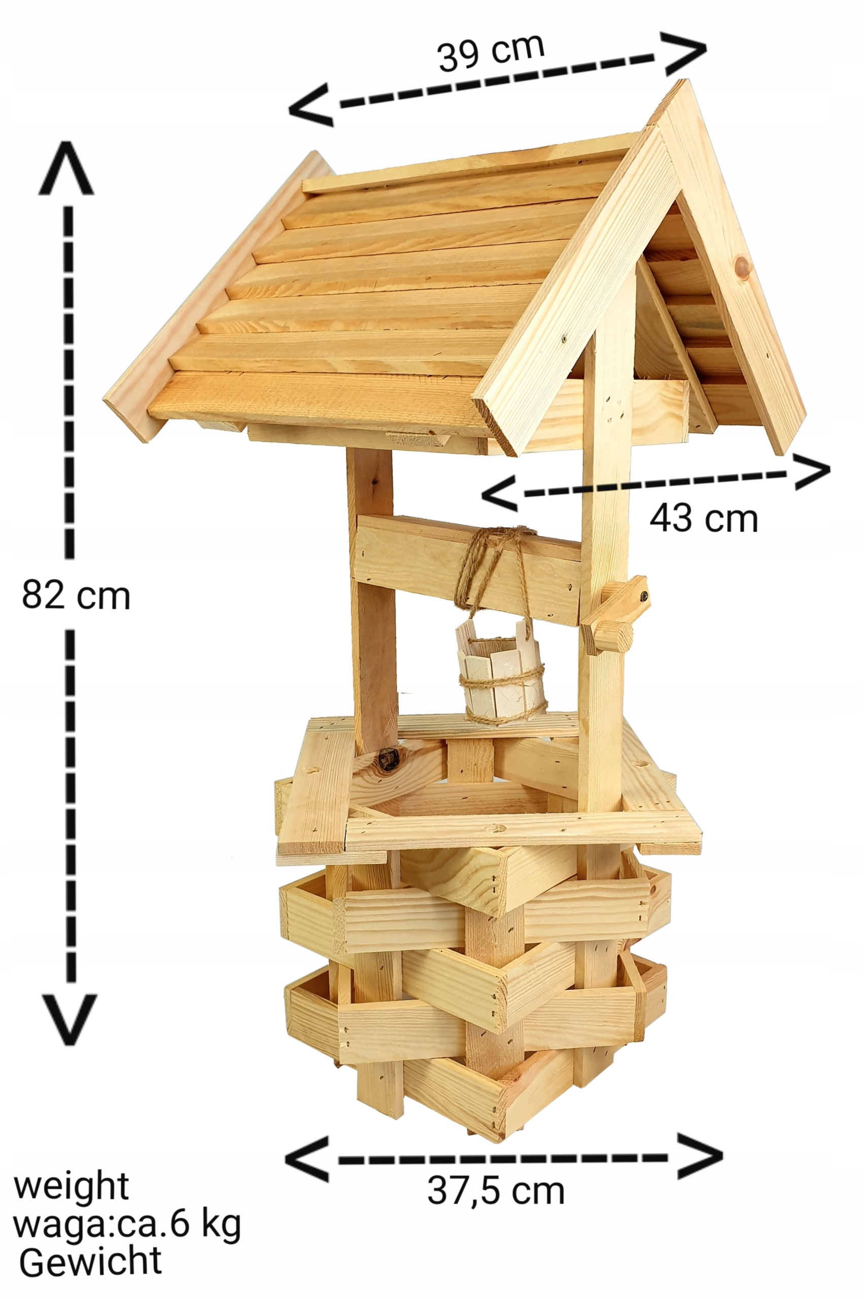 Nasza dekoracyjna studnia w wersji NATURALNEJ wykonana z suszonego drewna sosnowego to nie tylko piękny element dekoracyjny, ale również wyraz ekologicznego podejścia do projektowania ogrodów.