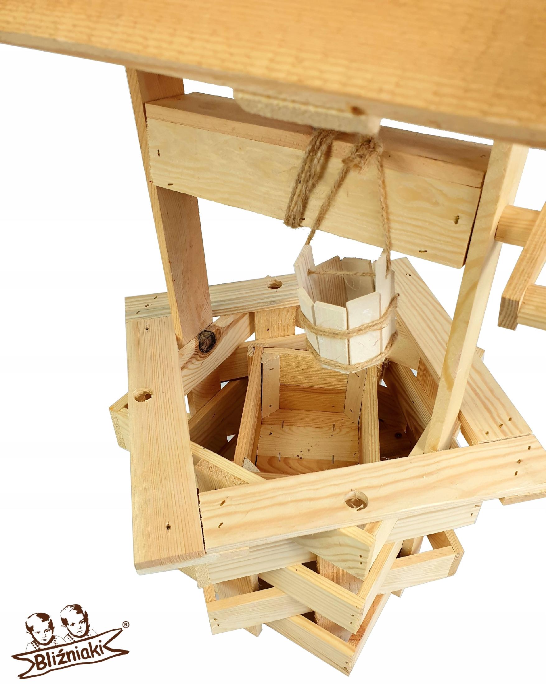 Studnia wyposażona jest w ruchomy kołowrotek wraz z wiaderkiem.