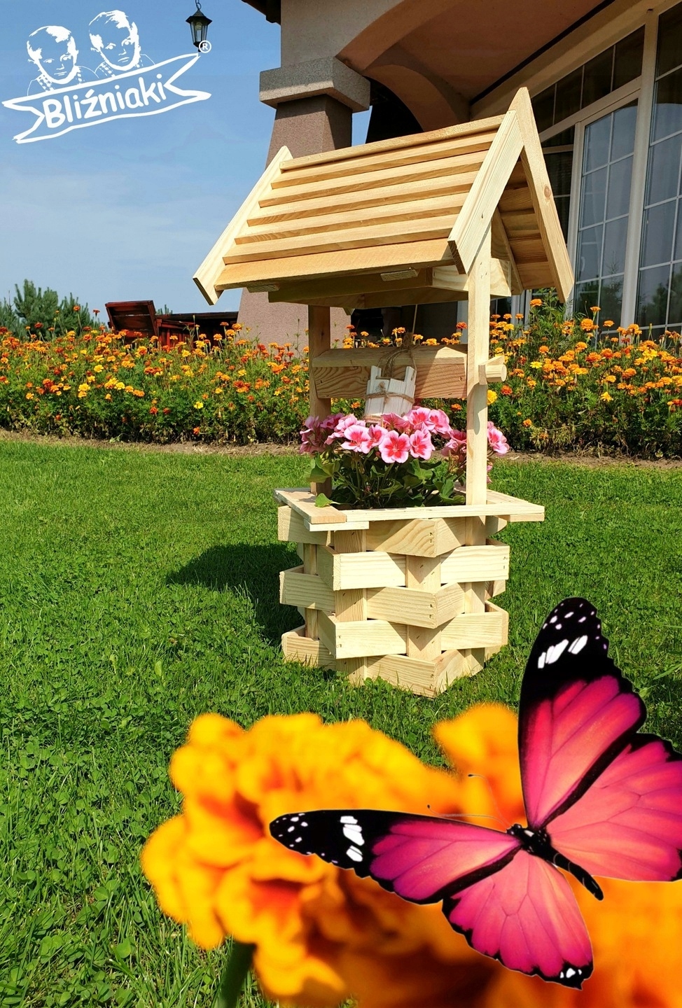 - Studnia została wzbogacona o drewnianą donicę, w której można dodatkowo storzyć miniogródek