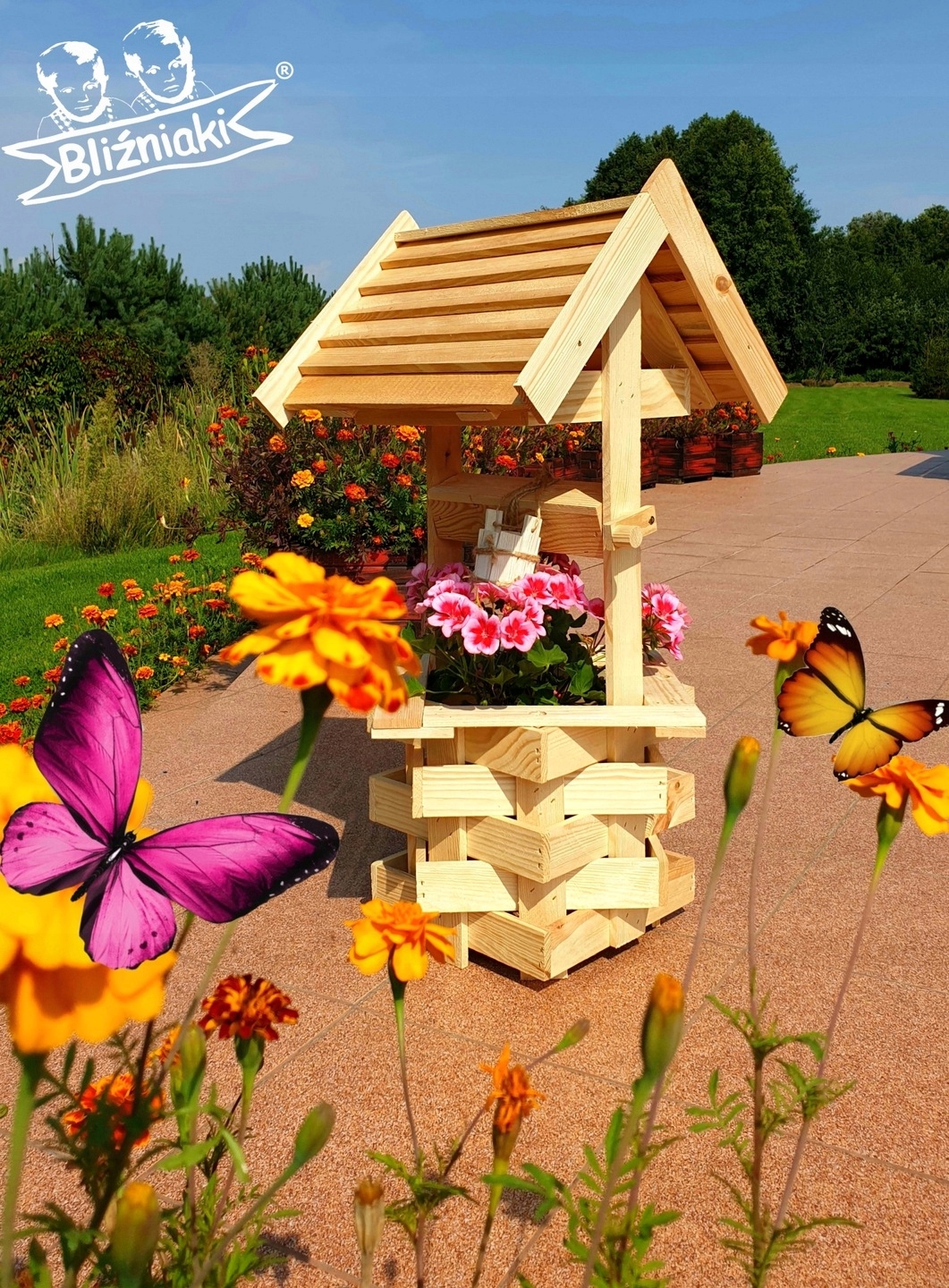 DEKORACYJNA STUDNIA OGRODOWA W ZESTAWIE ZE SKRZYNKĄ NA ROŚLINY
