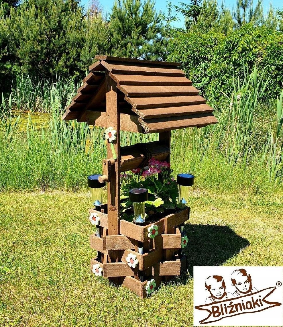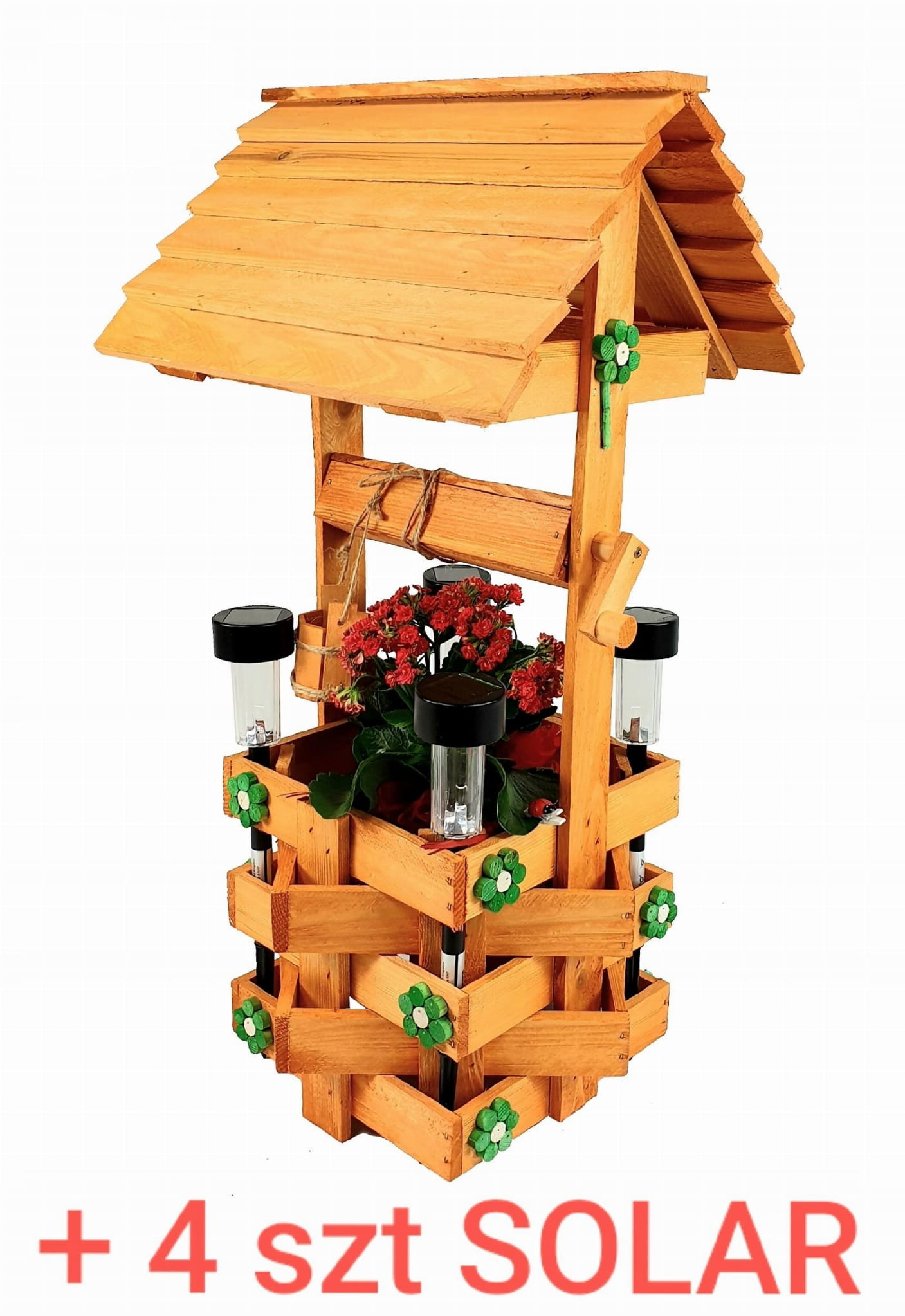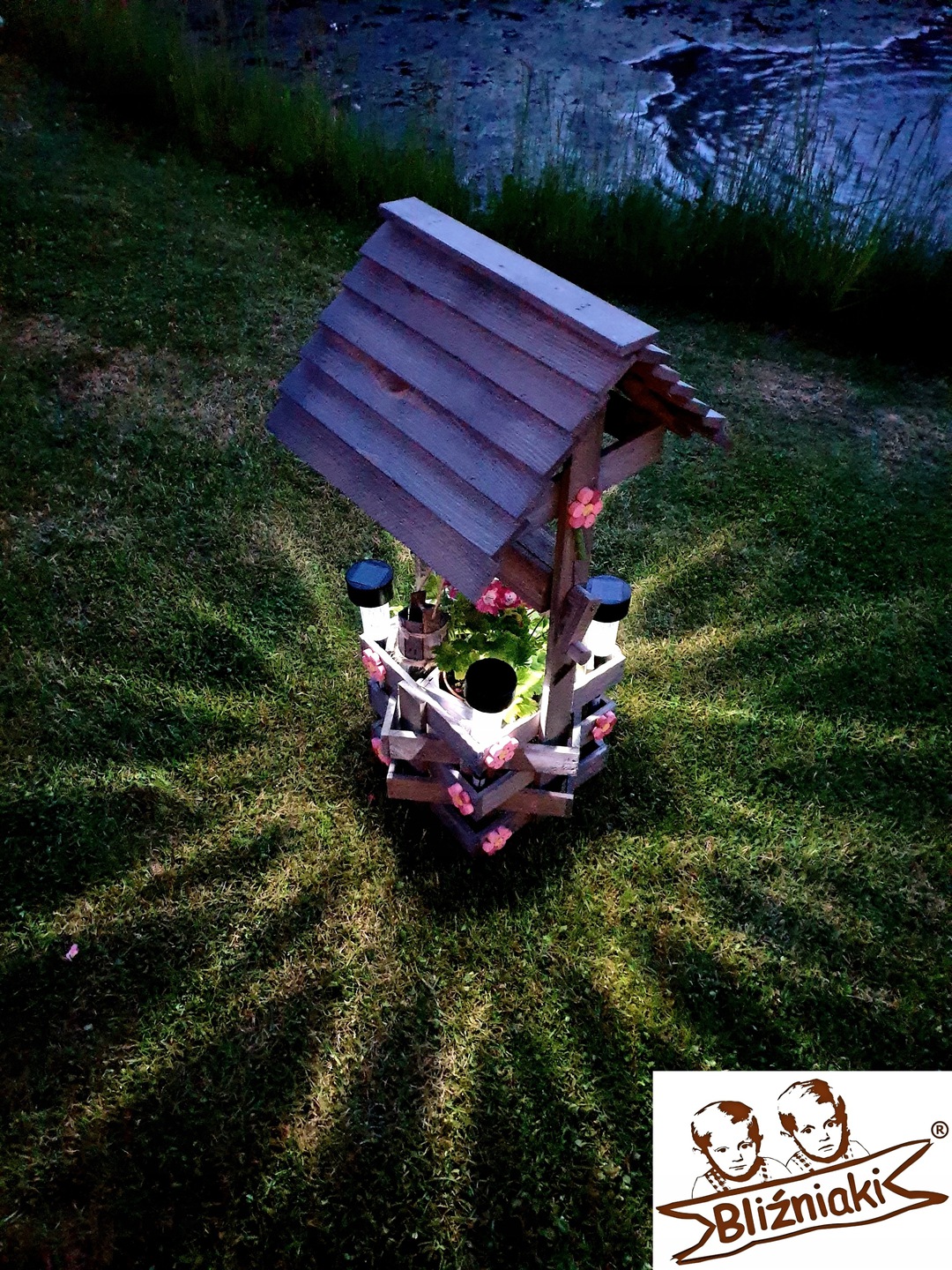 STUDNIA DREWNIANA OGRODOWA STUDZIENKA DEKORACYJNA Z CZTEREMA SOLARAMI ŚWIECĄCYMI W NOCY