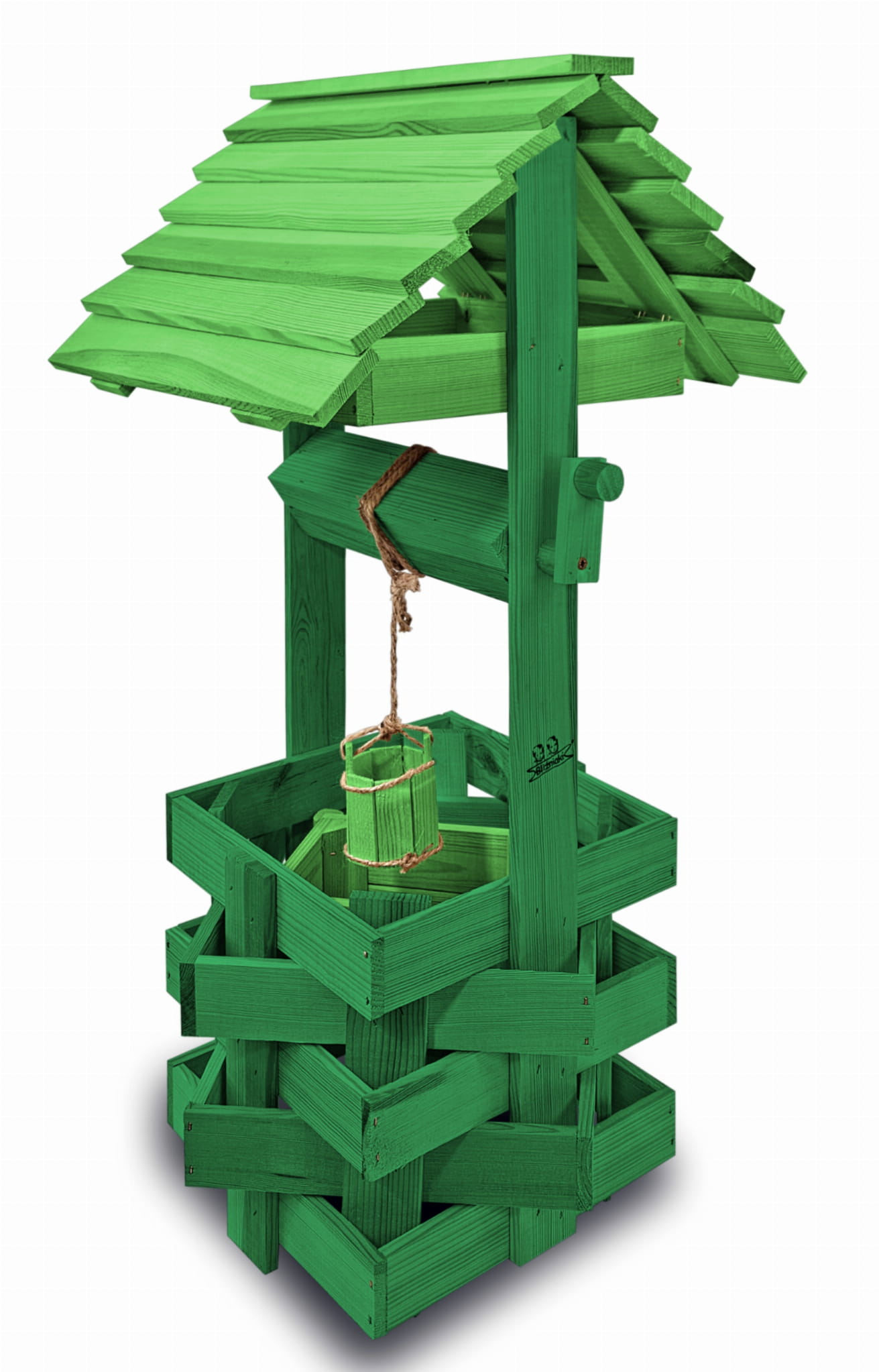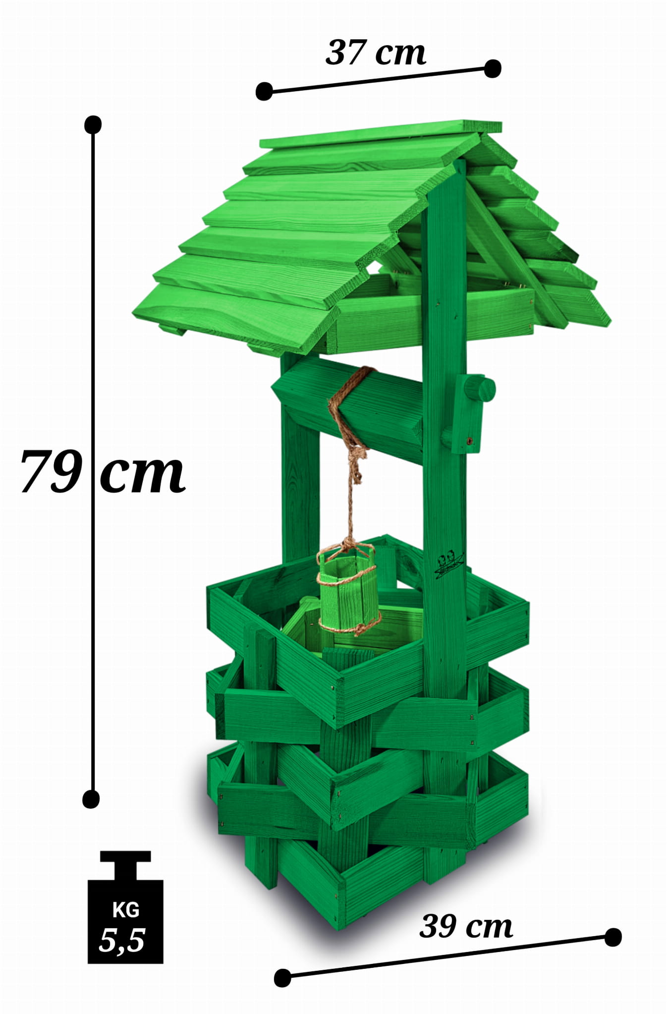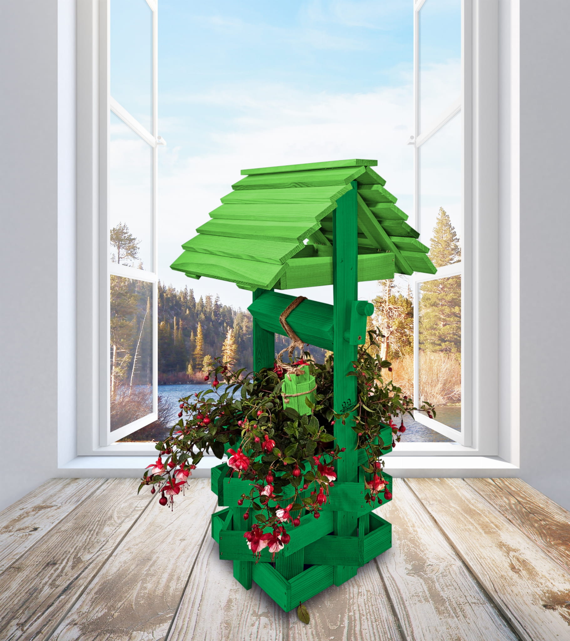 Studnia drewniana na kwiaty Studzienka na pelargonie Donica na kwiaty do domu i ogrodu Figura ogrodowa Kwietnik 80 cm Kolor ZIELONY Oryginalna ręczna robota Studnie balkonowe tarasowe Doniczki prezent OZDOBA WNĘTRZ I OGRODU SC1 K ZZ