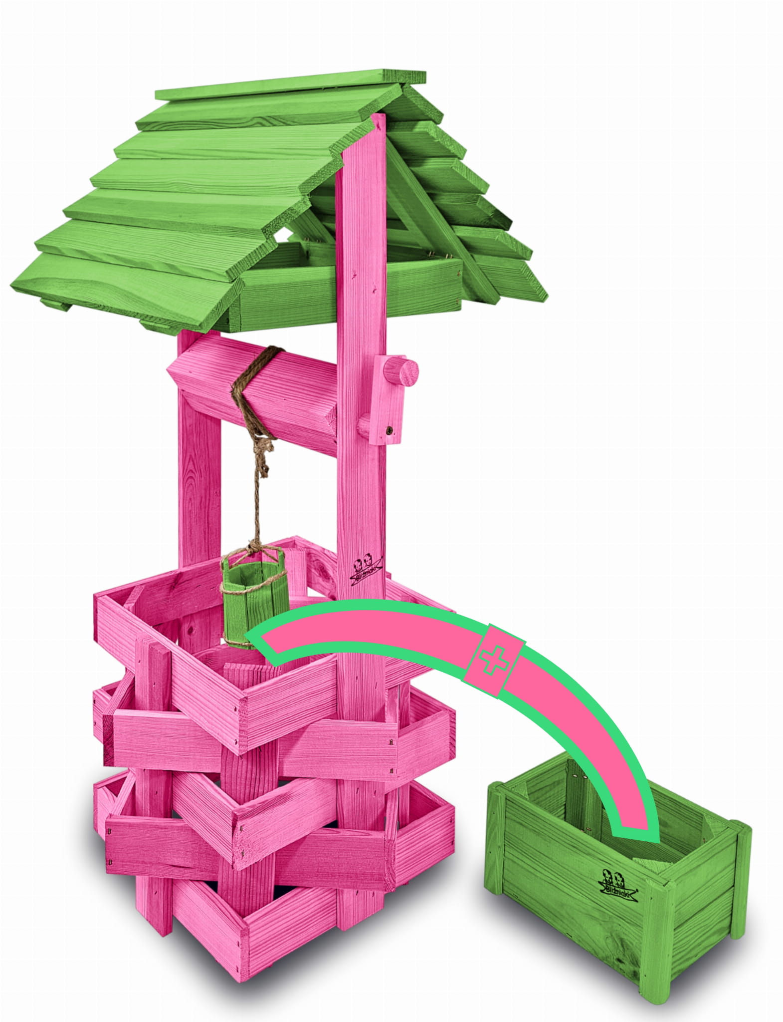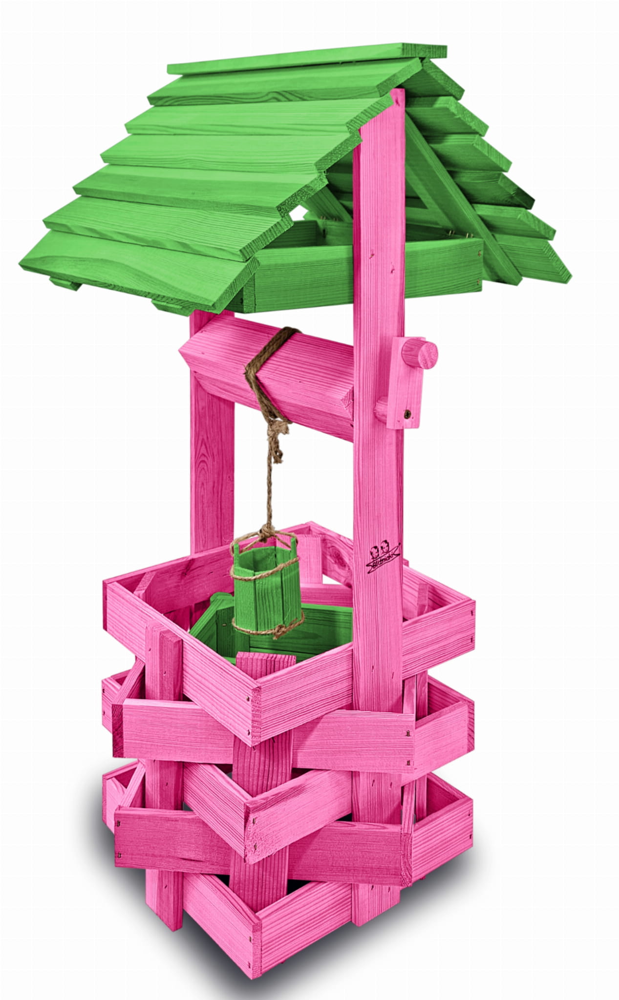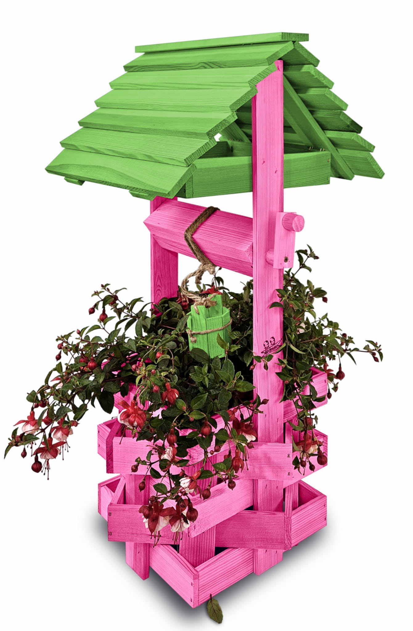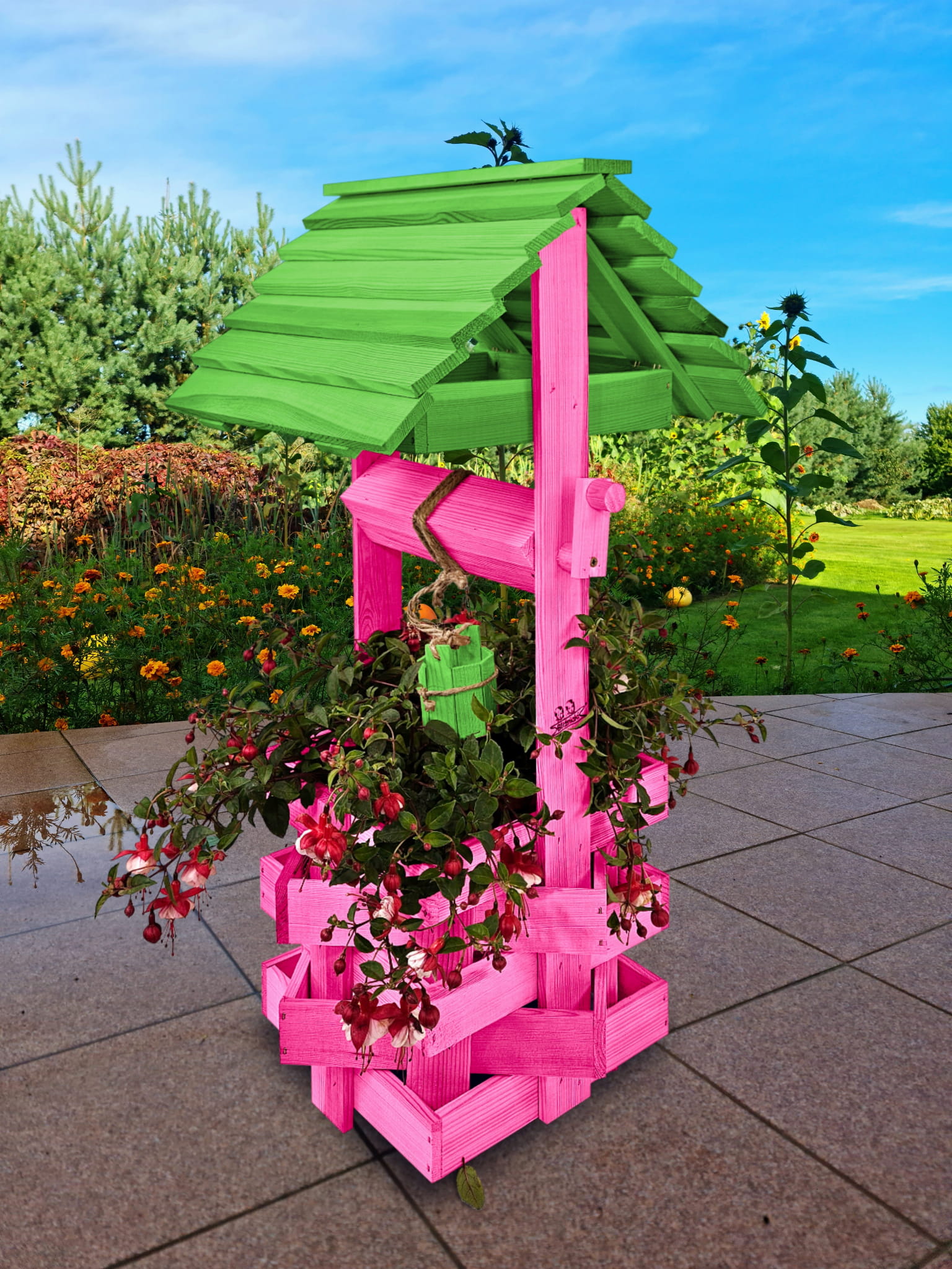 Studnia ogrodowa drewniana Figura Ogrodowa Donica na kwiaty do Domu i Ogrodu Studnie Balkonowe Tarasowe Studzienka na peralgonie Kwietnik Kolor RÓŻOWO ZIELONY Prezent Studzienki ozdobne OZDOBA WNĘTRZ I OGRODU SC1 RÓP ZZ
