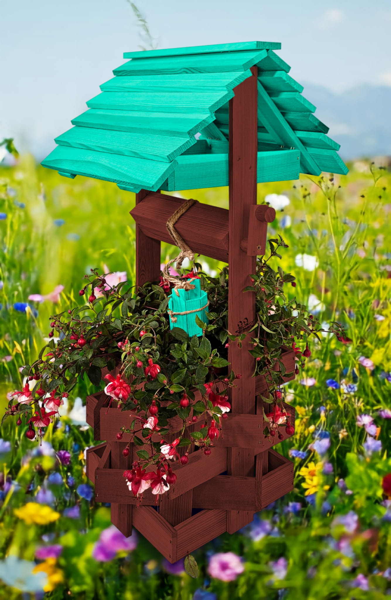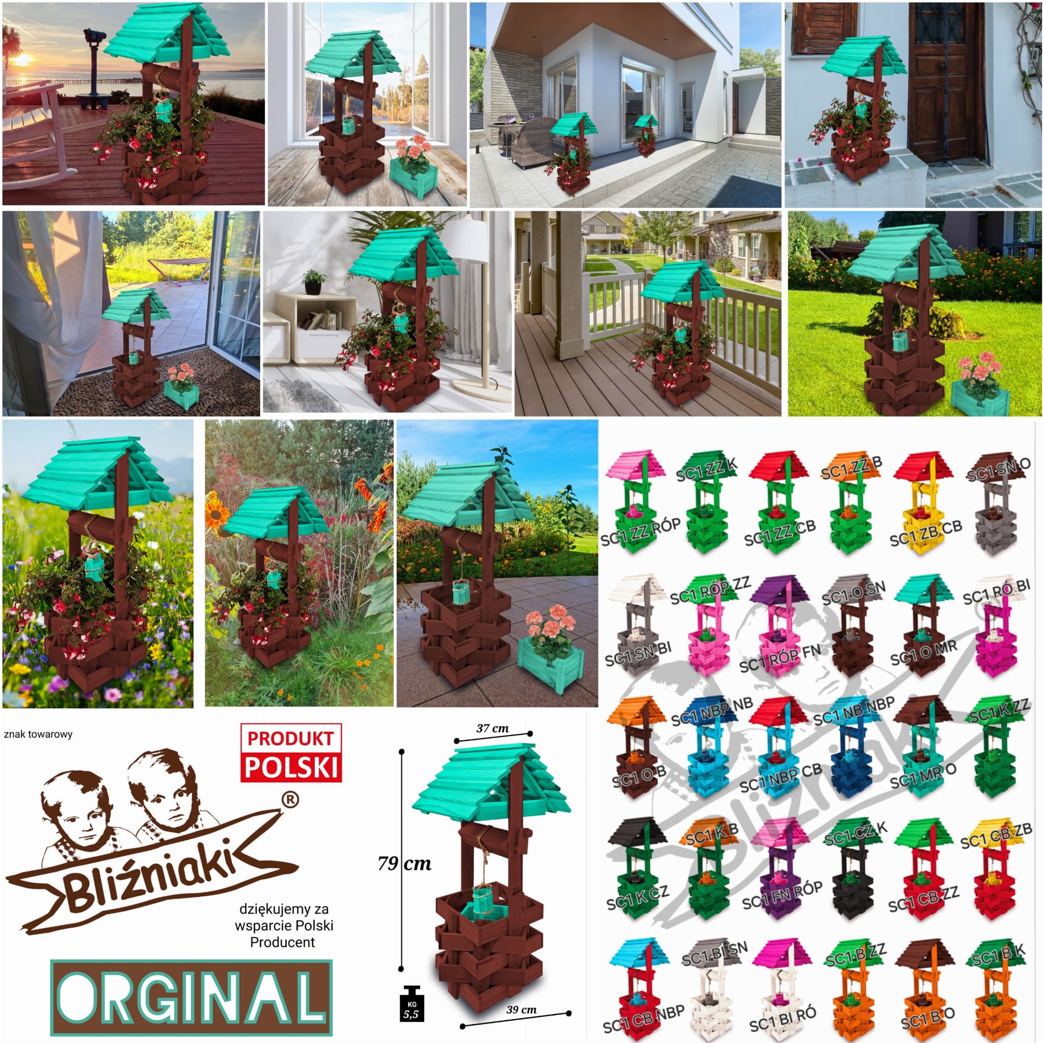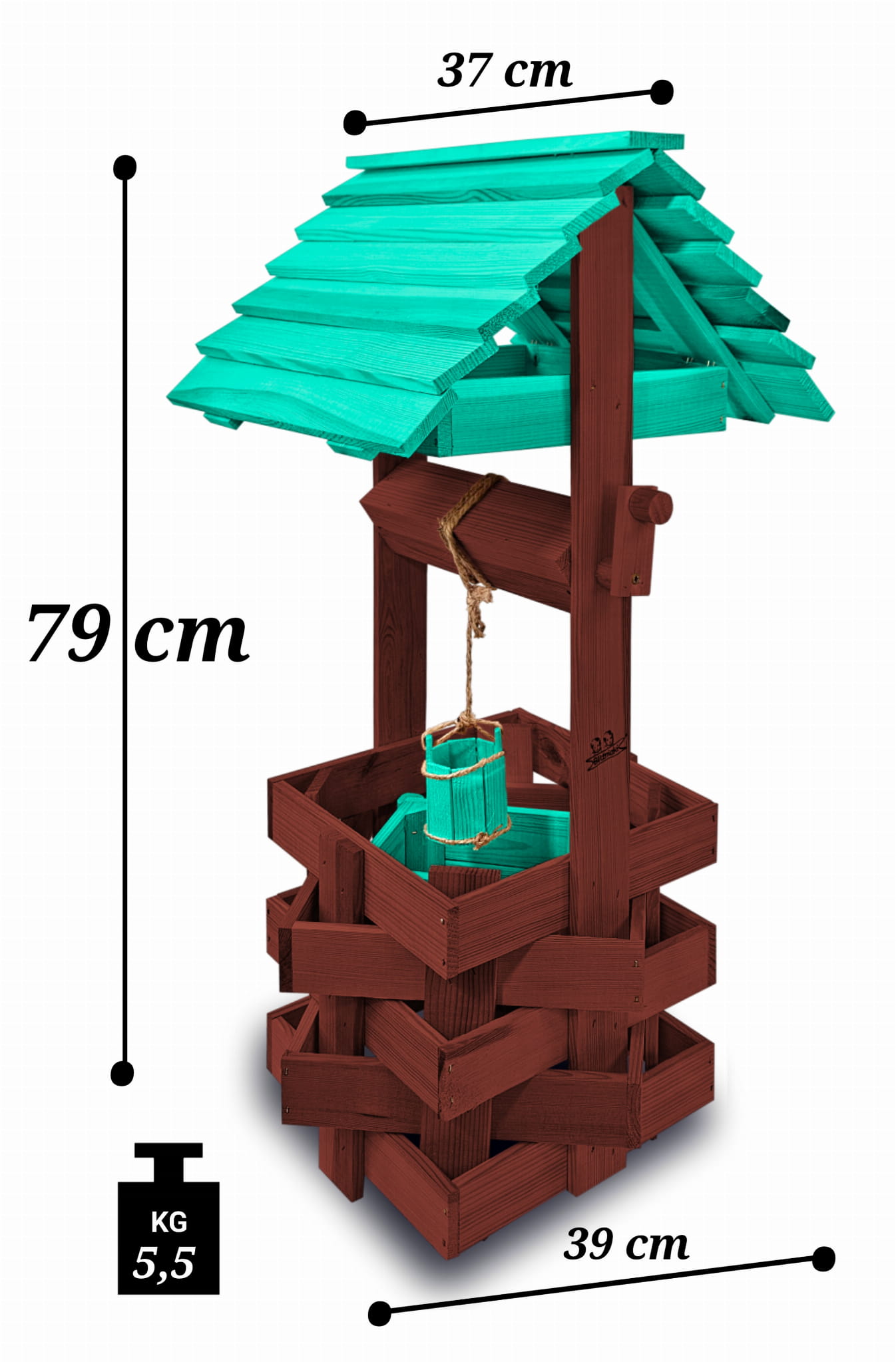 Studnia ogrodowa duża Donica na kwiaty do domu i ogrodu Figura ogrodowa ozdobna Drewniana studzienka na pelargonie Kolor ORZECH MORSKI Kwietnik doniczki Studnie balkonowe Ozdoba wnętrz i ogrodów HANDMADE SC1 O MR