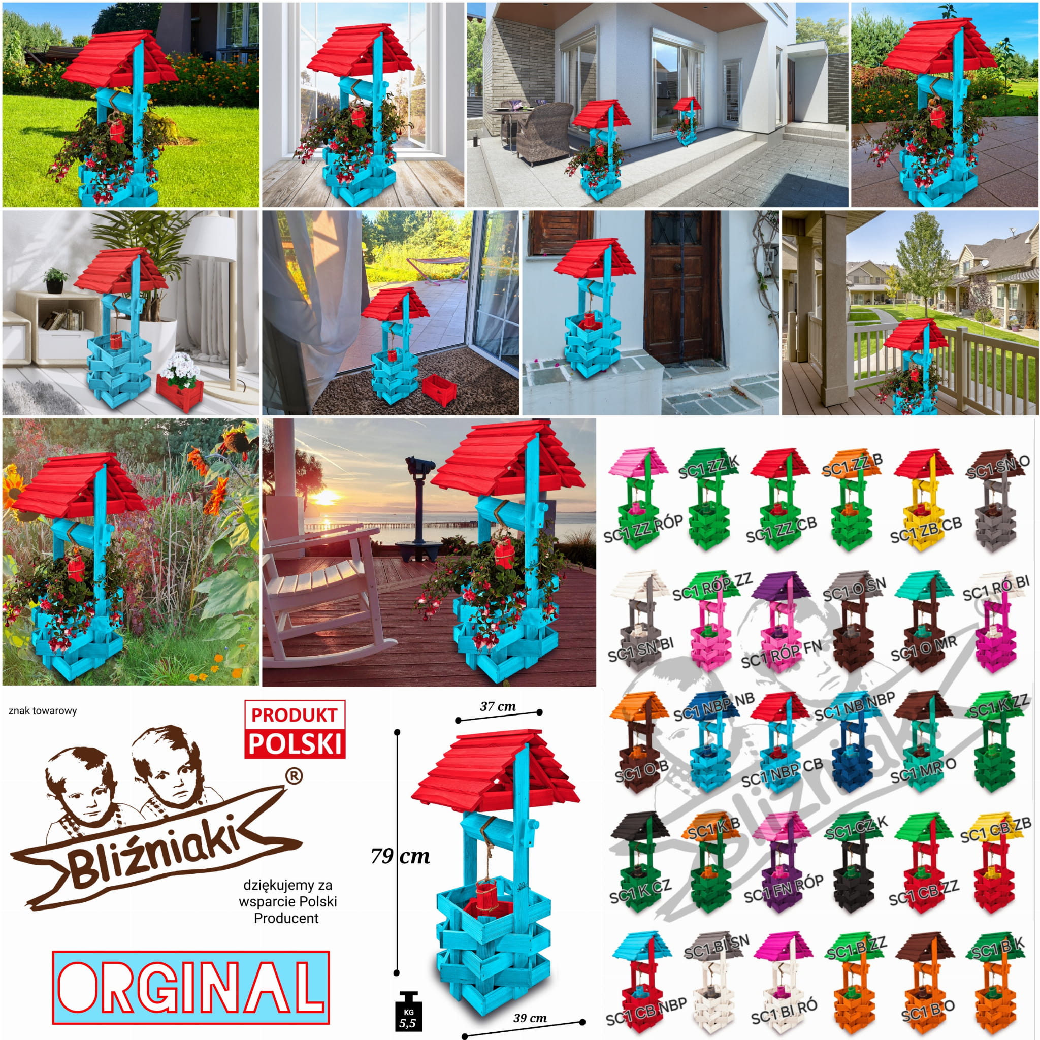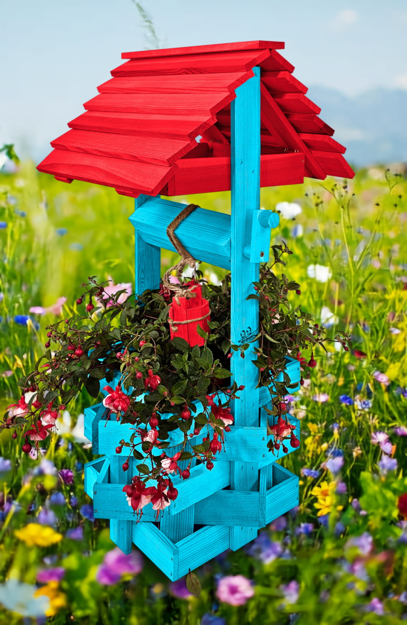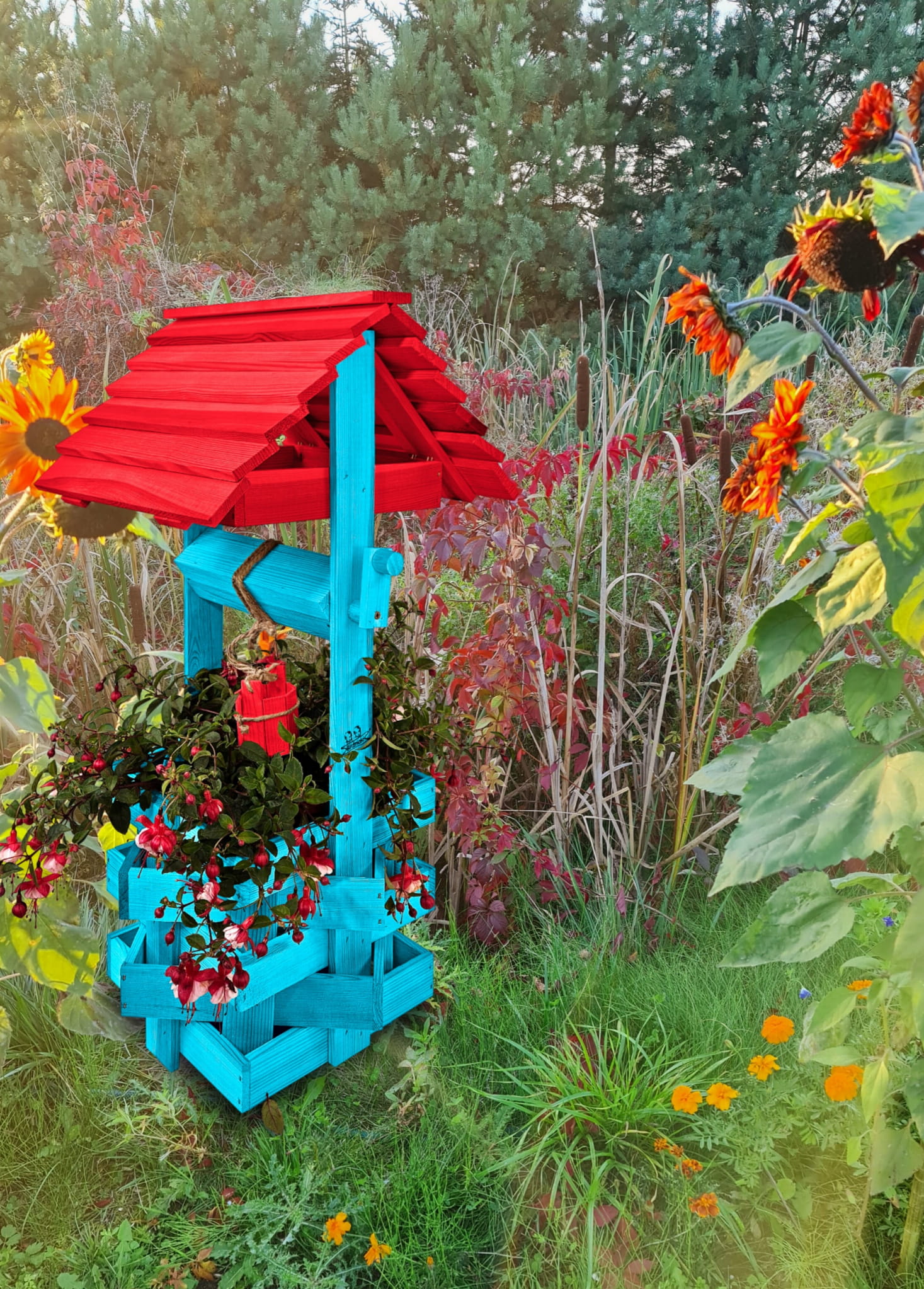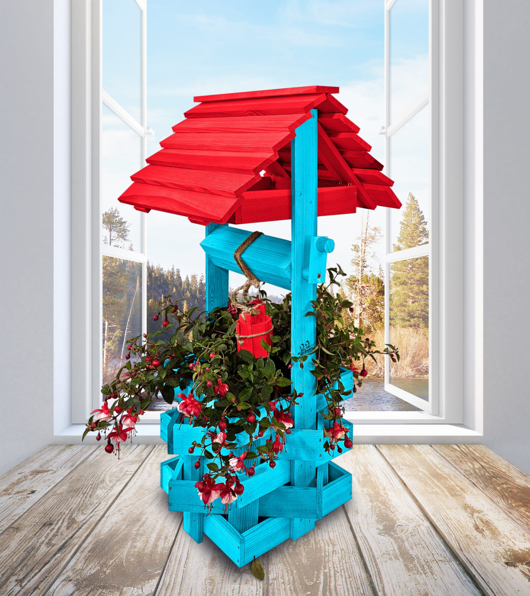 Studzienka na pelargonie Doniczki ozdobne Studnie balkonowe tarasowe Ozdoba wnętrz i ogrodu Rękodzieło Donica na kwiaty i pnącza do ogrodu Kwietnik Kolor BŁĘKITNY CZERWONY Wsad na kwiaty Studnia duża ozdobna SC1 NBP CB