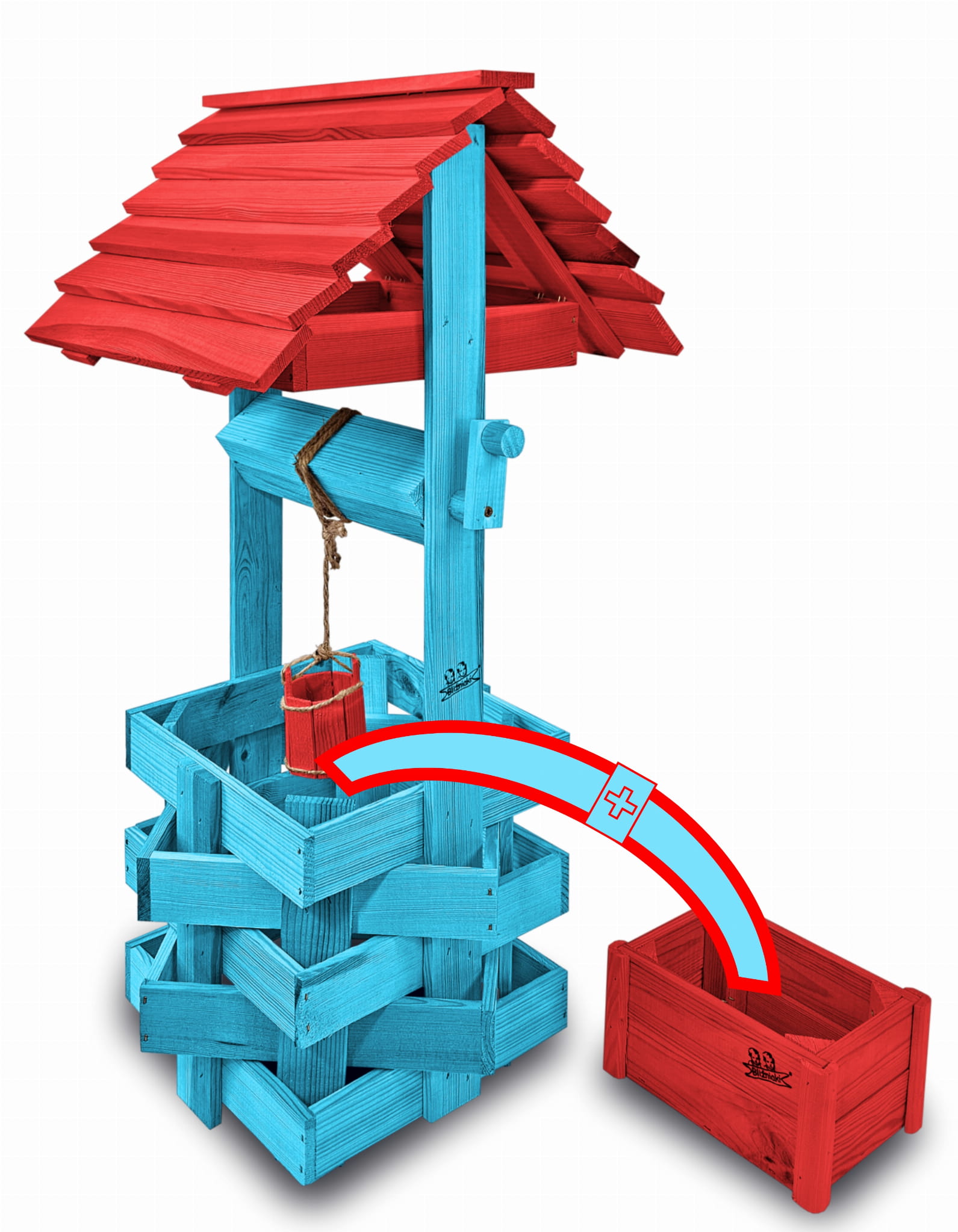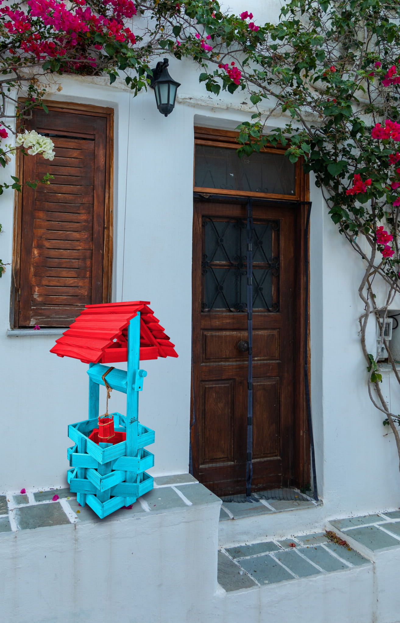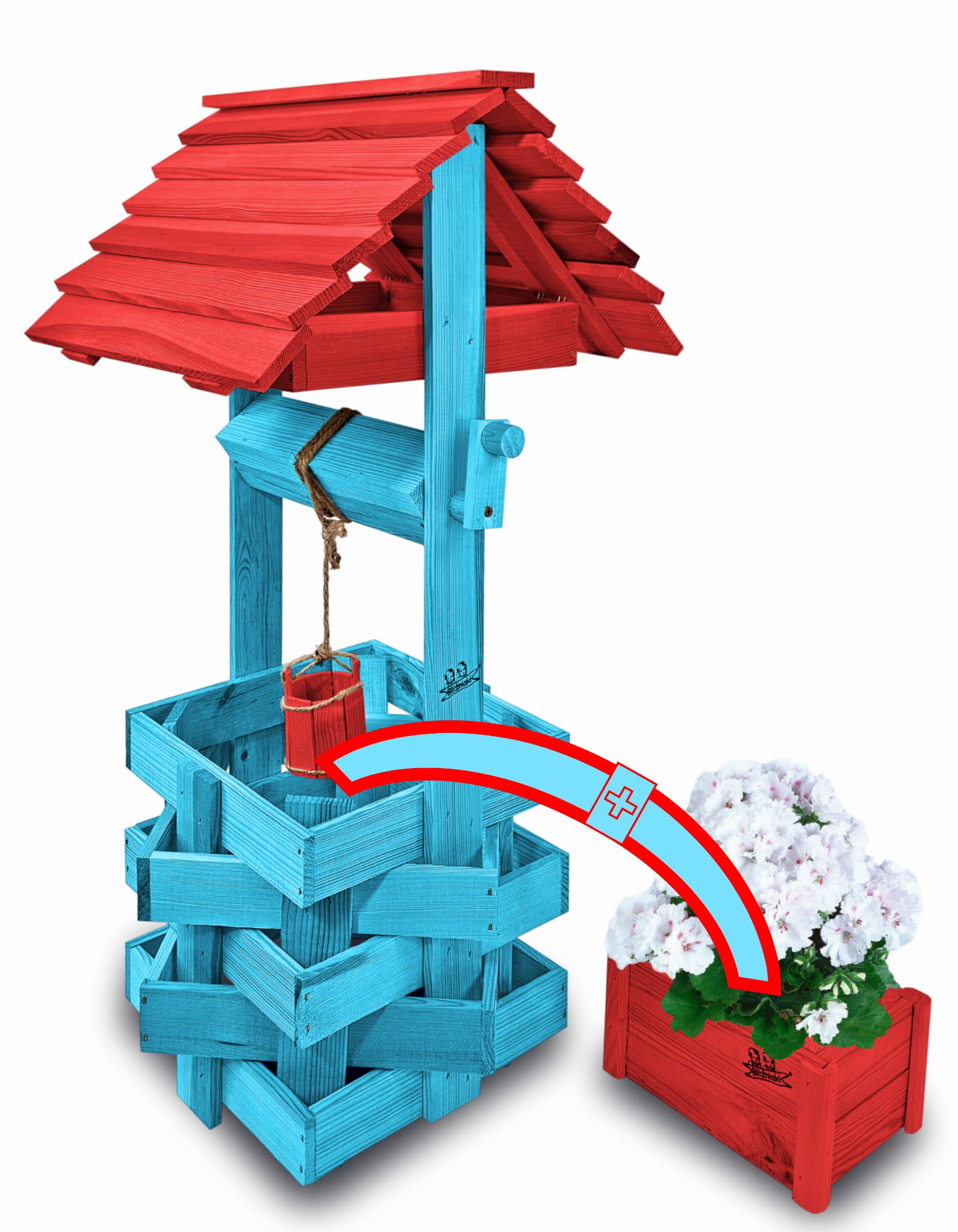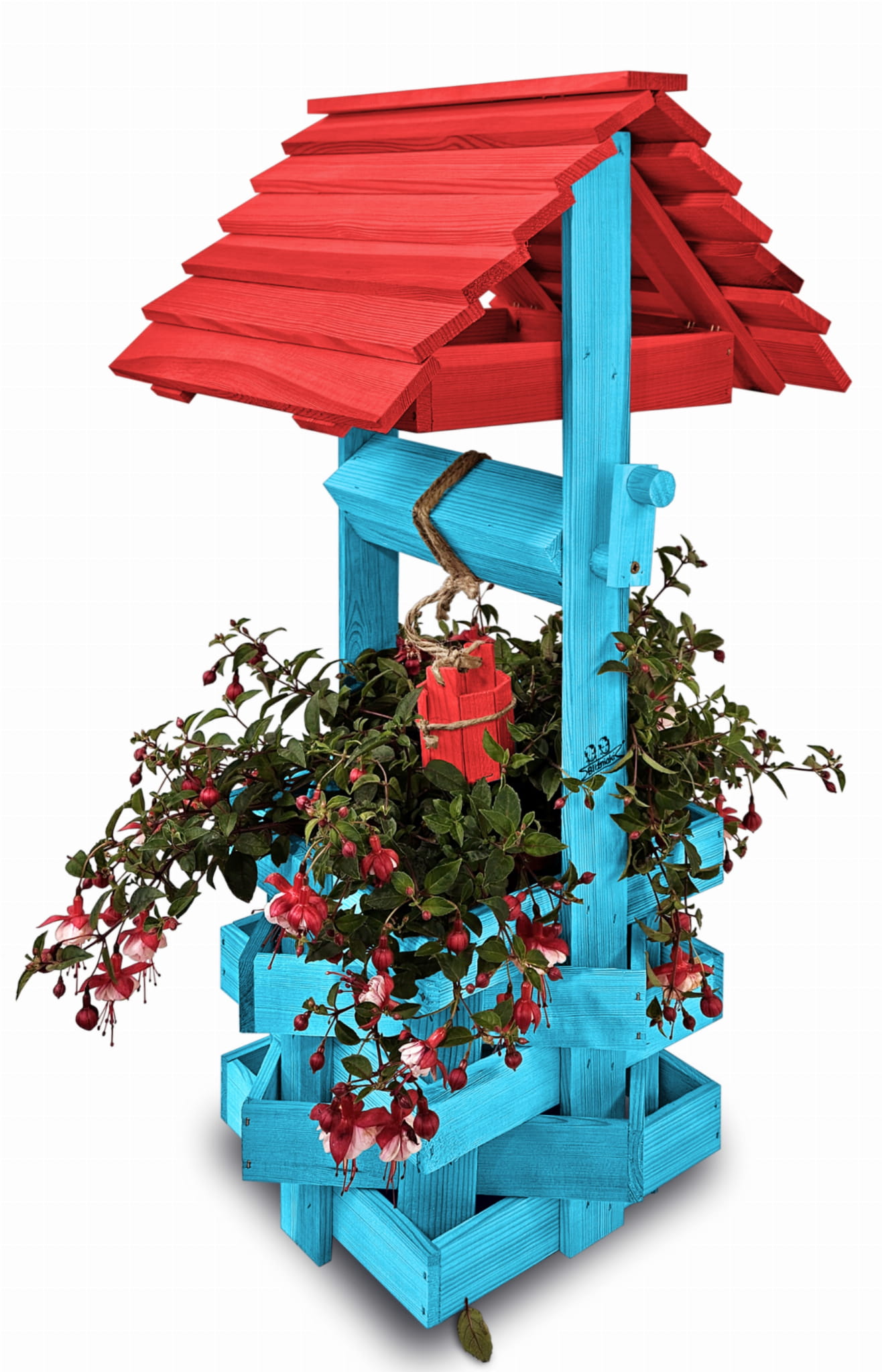 Studzienka na pelargonie Doniczki ozdobne Studnie balkonowe tarasowe Ozdoba wnętrz i ogrodu Rękodzieło Donica na kwiaty i pnącza do ogrodu Kwietnik Kolor BŁĘKITNY CZERWONY Wsad na kwiaty Studnia duża ozdobna SC1 NBP CB