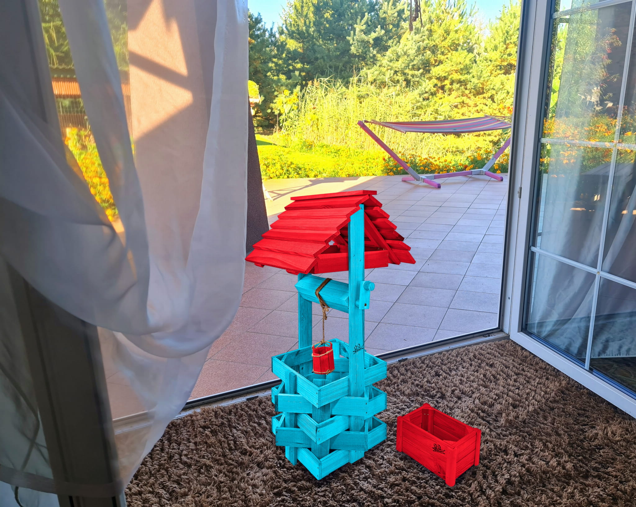 - Studnia została wzbogacona o drewnianą donicę, w której można dodatkowo storzyć miniogródek