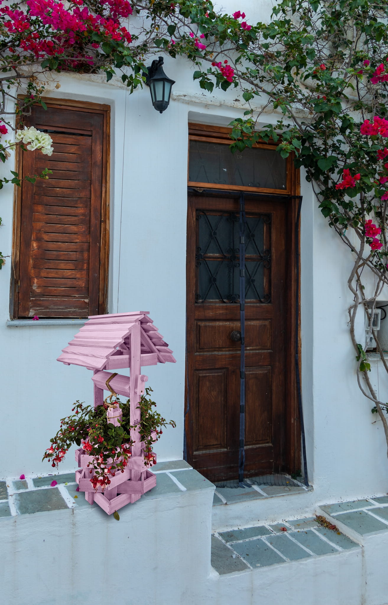 Nasza stylowa studnia wraz z donicą stanowi idealną bazę do stworzenia wyjątkowych kompozycji kwiatowych.