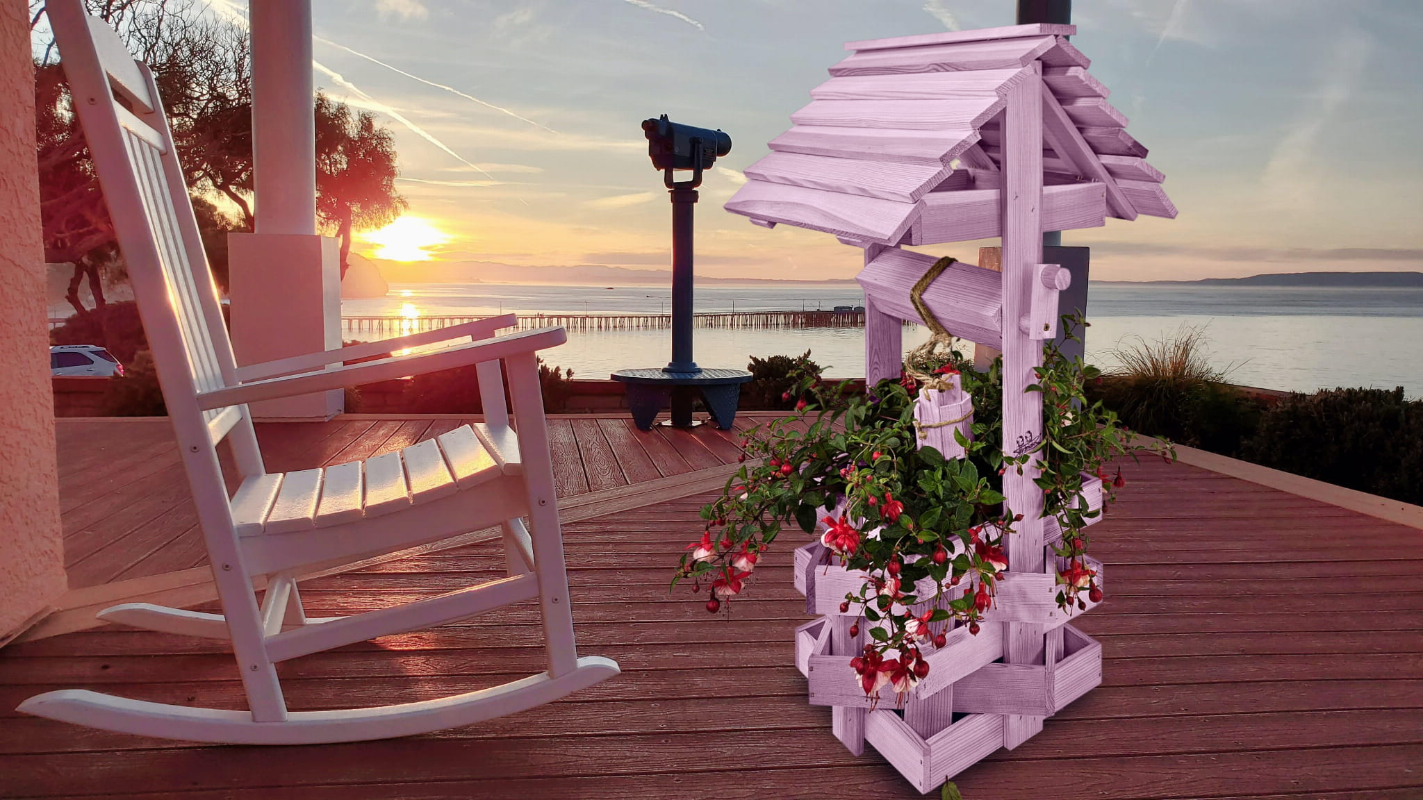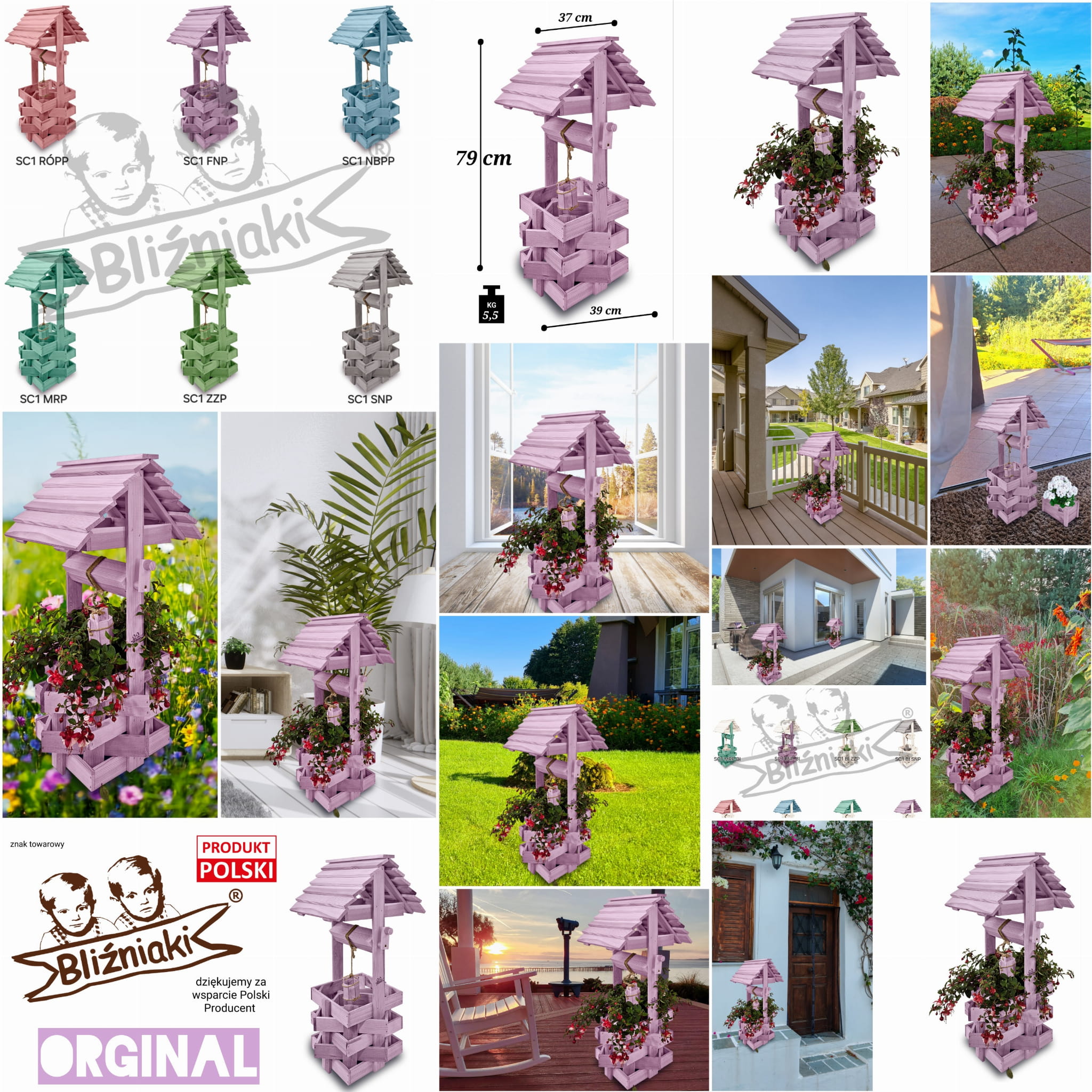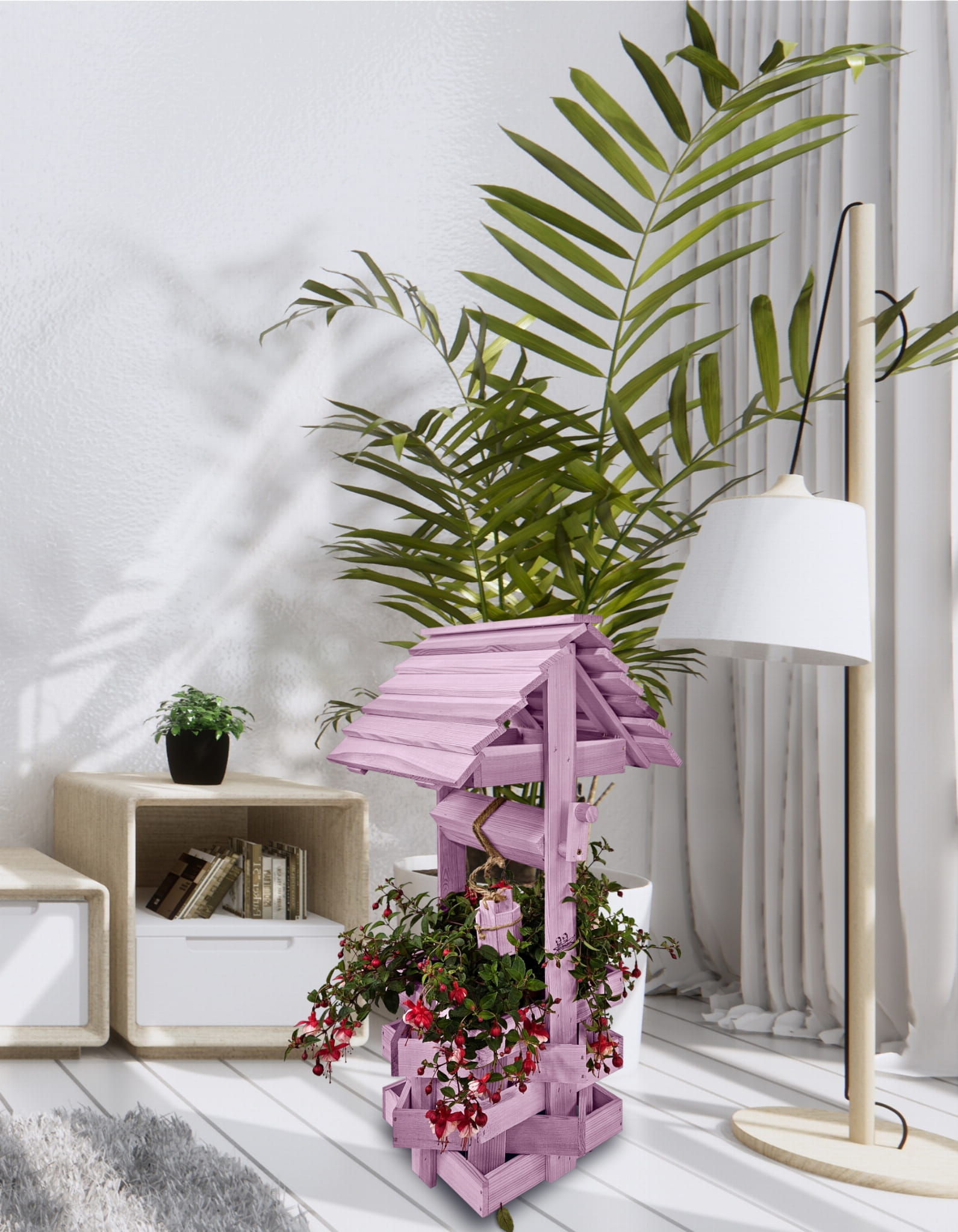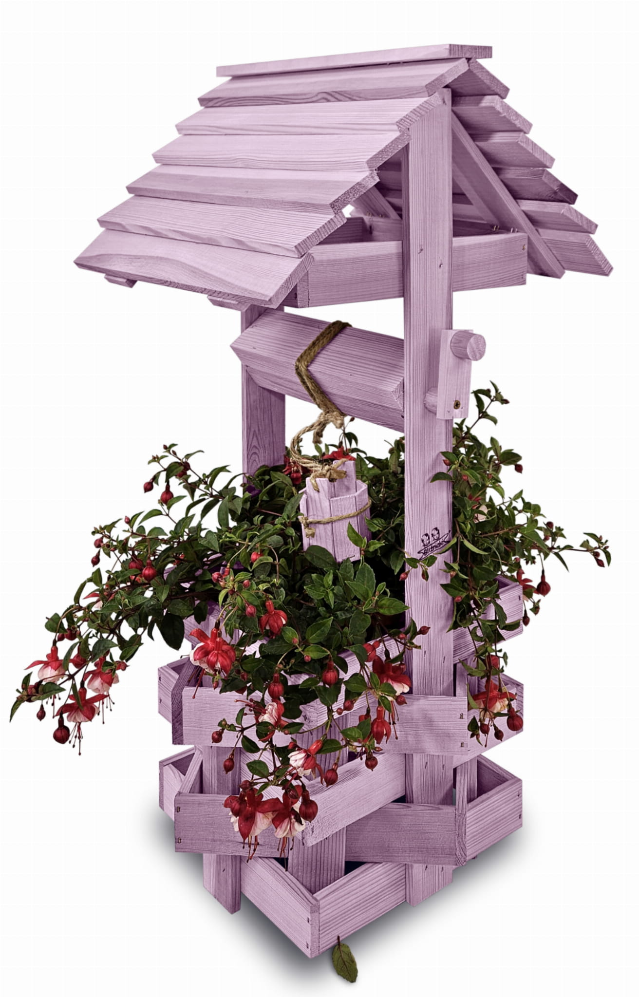 Studzienka na peralgonie Studnia Drewniana Ozdobna ogrodowa Kolor PASTELOWY FIOLETOWY Studnie Balkonowe Tarasowe OZDOBA WNĘTRZ I OGRODU RENKODZIEŁO Figura Ogrodowa Donica na kwiaty do Domu i Ogrodu Kwietnik doniczki Prezent Studzienki ozdobne SC1 FNP