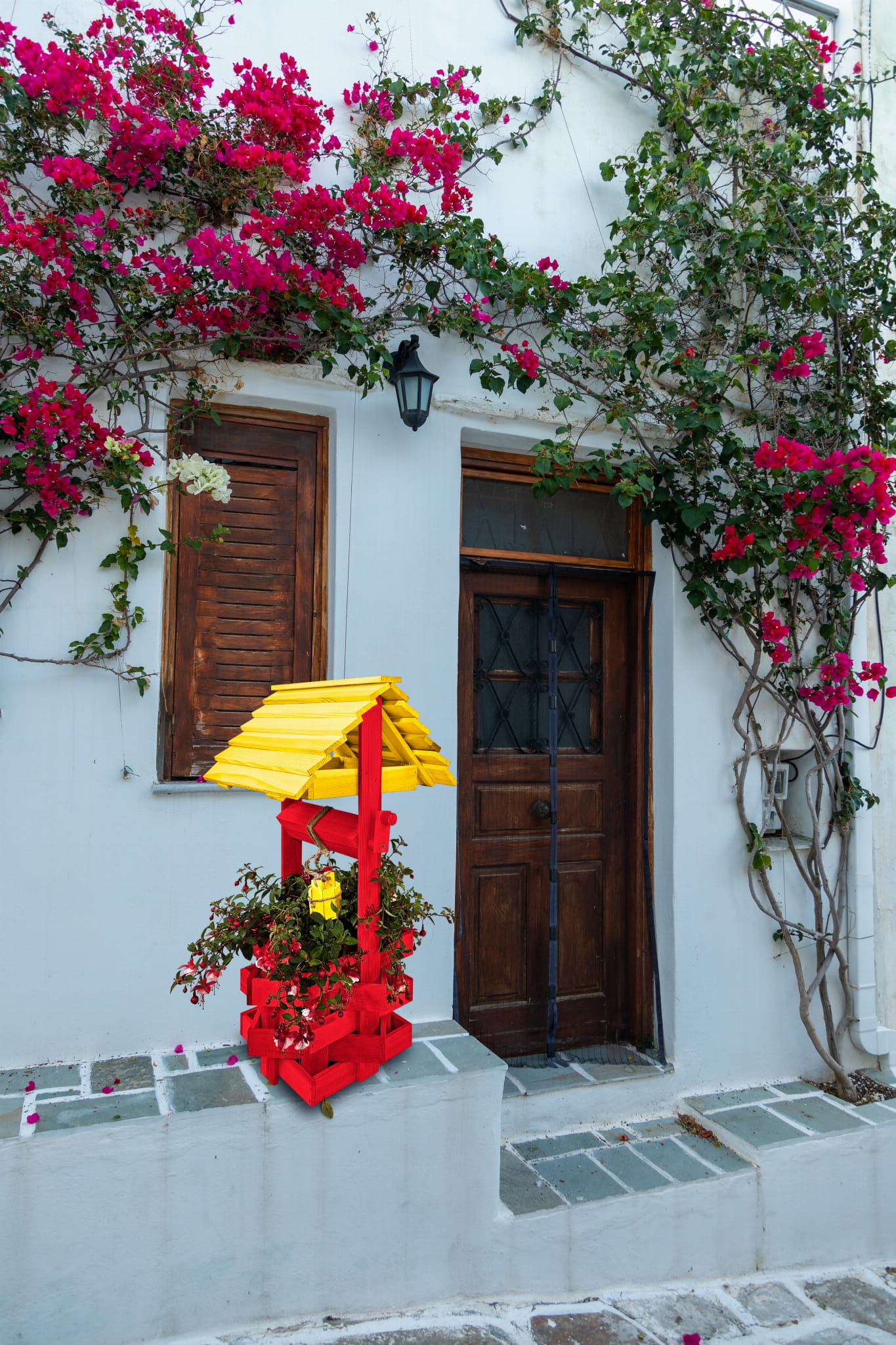 Nasza stylowa studnia wraz z donicą stanowi idealną bazę do stworzenia wyjątkowych kompozycji kwiatowych.