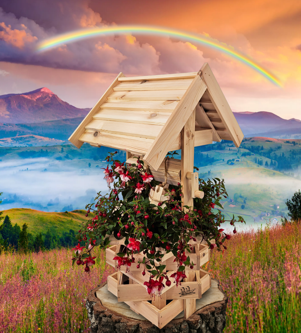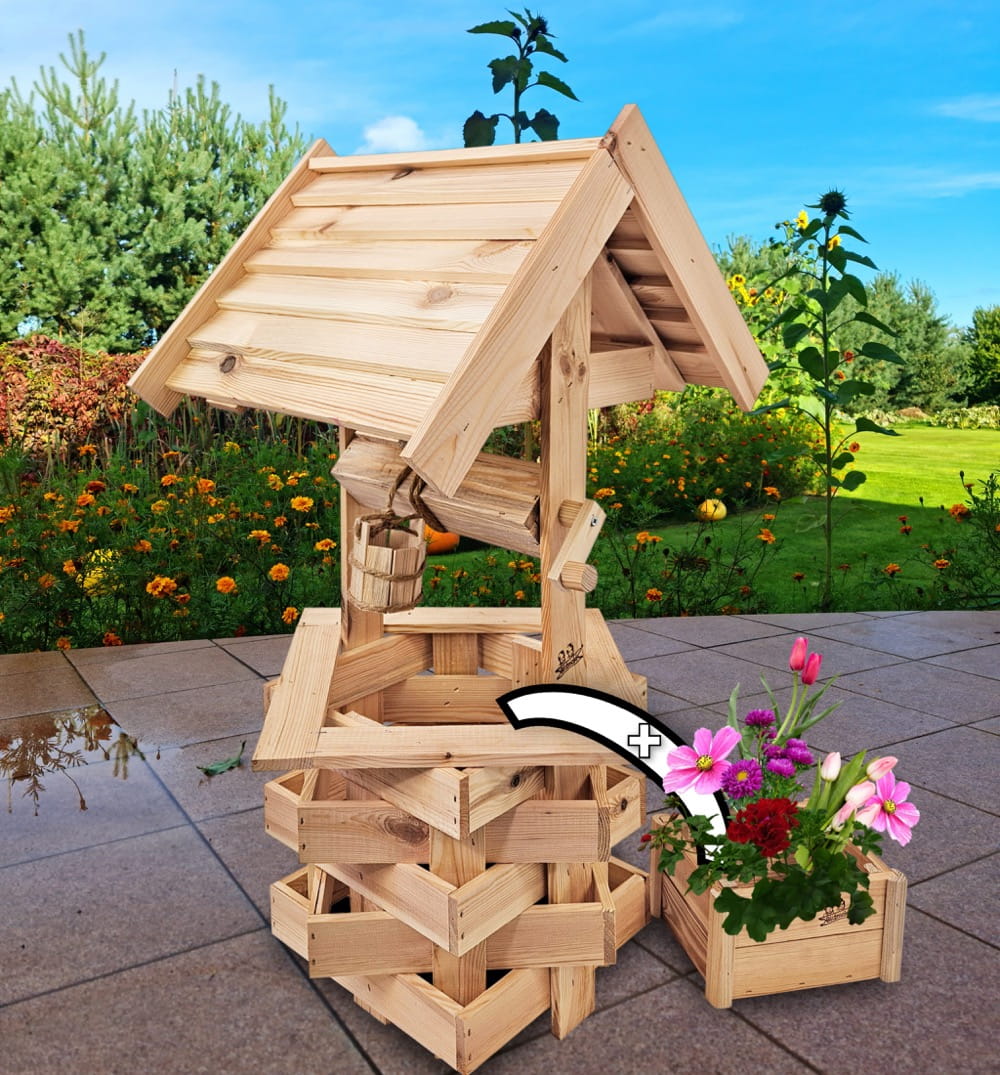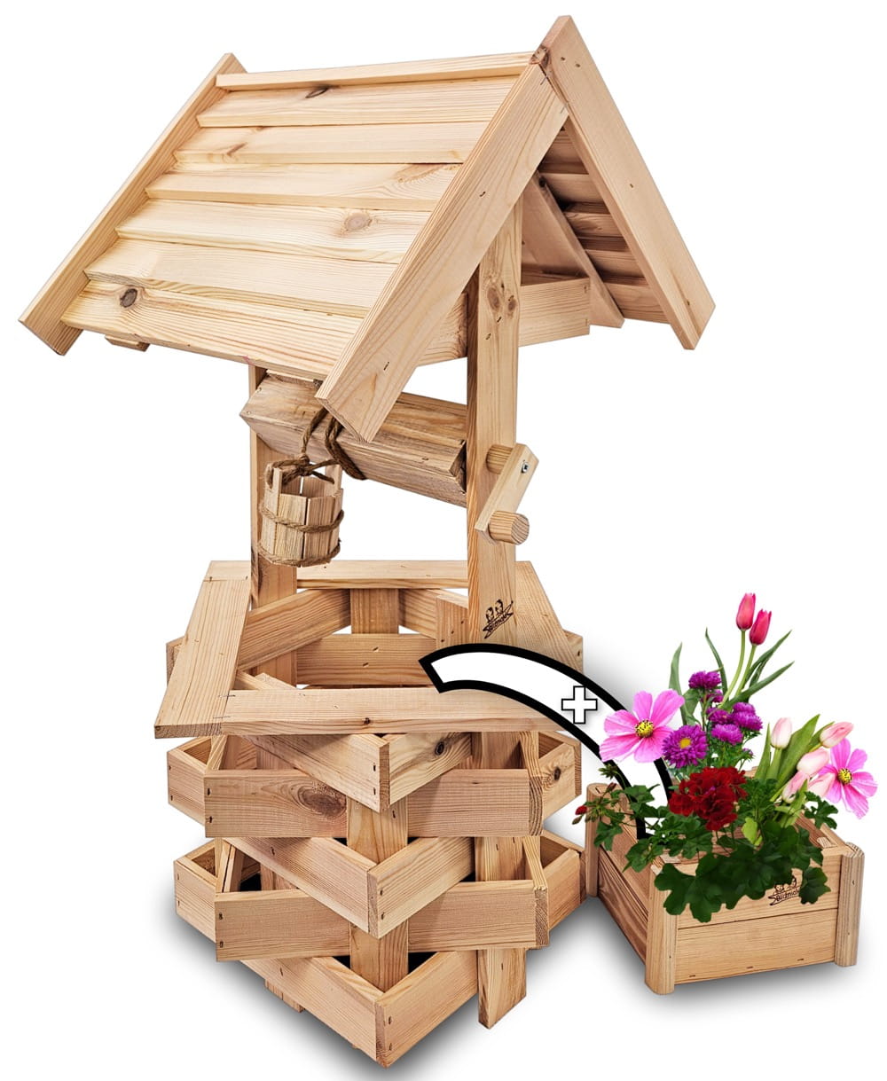 - Studnia została wzbogacona o drewnianą donicę, w której można dodatkowo stworzyć miniogródek