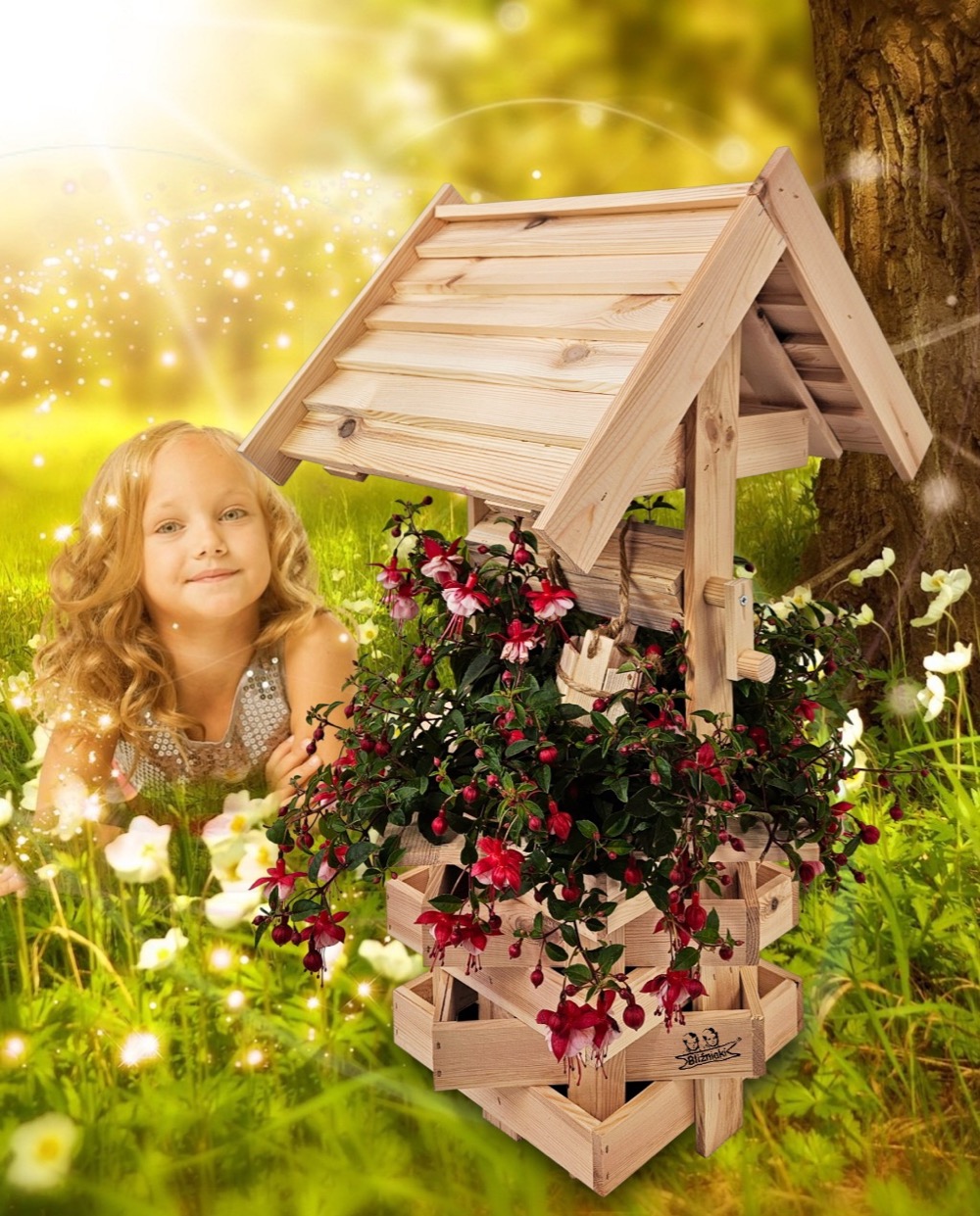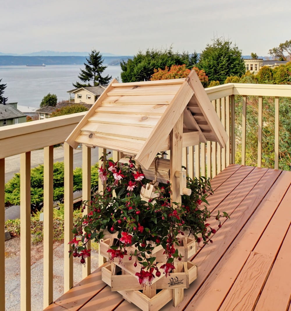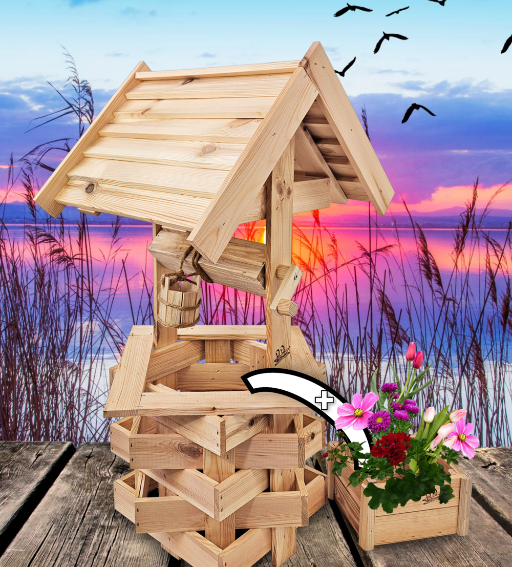 - Studnia została wzbogacona o drewnianą donicę, w której można dodatkowo stworzyć miniogródek
