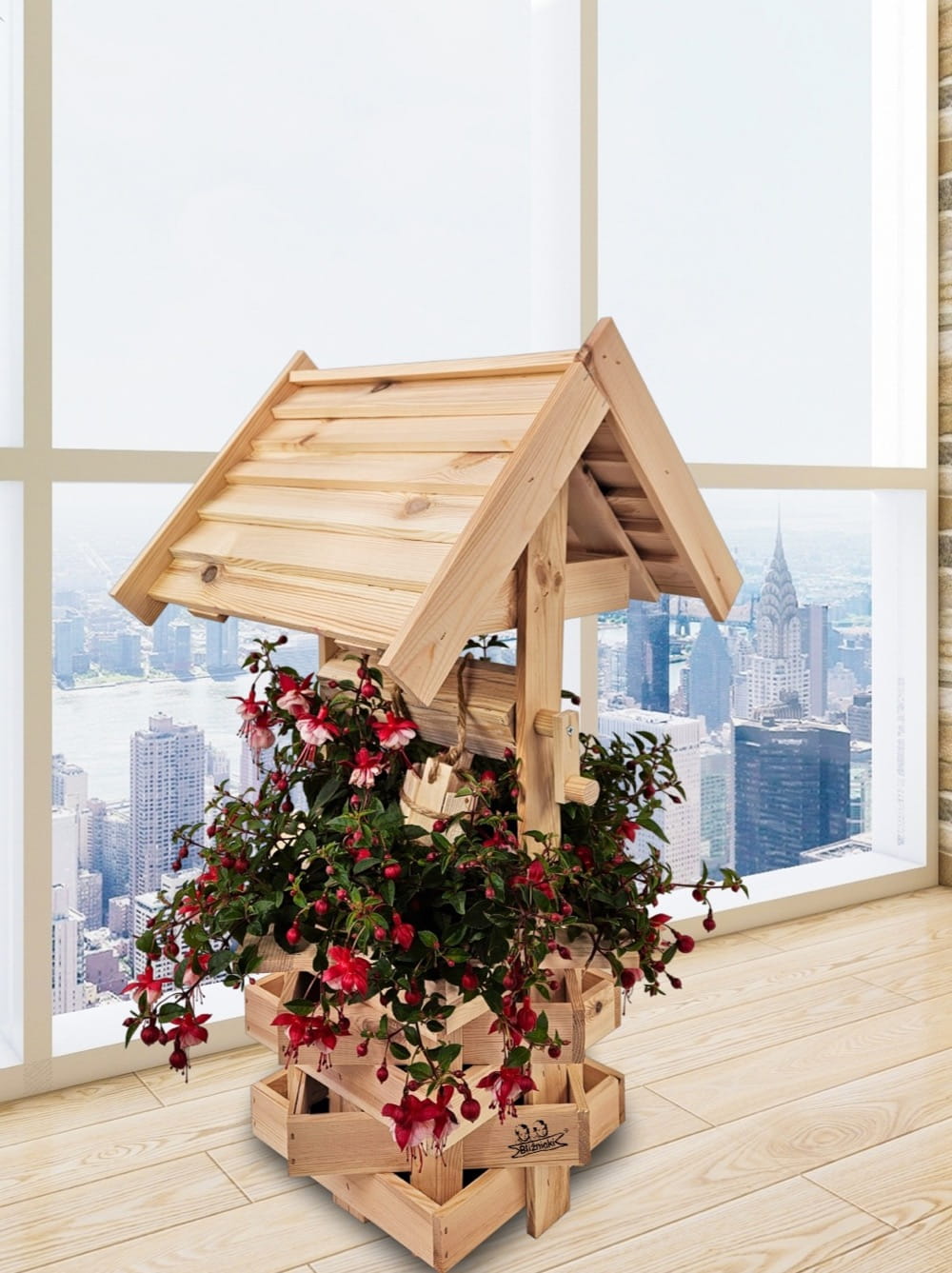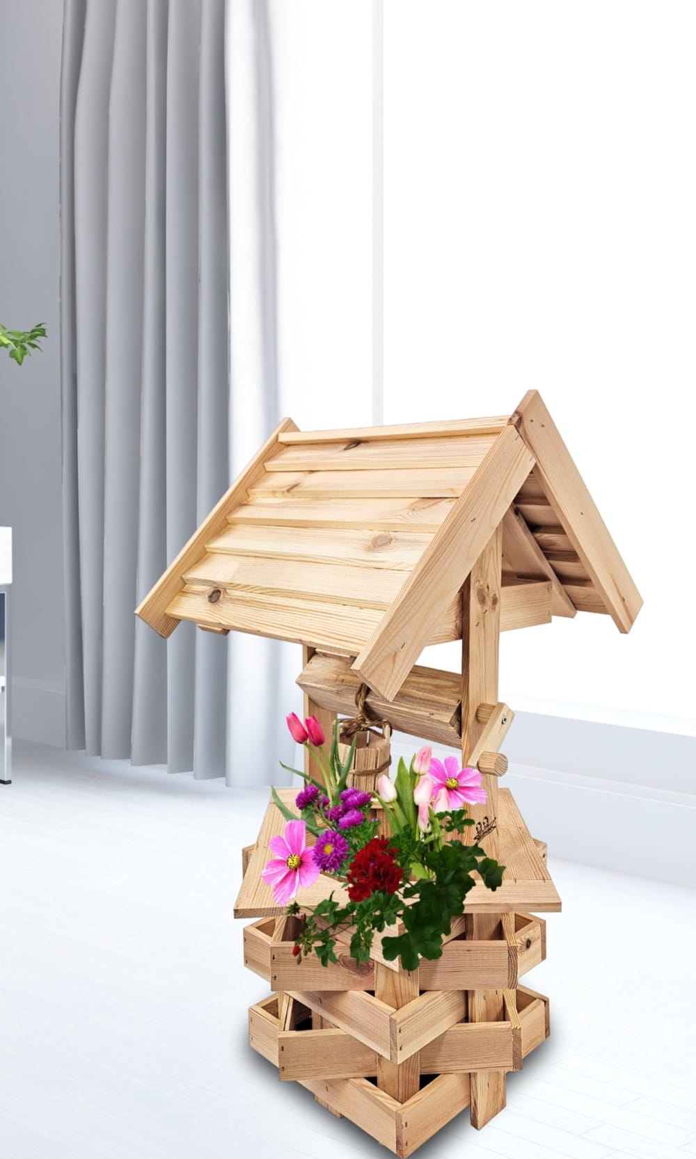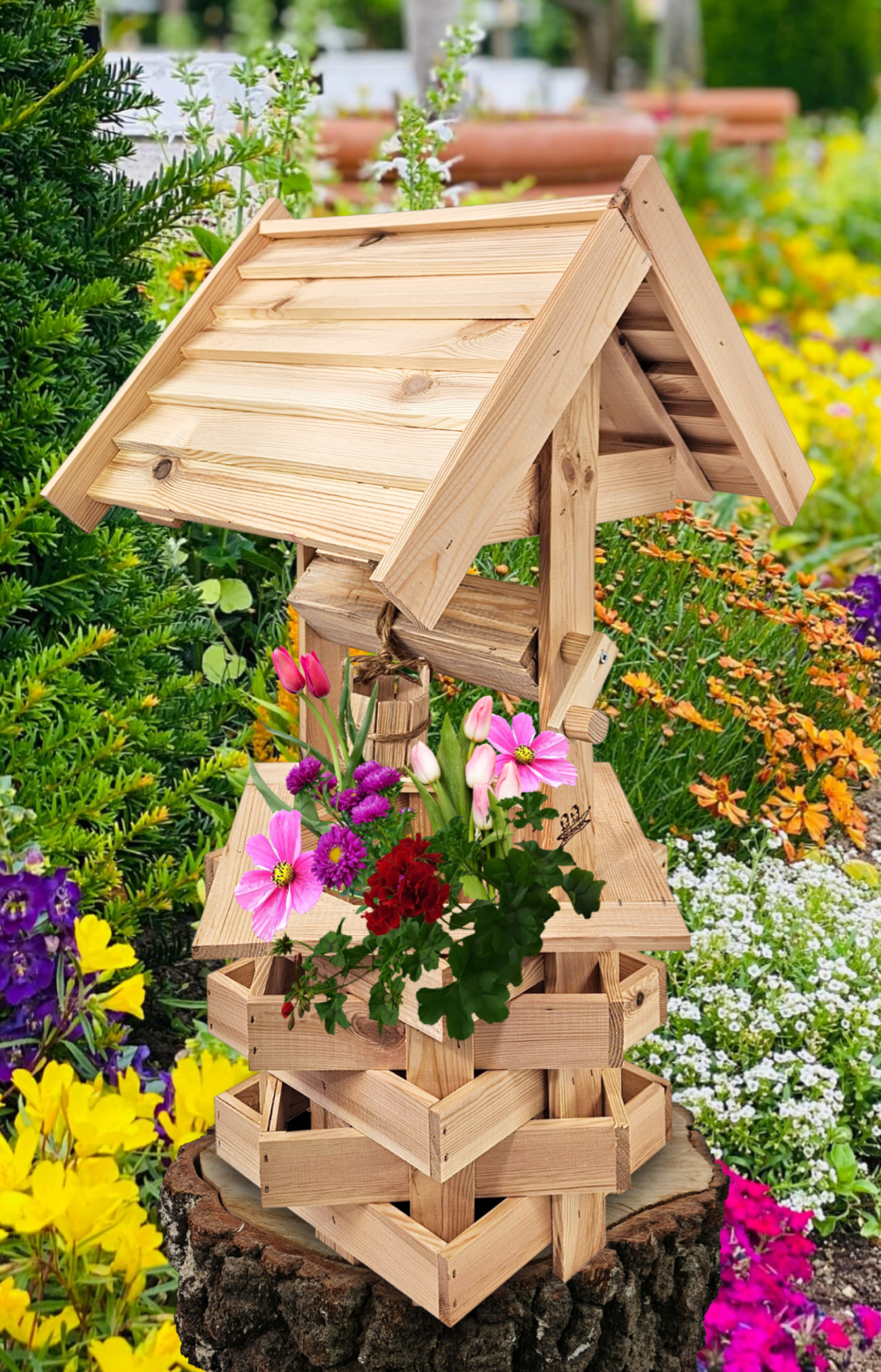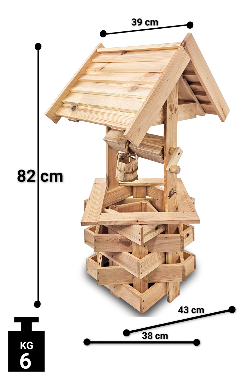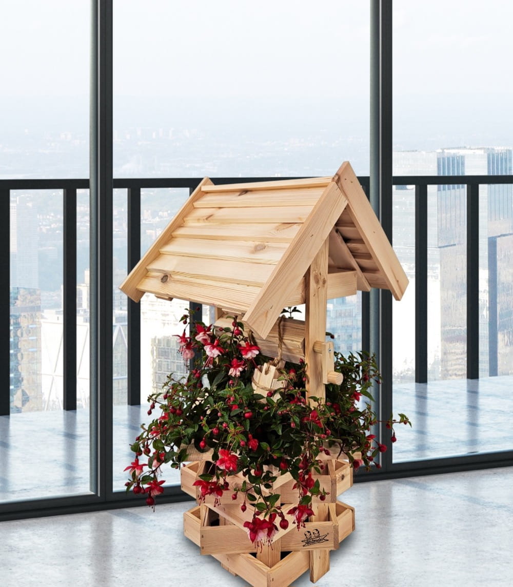 Studzienka średnia z drewna litego ekologia ozdoba do domu i ogrodu doniczka na kwiaty studnia drewniana SC4 NN