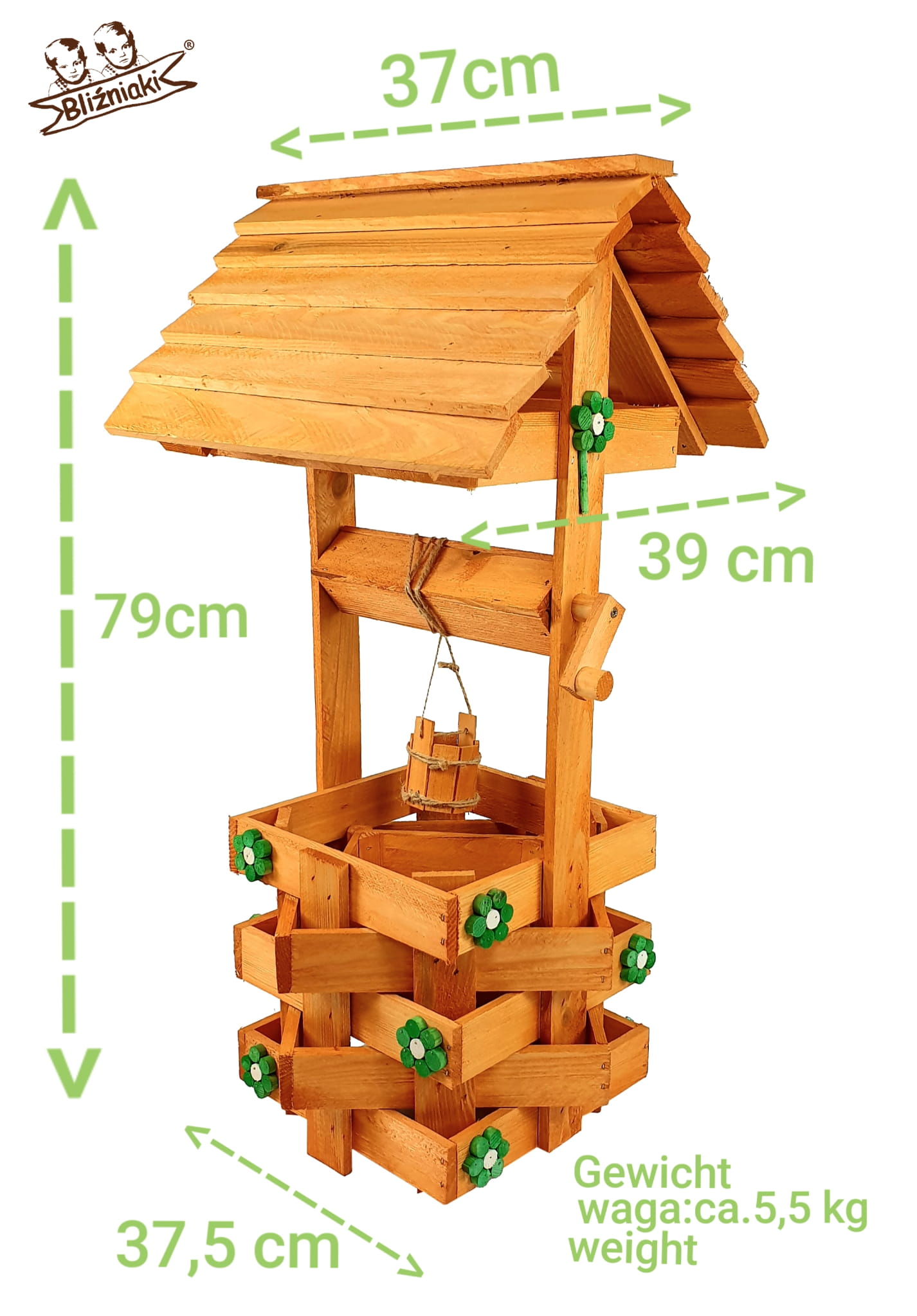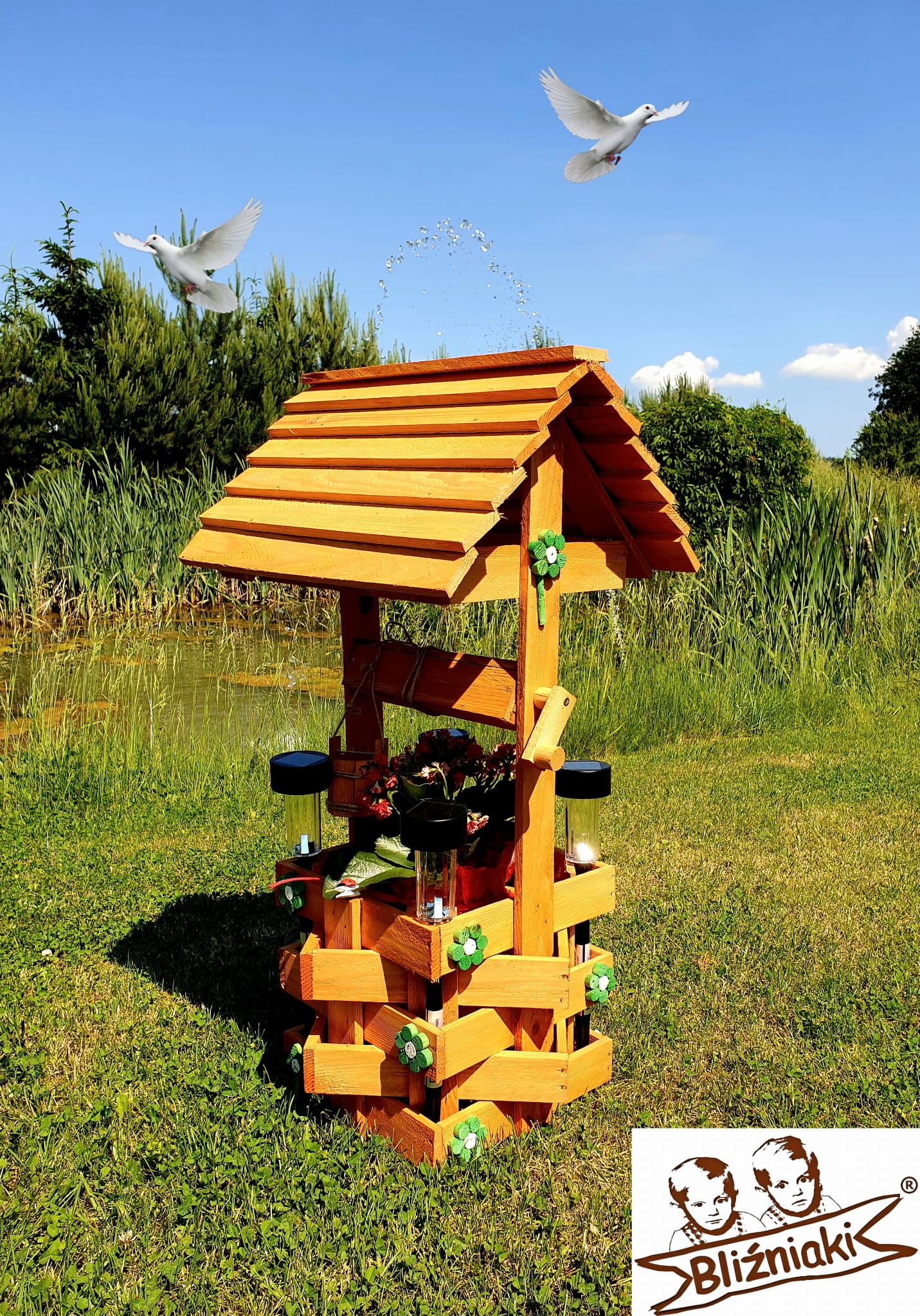 - Studnia została wzbogacona o drewnianą donicę, w której można dodatkowo storzyć miniogródek