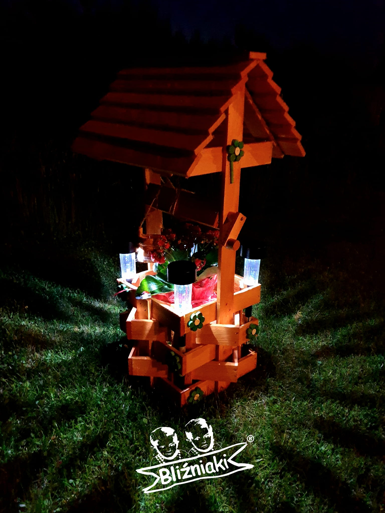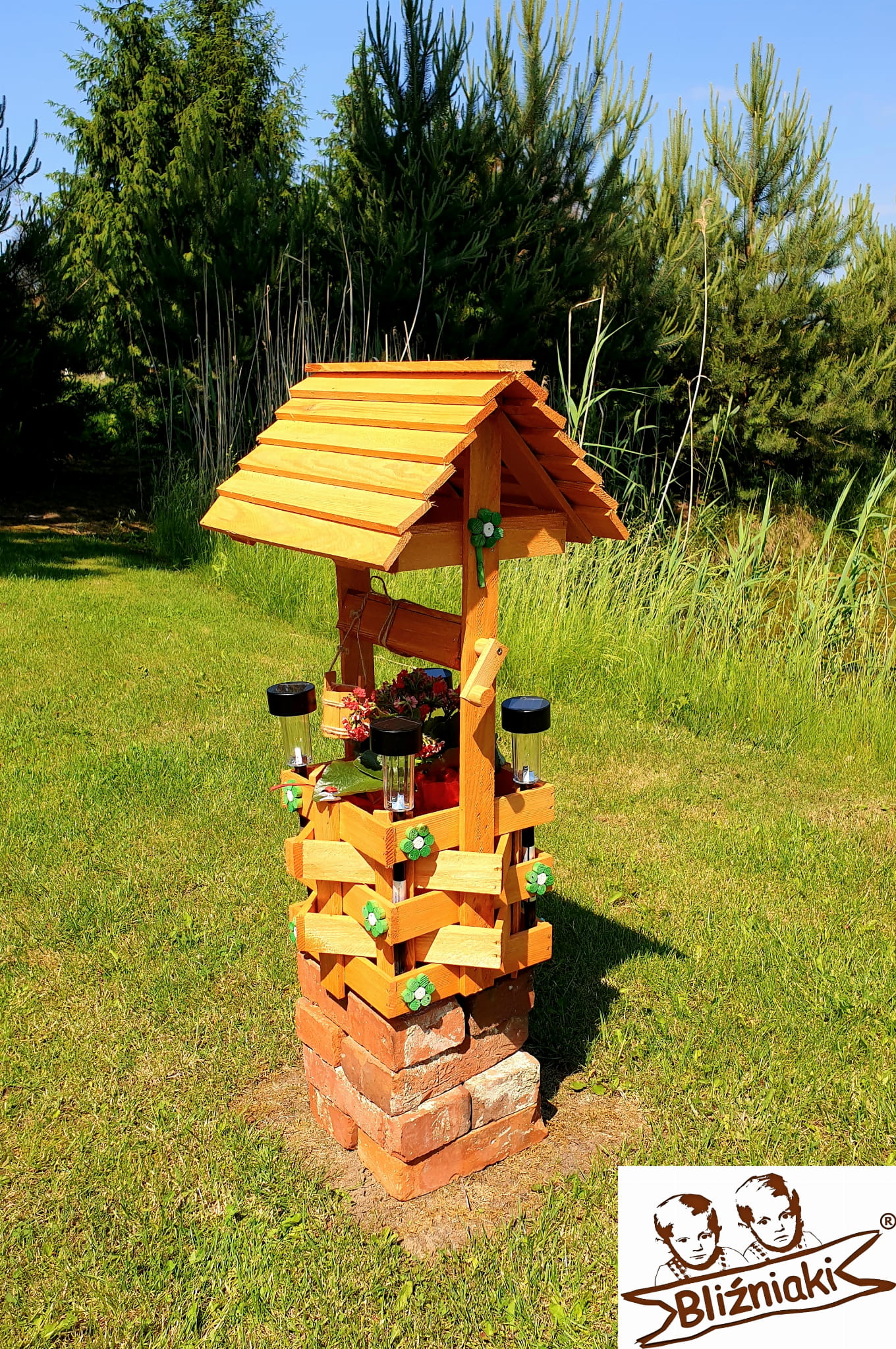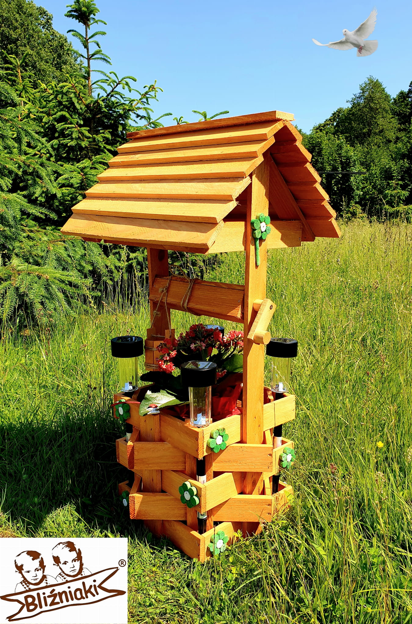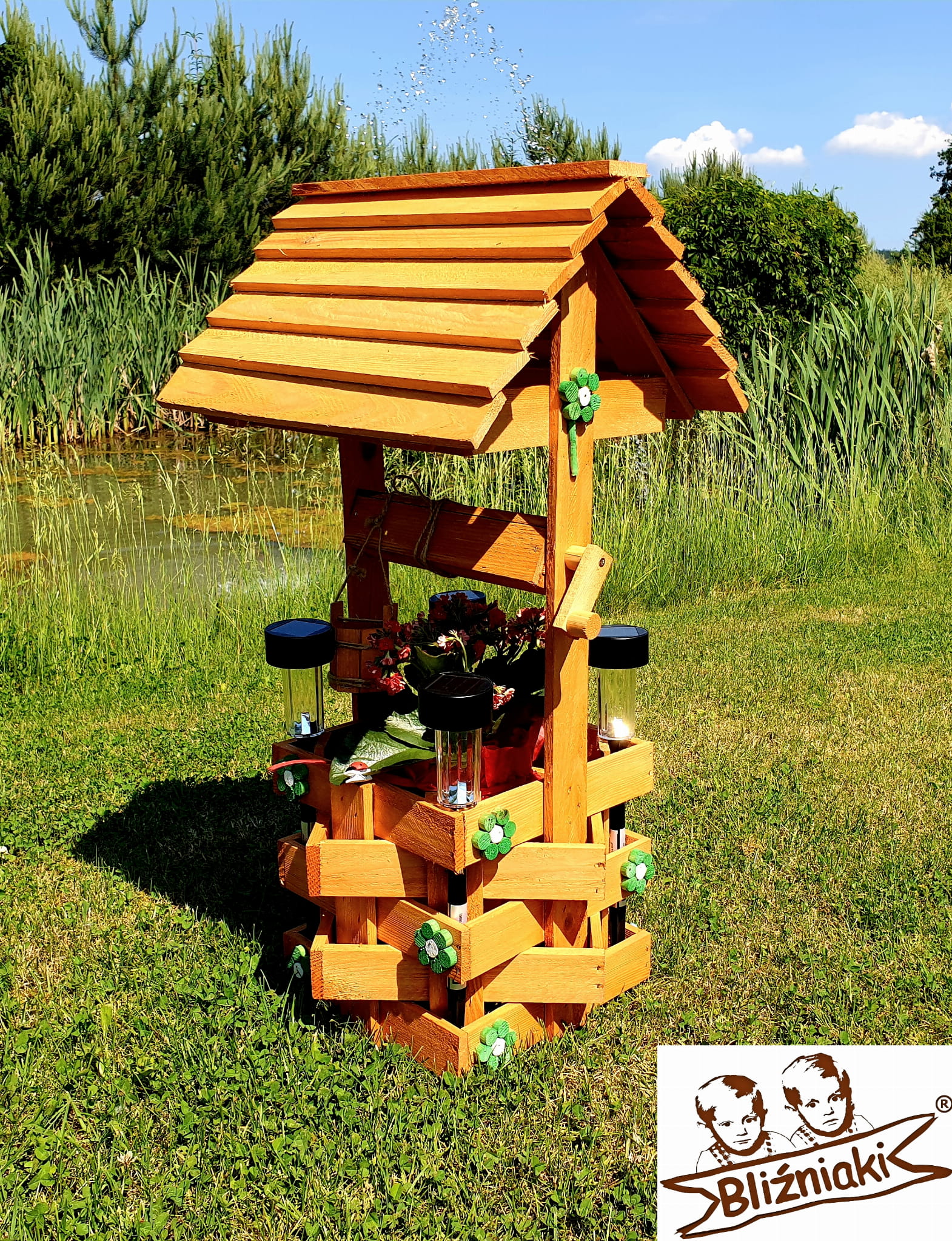 Nasza dekoracyjna studnia w kolorze OLCHOWYM wykonana z suszonego drewna sosnowego z lampami solarnymi to nie tylko piękny element dekoracyjny, ale również wyraz ekologicznego podejścia do projektowania ogrodów.