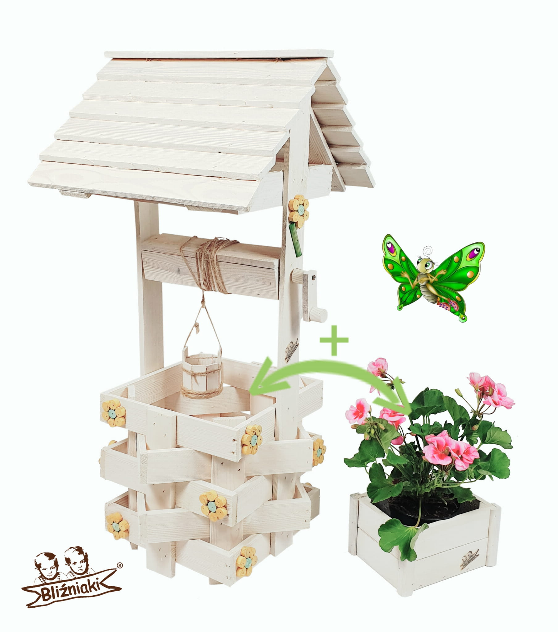 - Studnia została wzbogacona o drewnianą donicę, w której można dodatkowo storzyć miniogródek