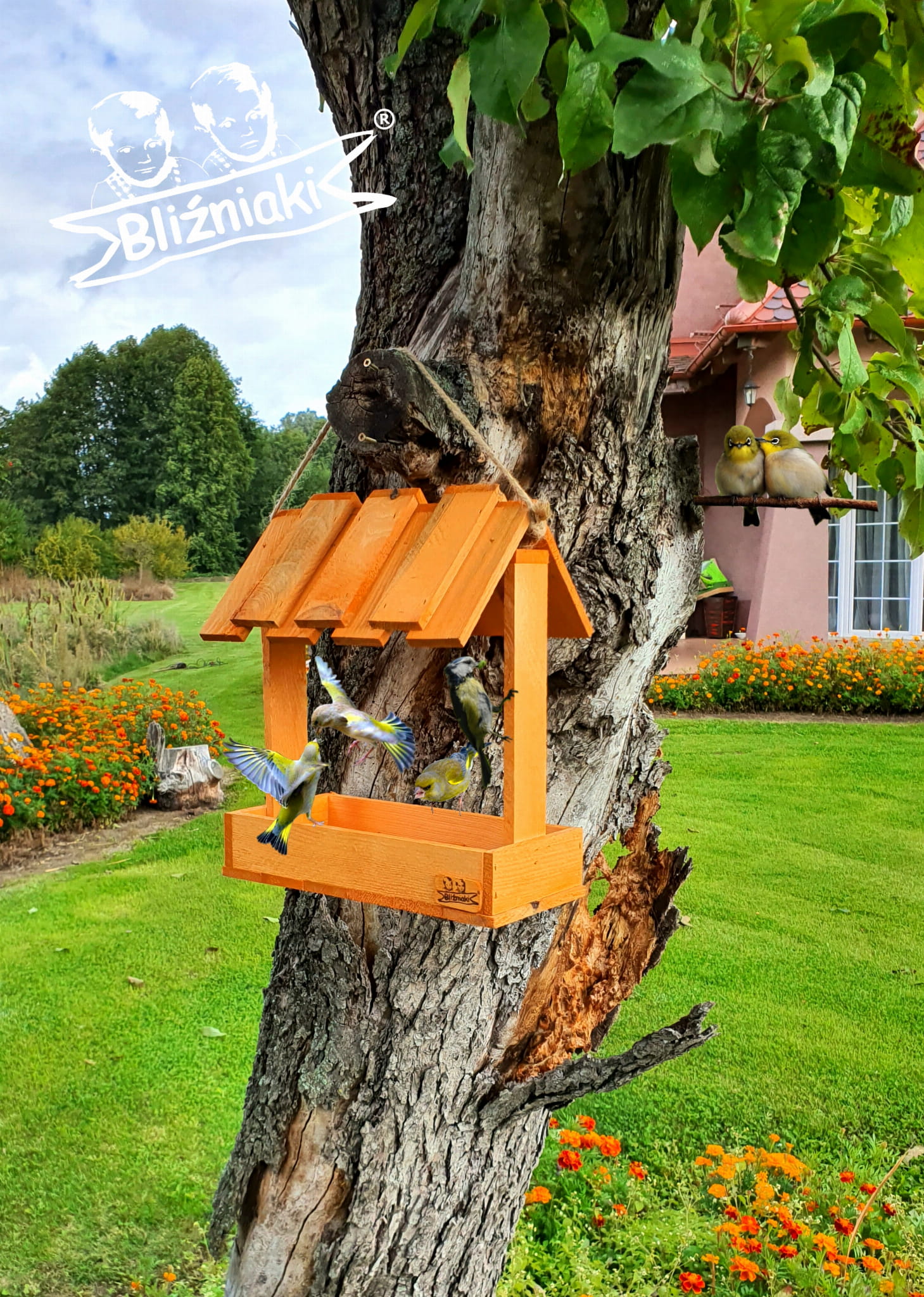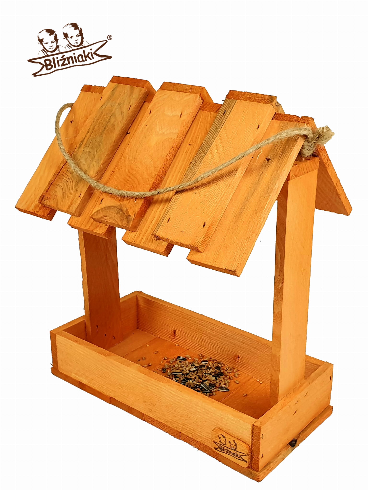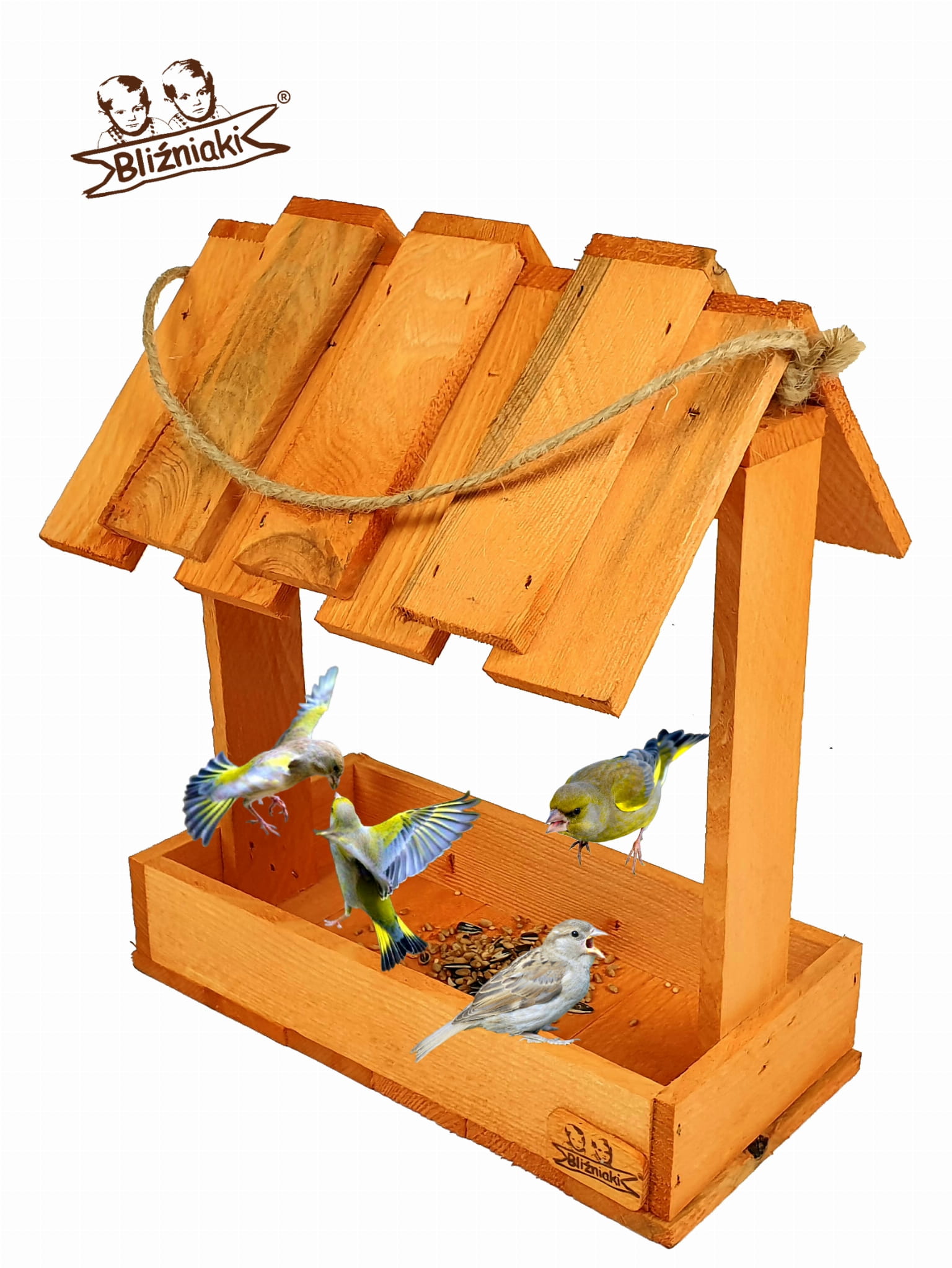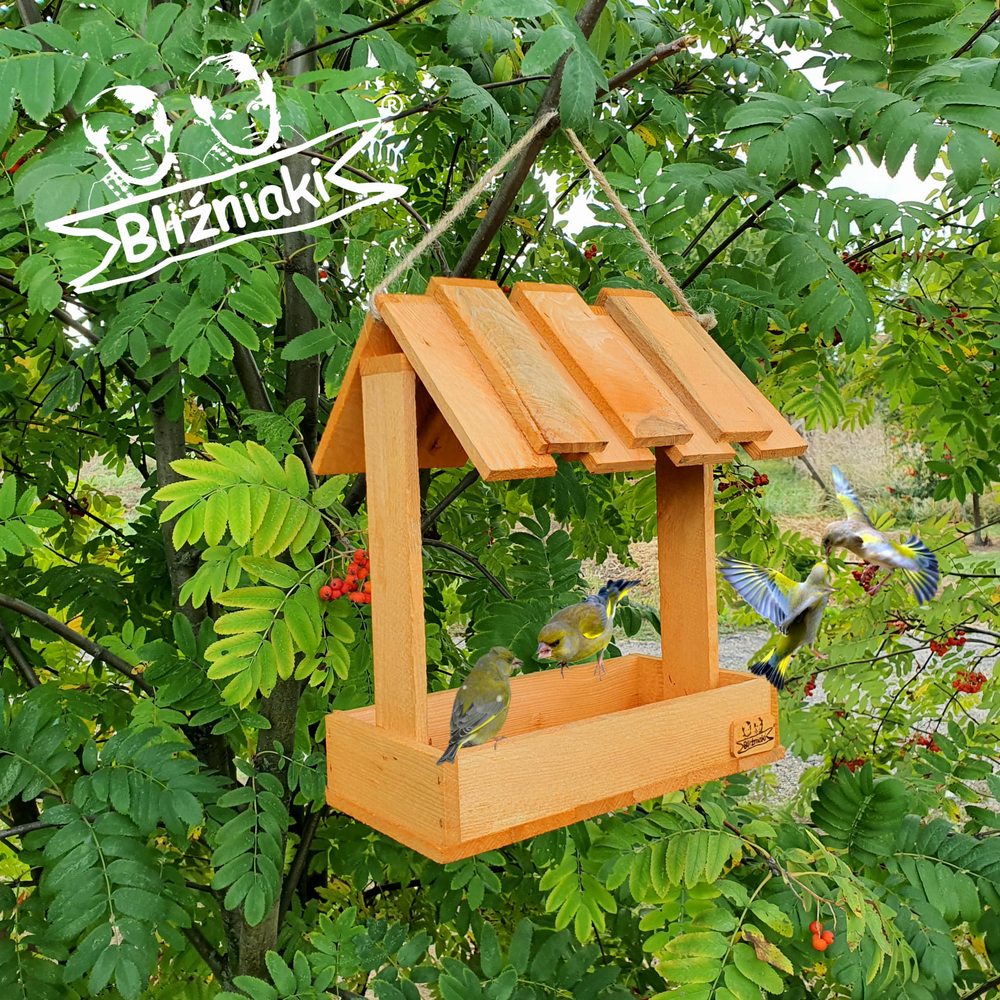 DREWNIANY KARMNIK 2w1 - STOJĄCY LUB WISZĄCY DOMEK DLA PTAKÓW