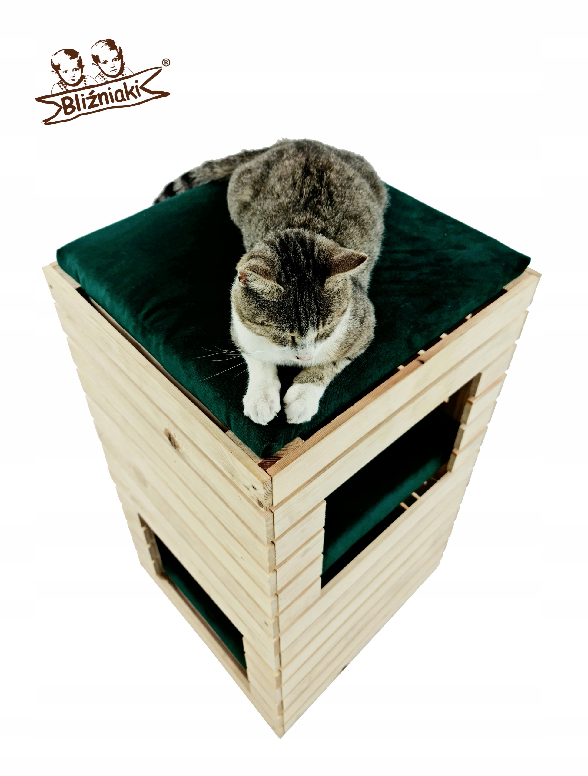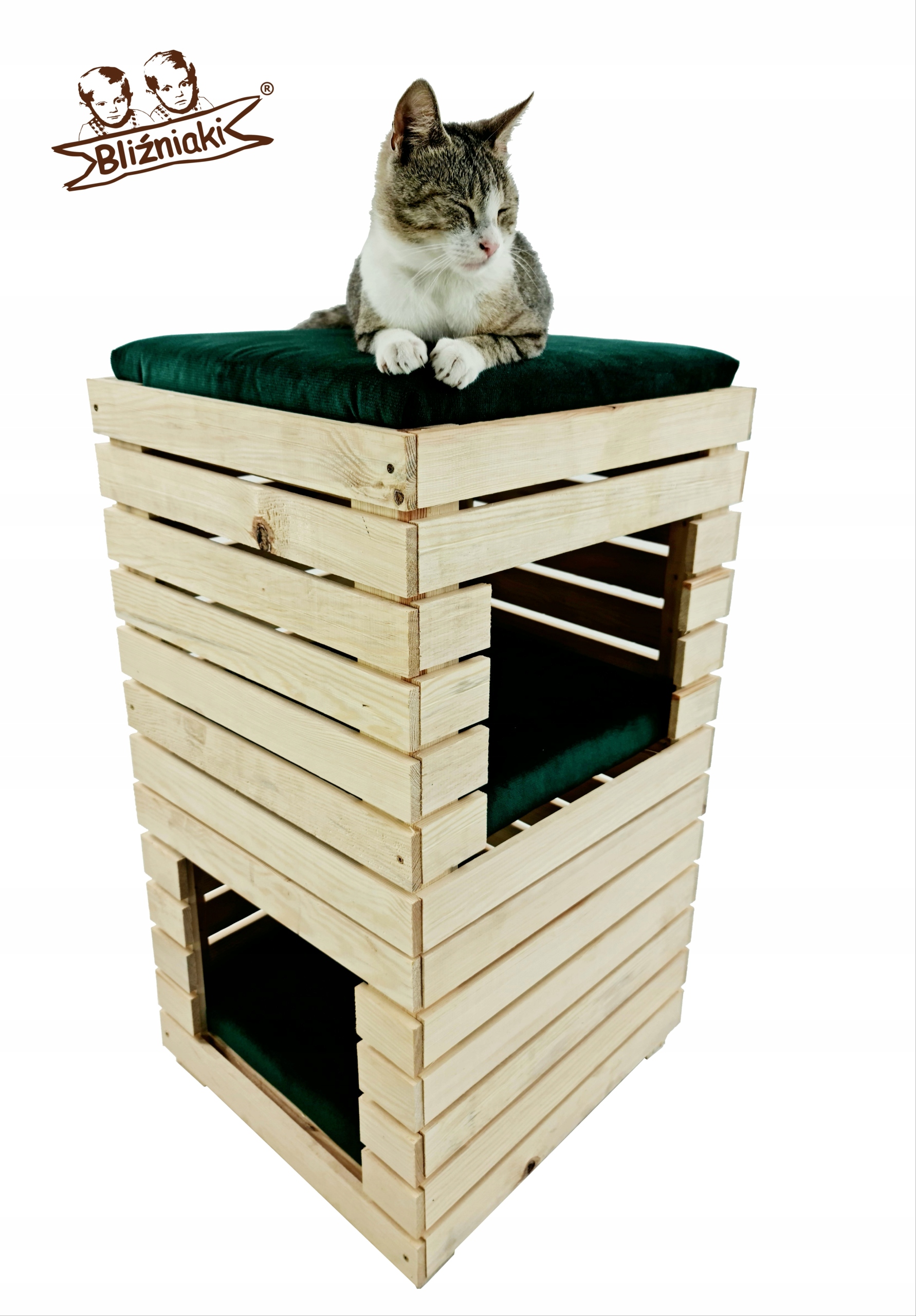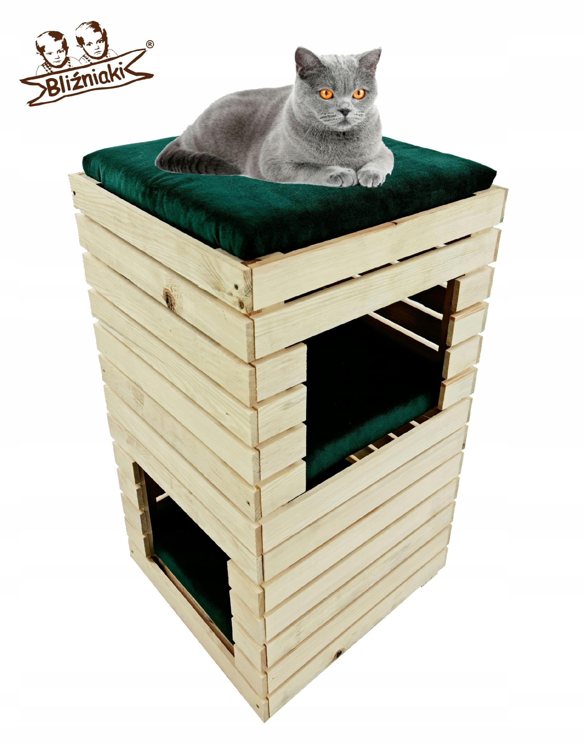 DREWNIANY DOMEK DLA KOTA Z TRZEMA LEGOWISKAMI
