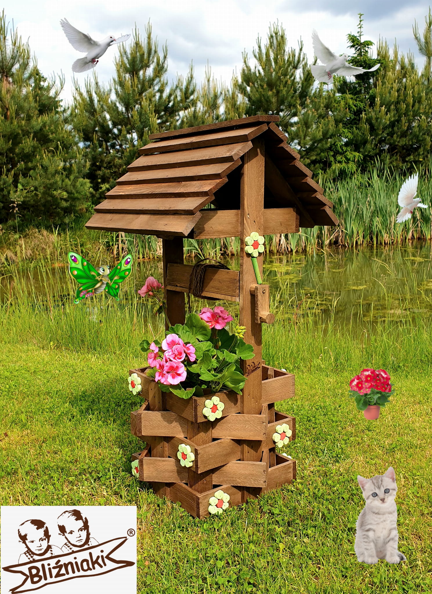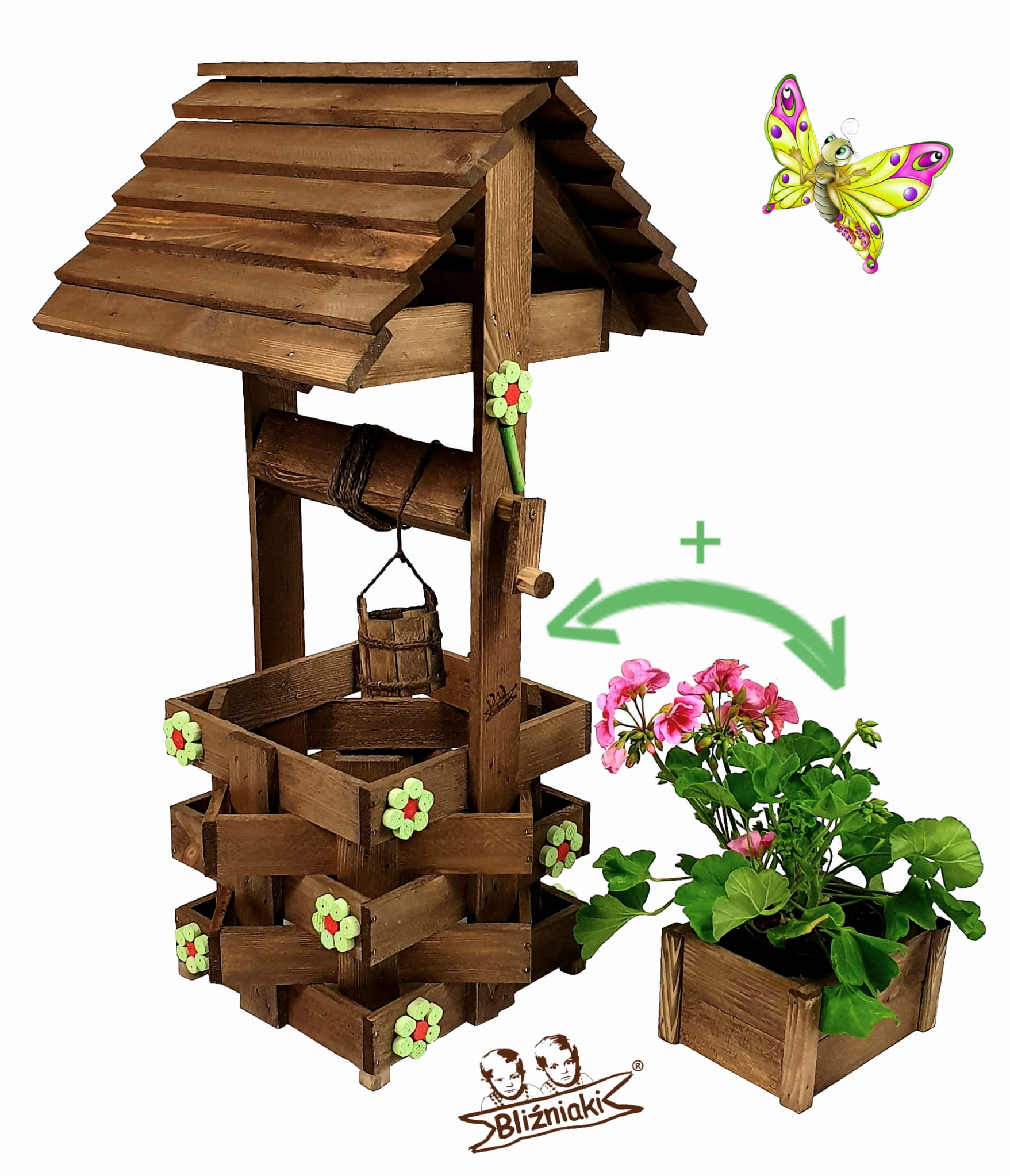 PRZEDMIOTEM OFERTY JEST DEKORACYJNA STUDNIA OGRODOWA W ZESTAWIE Z DONICZKĄ NA ROŚLINY