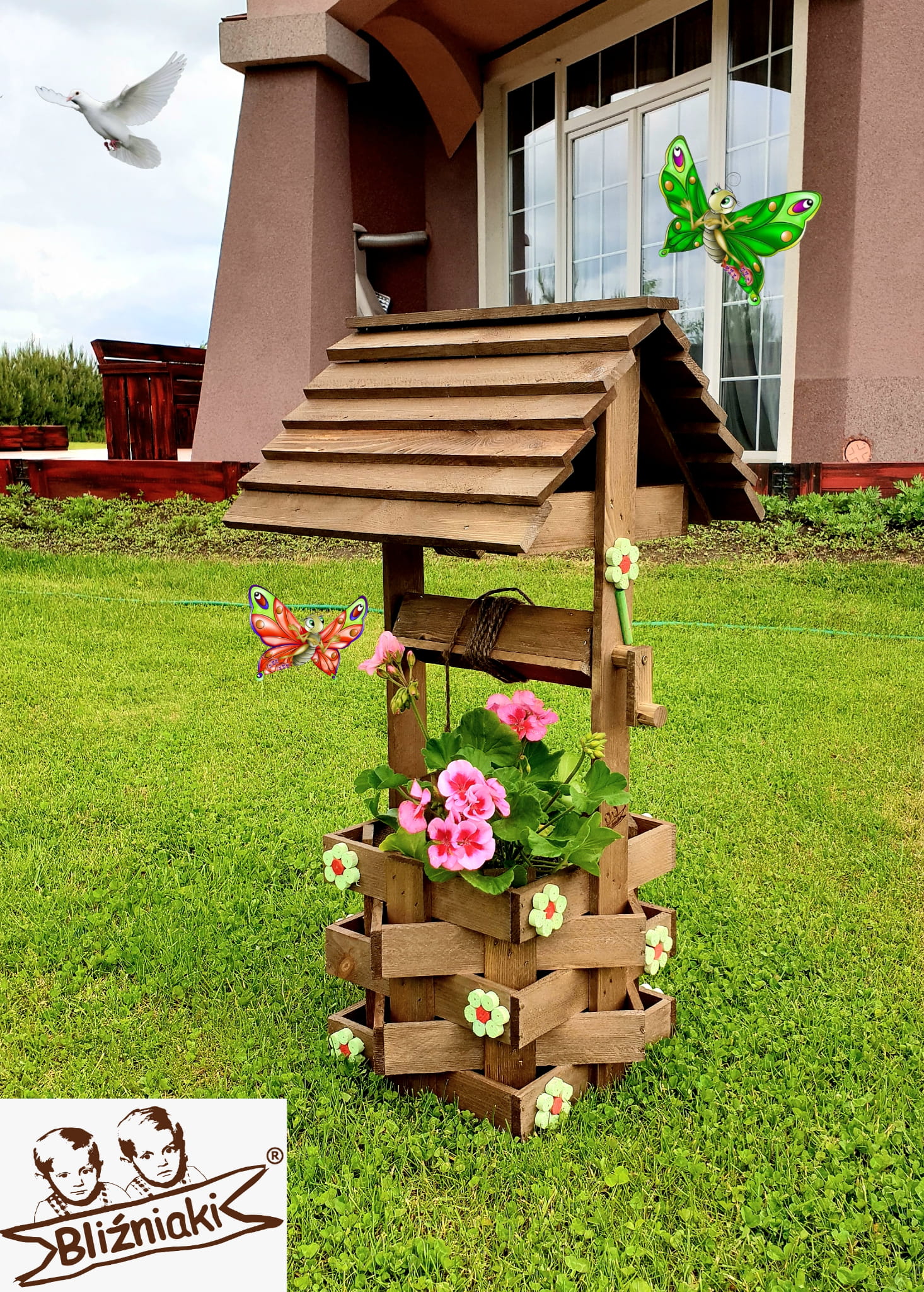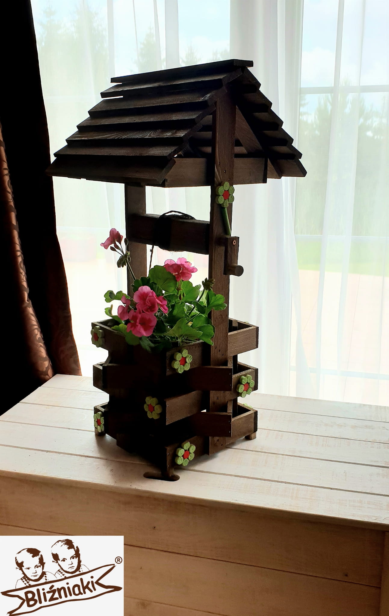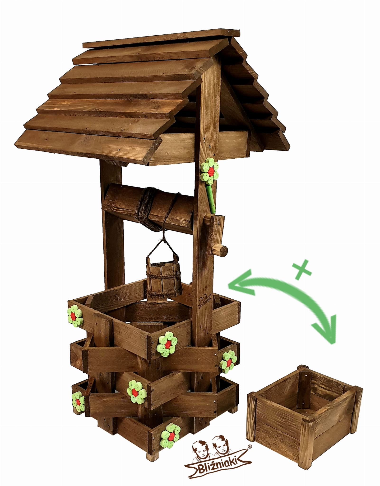 - Studnia została wzbogacona o drewnianą donicę, w której można dodatkowo storzyć miniogródek