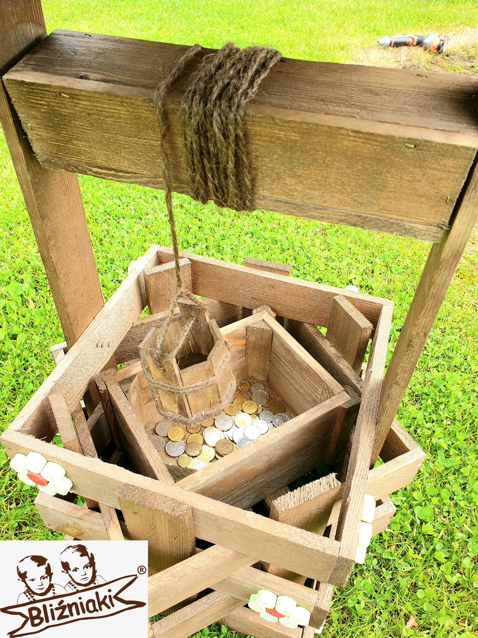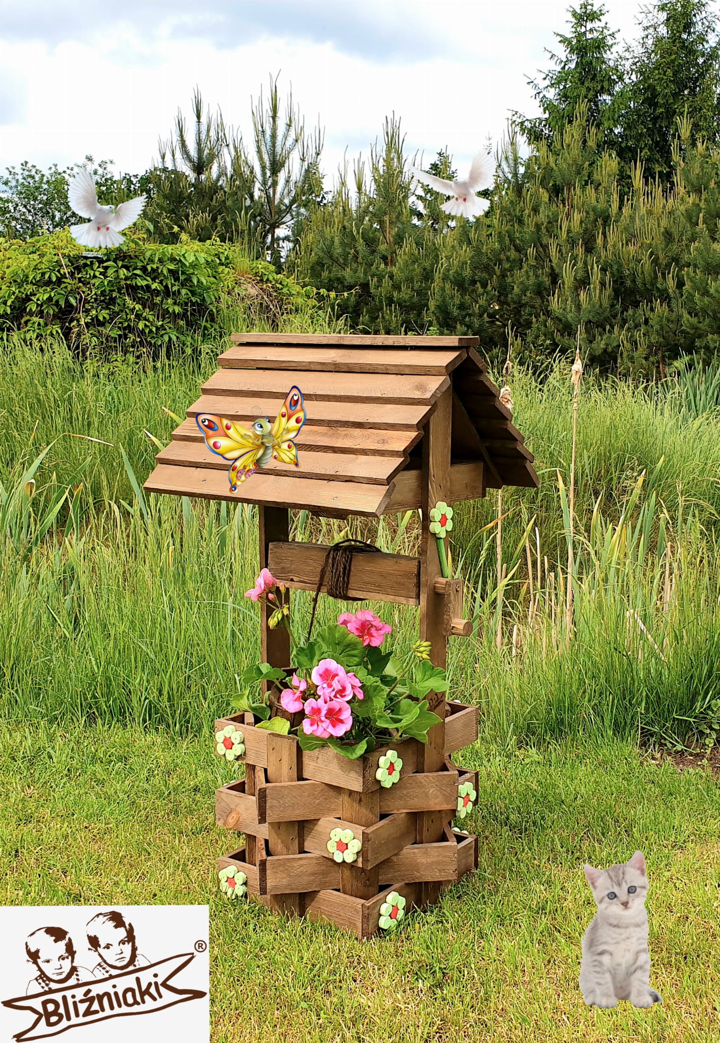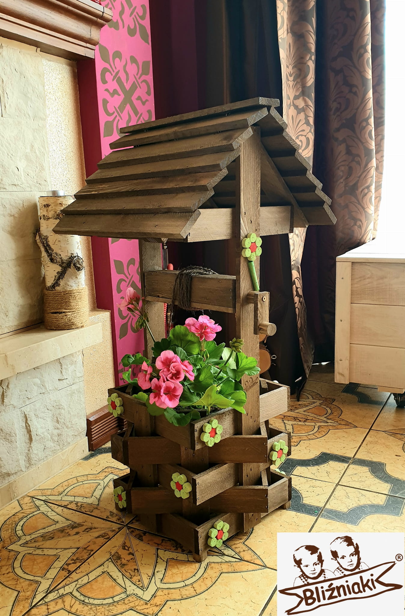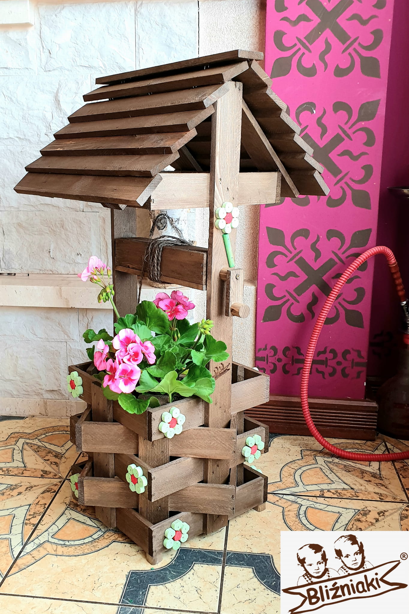 - Studnia została wzbogacona o drewnianą donicę, w której można dodatkowo storzyć miniogródek