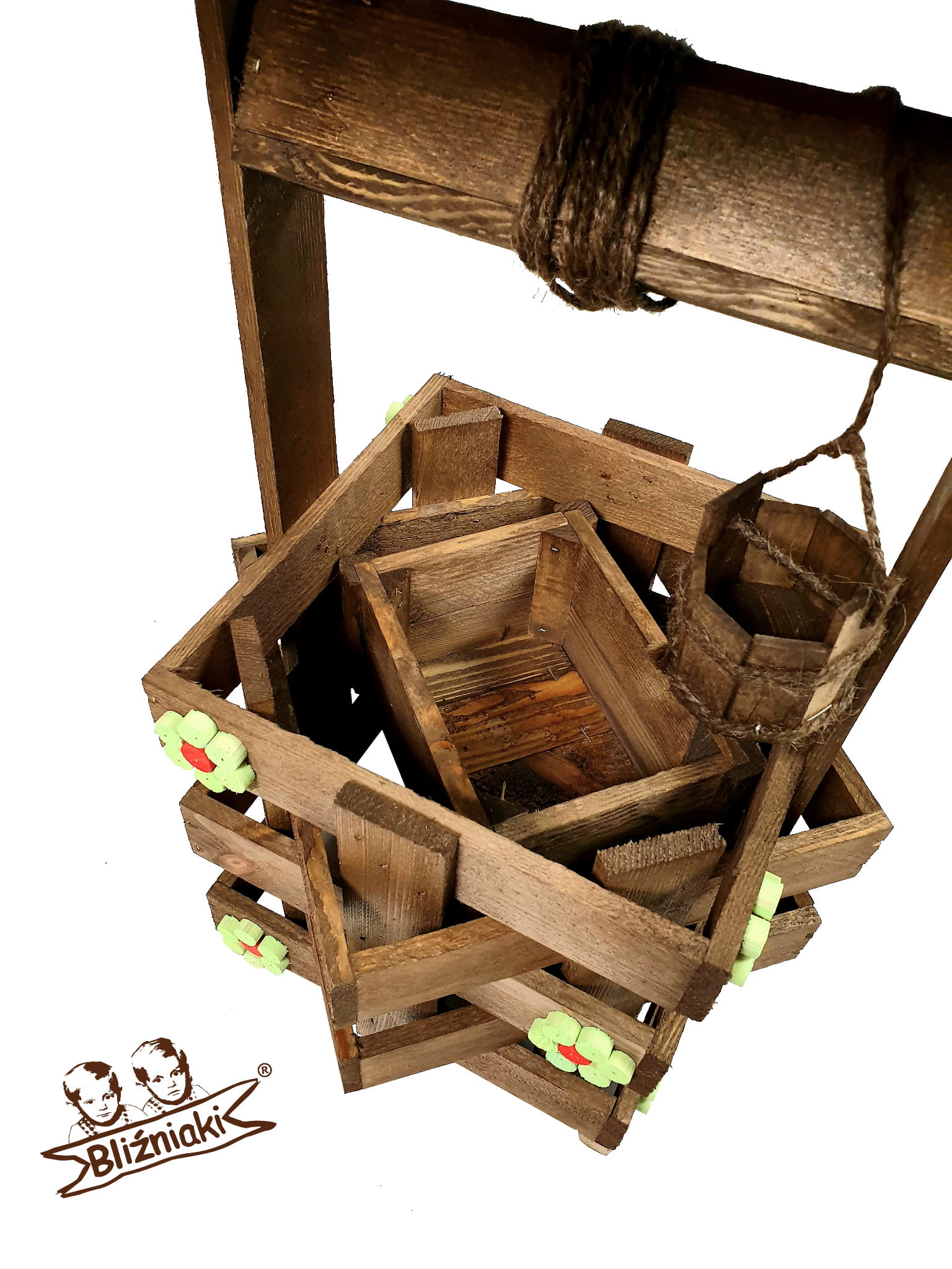 - W zestawie znajduje się dodatkowo ozdobne wiaderko z kołowrotkiem