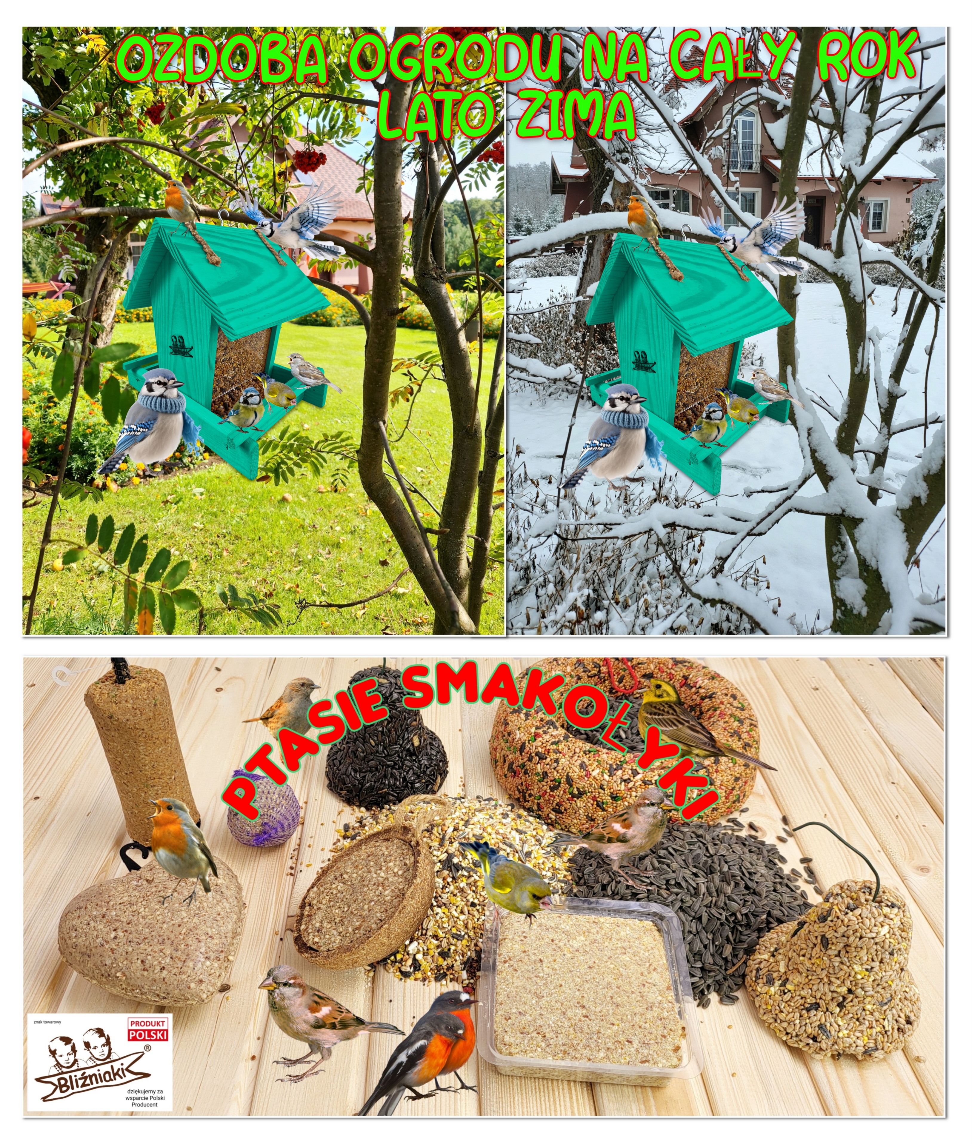 Wraz ze zbliżającym się okresem jesienno-zimowym nadchodzi trudny czas dla wszystkich gatunków ptaków, które w tym czasie nie migrują. Główny ich problem wiąże się z niedostatkiem pożywienia łatwego do zdobycia. Wszyscy powinniśmy myśleć pro-ekologicznie, dbać o bezpieczeństwo tych małych, ale bardzo pożytecznych zwierząt i zwiększyć ich szanse na przetrwanie śniegu i mrozu. Kupując karmnik z naszej aukcji i umieszczając w nim ptasi pokarm masz pewność, że przyczynisz się do utrzymania życia w Twojej okolicy.